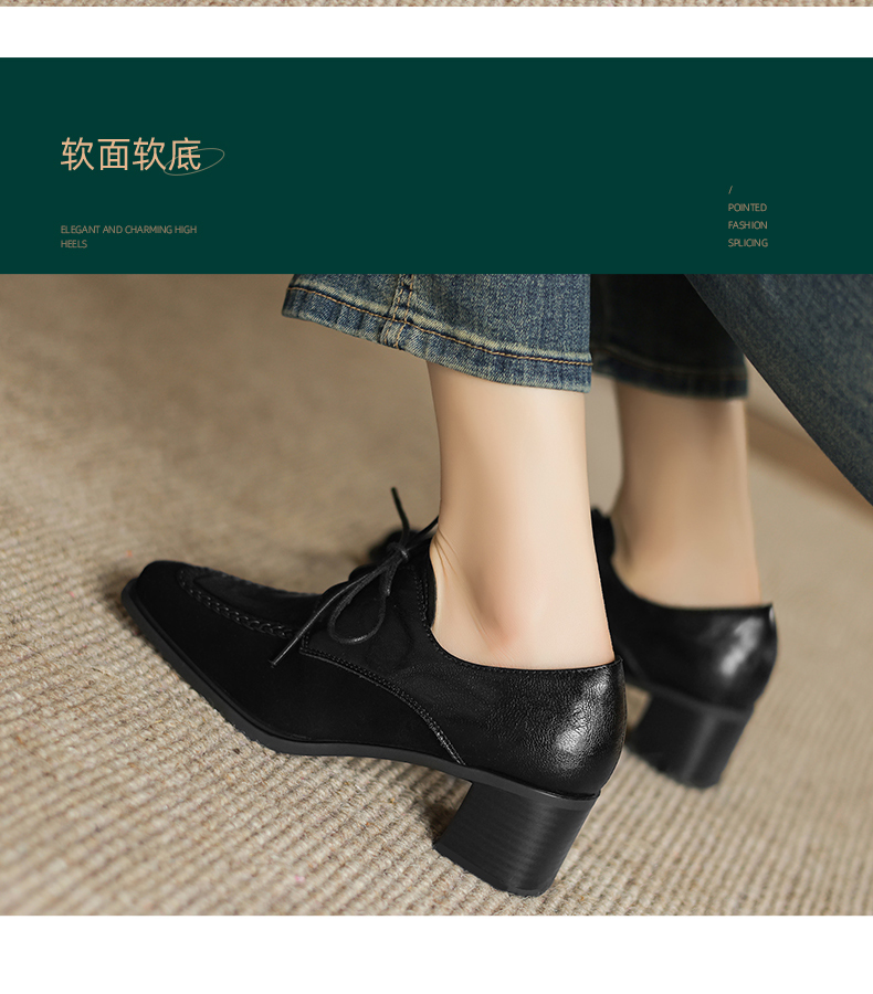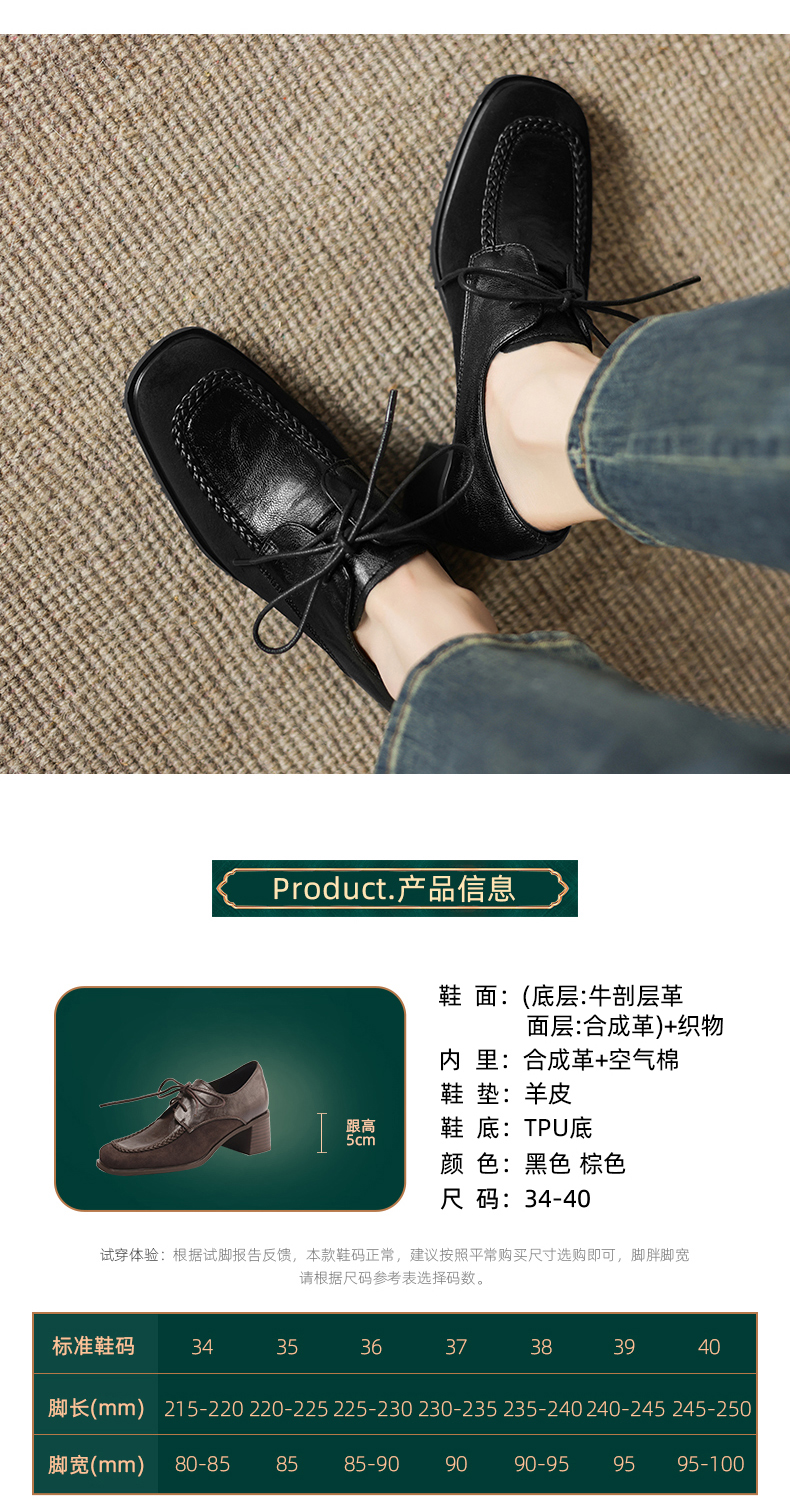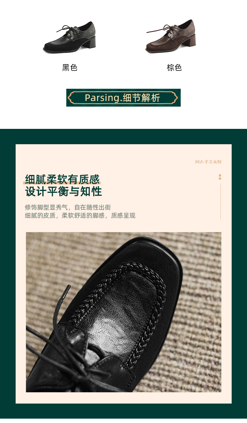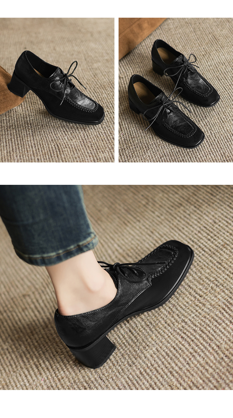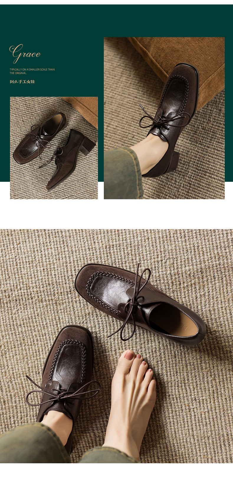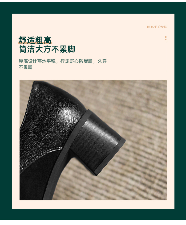 阿么手工女鞋复古风高跟小皮鞋软底2025新款秋季方头深口单鞋5CM