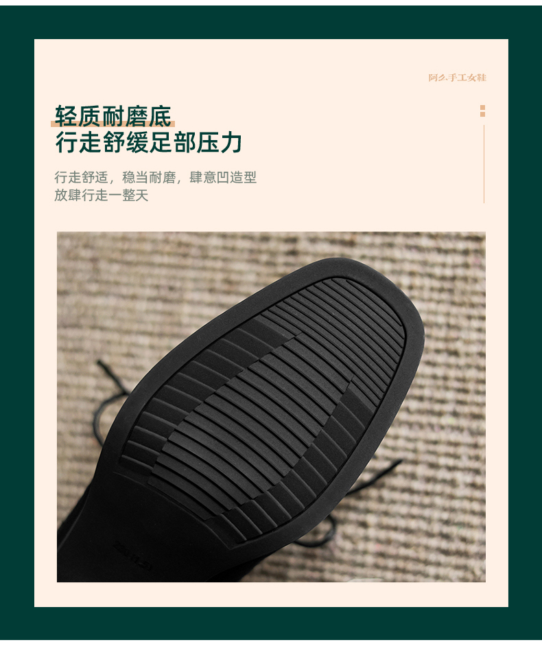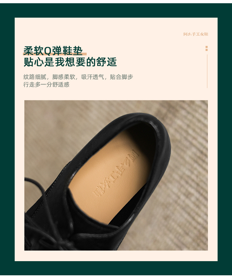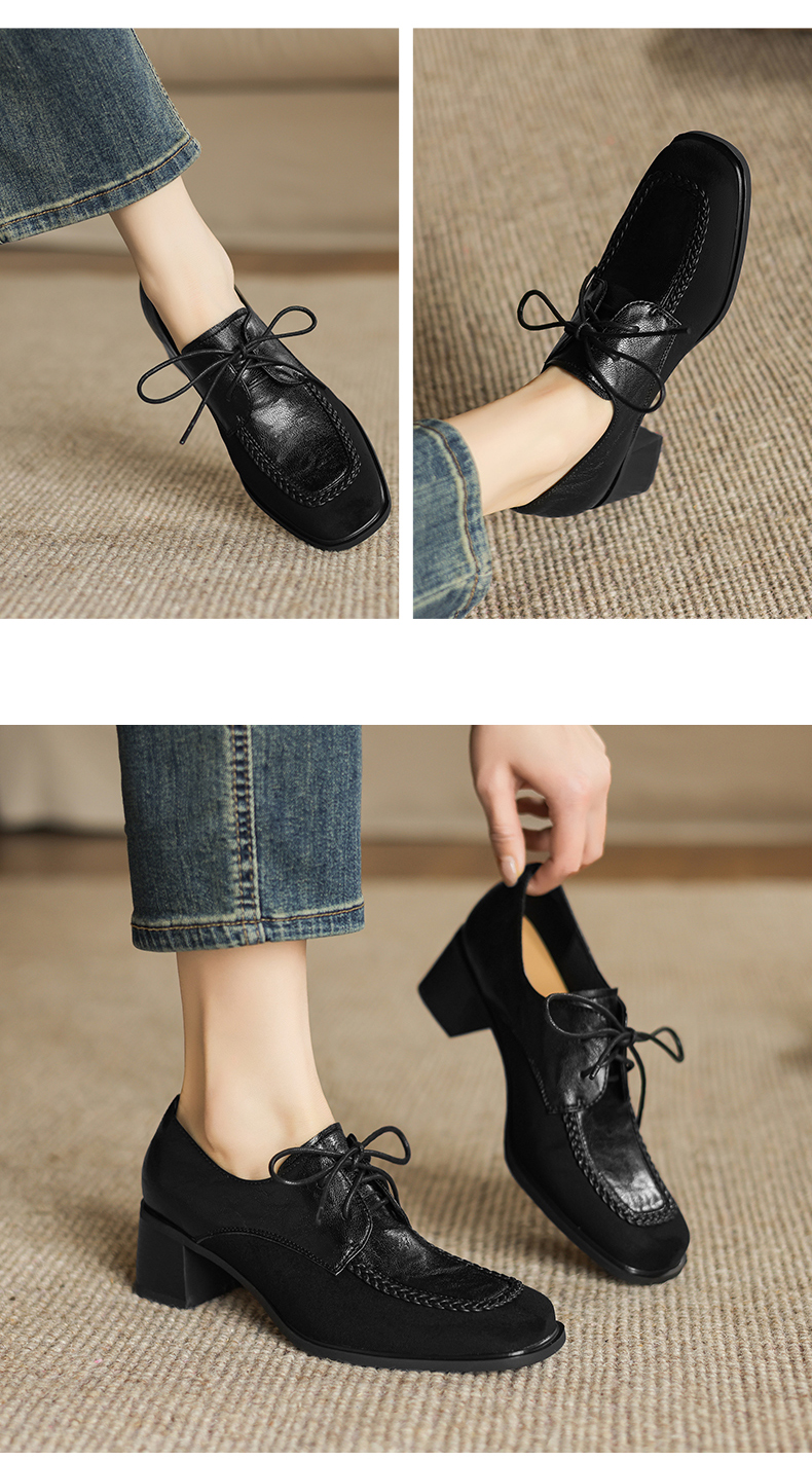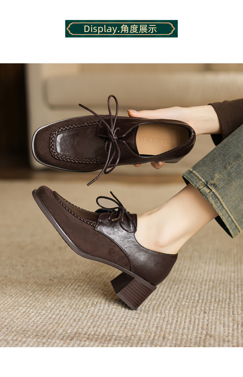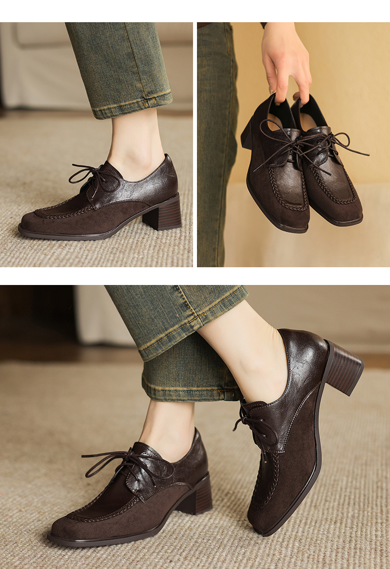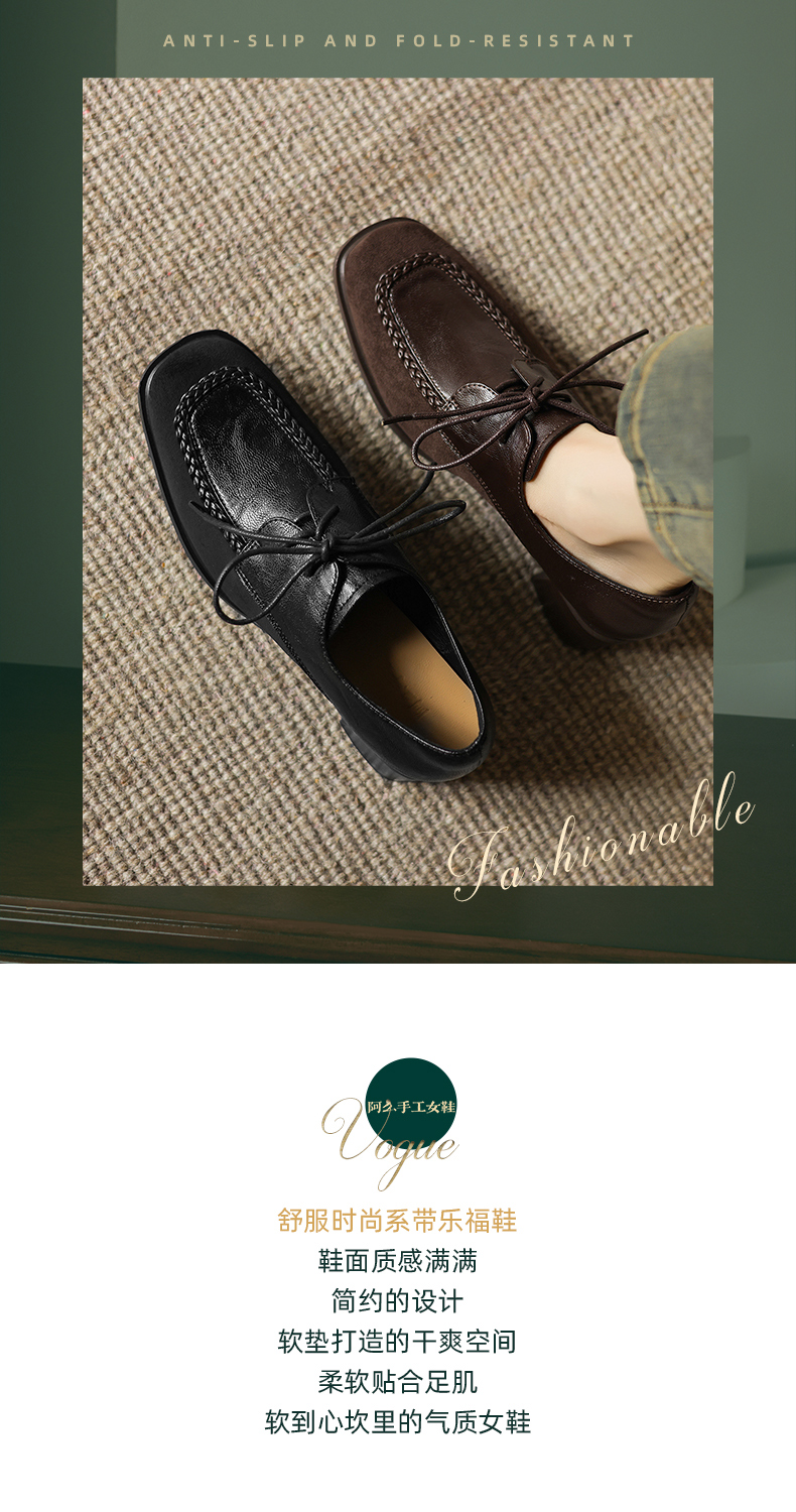 阿么手工女鞋复古风高跟小皮鞋软底2025新款秋季方头深口单鞋5CM
