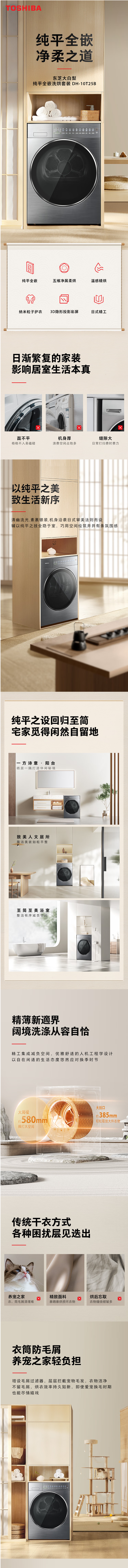 东芝(TOSHIBA)(252114)大白梨烘干机 热泵式干衣机家用 10KG大容量 纯平全嵌 BLDC变频电机 除菌烘 流光银DH-10T25B