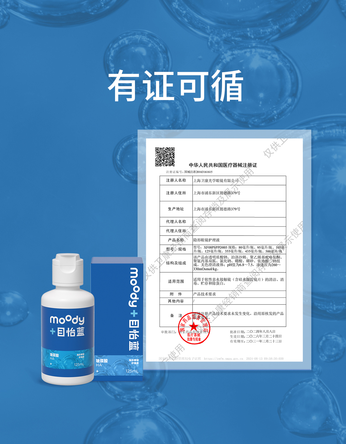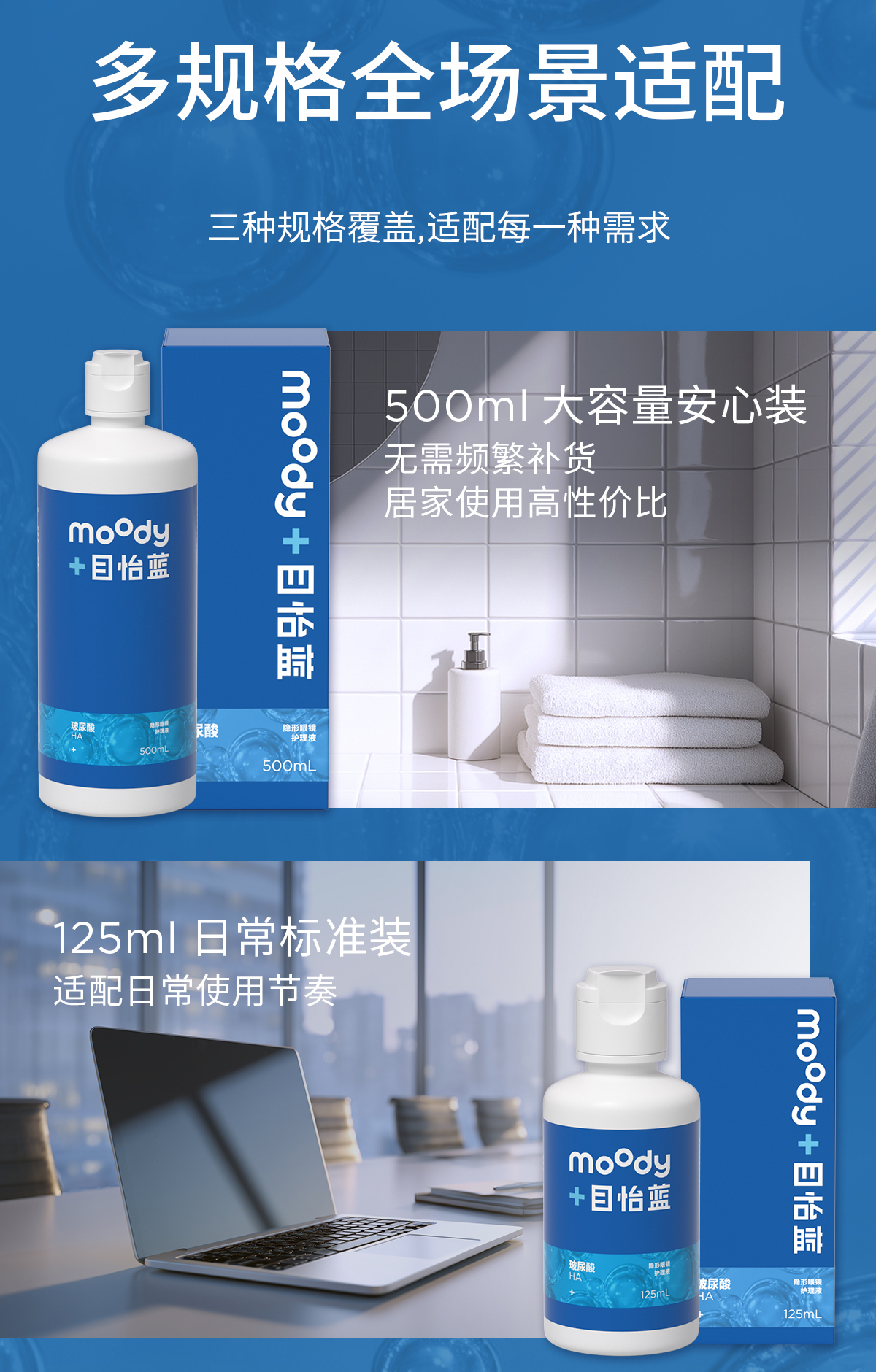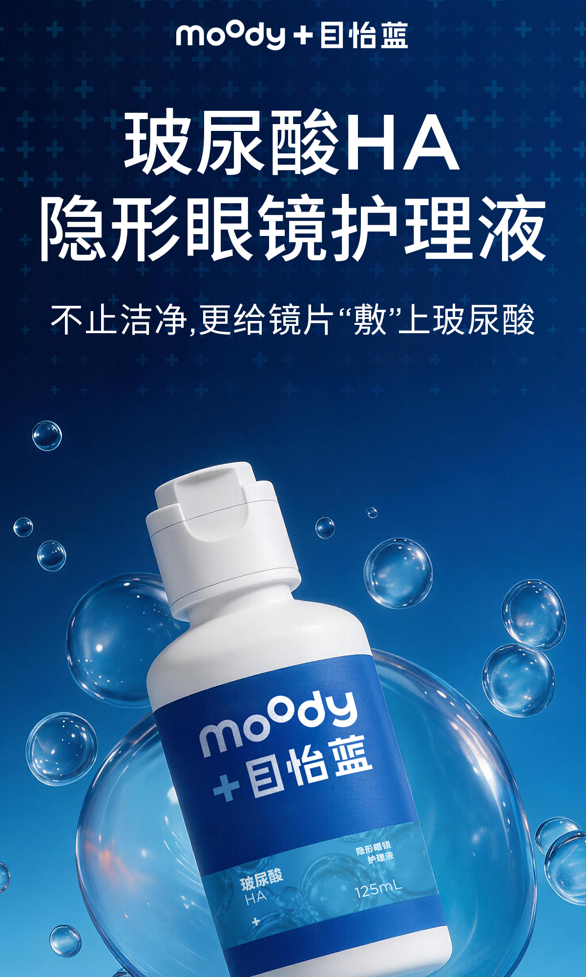 moody隐形眼镜美瞳HA玻尿酸护理液清洁温和水润