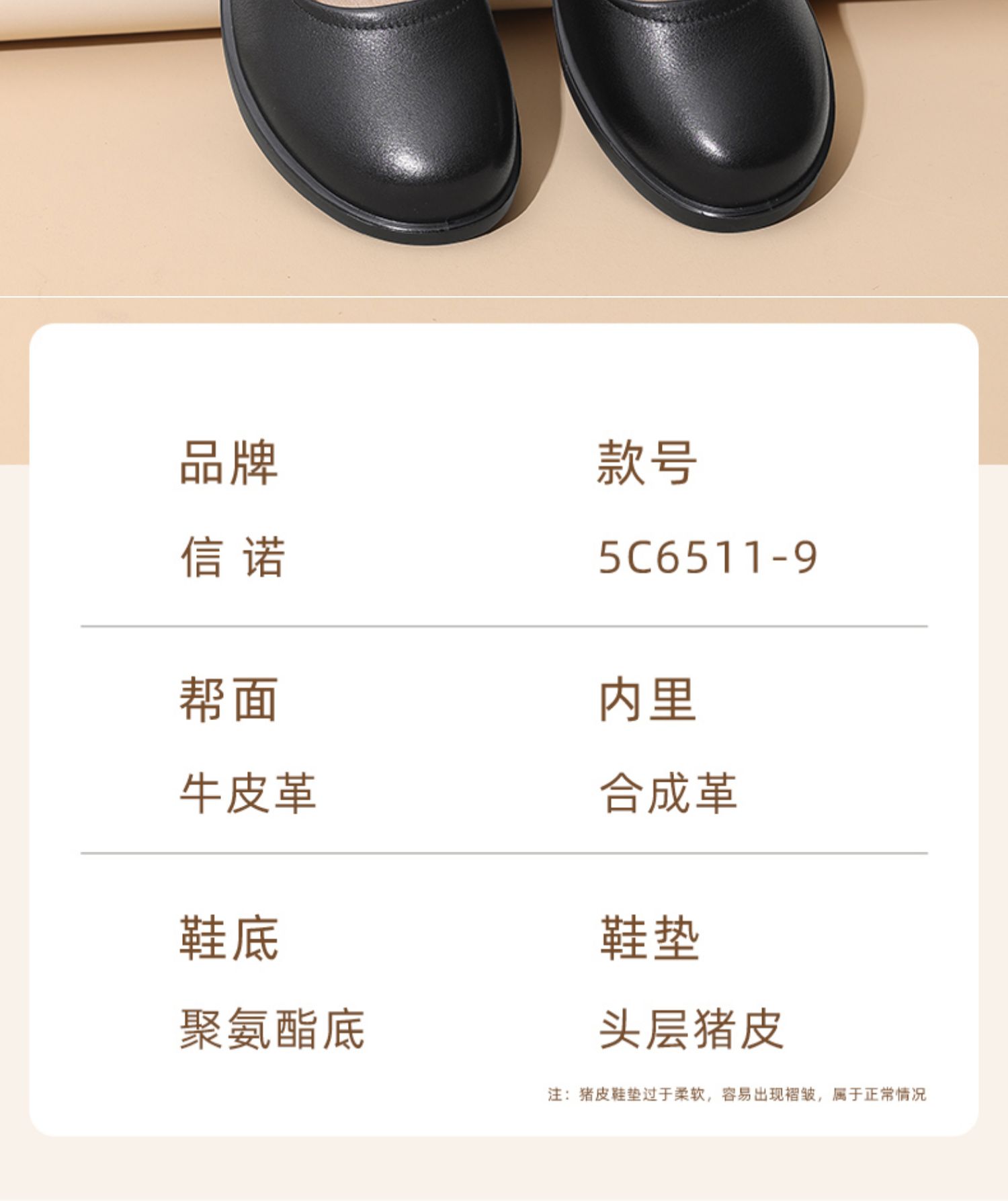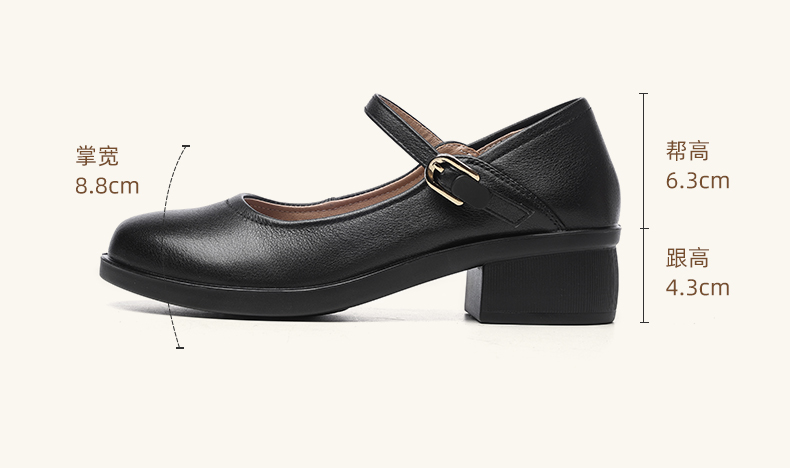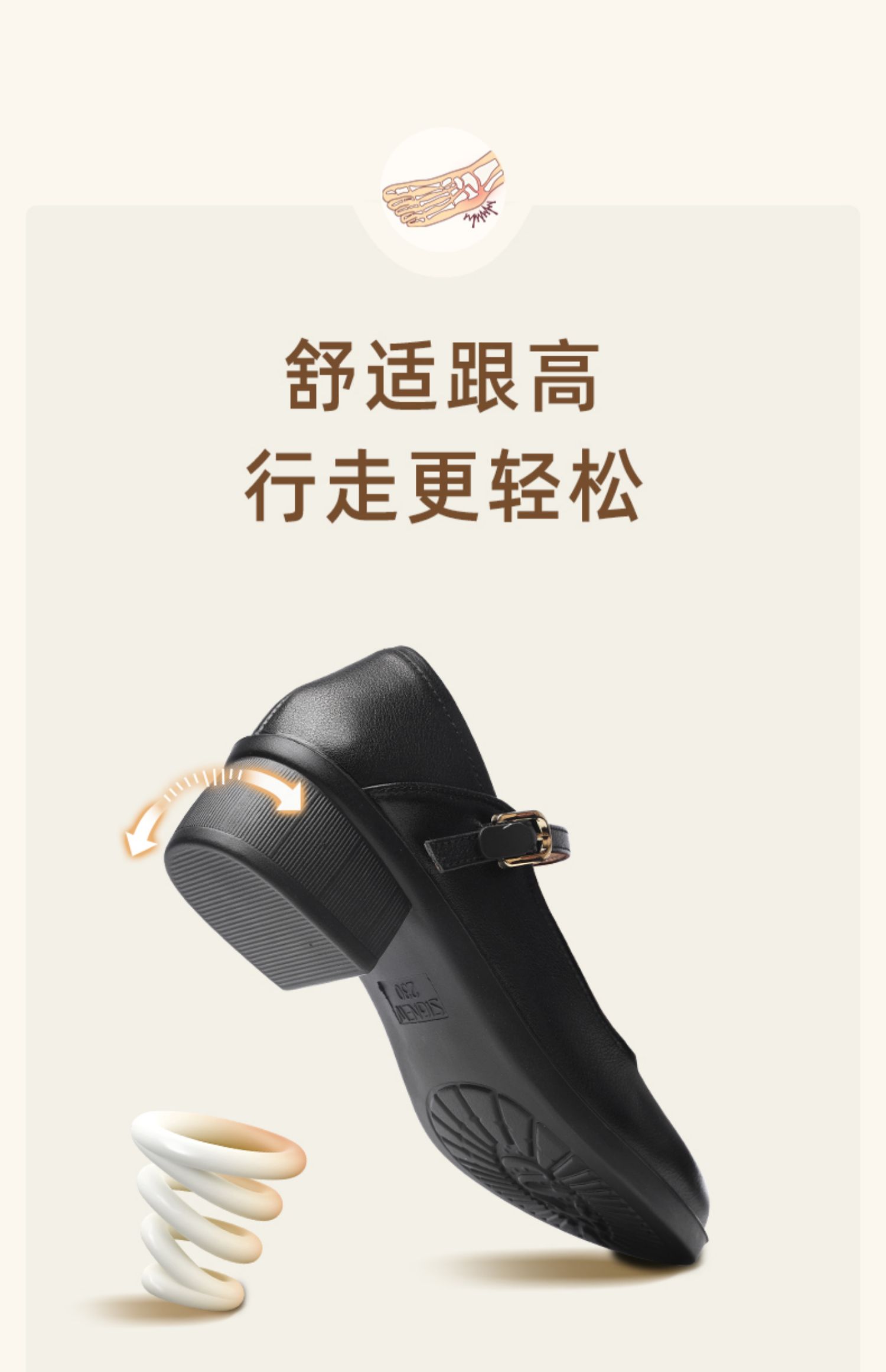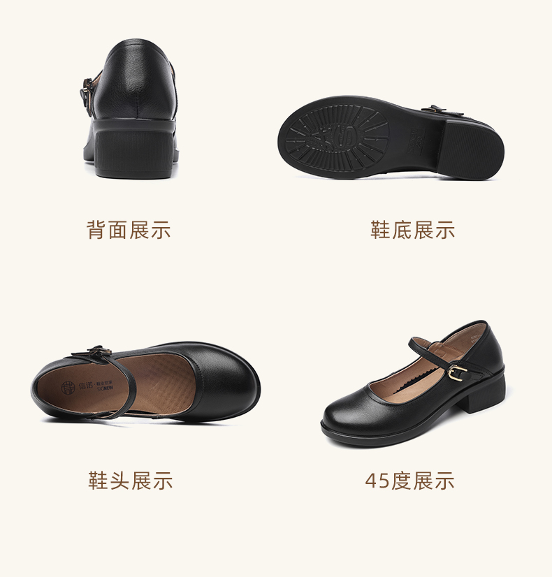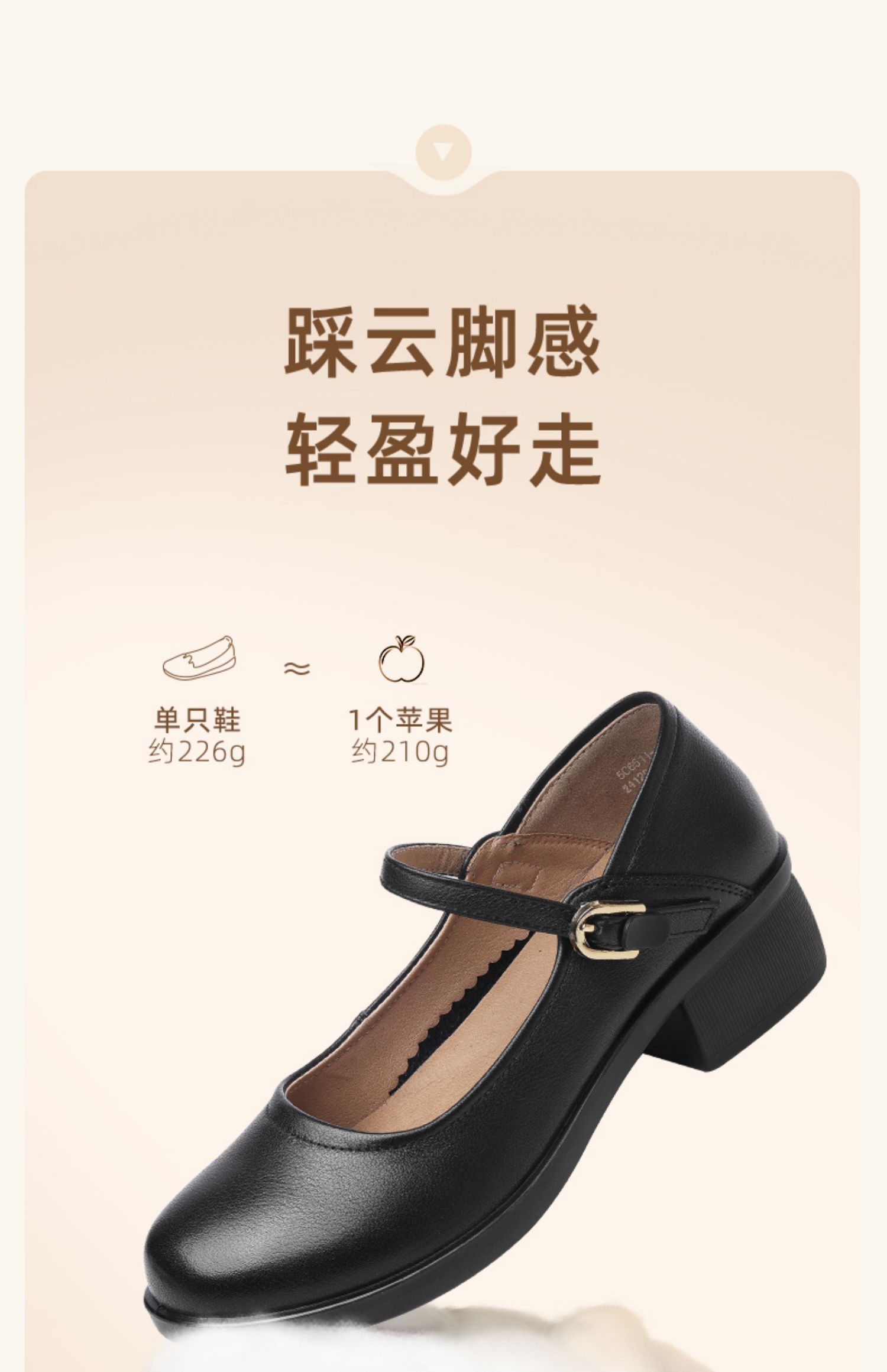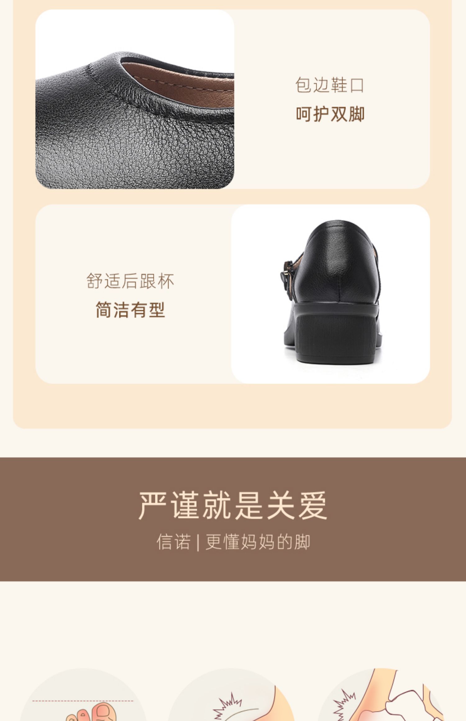 信诺真皮女士玛丽珍鞋一字带单鞋2025春季新款舒适软底粗跟妈妈鞋5C6511-9