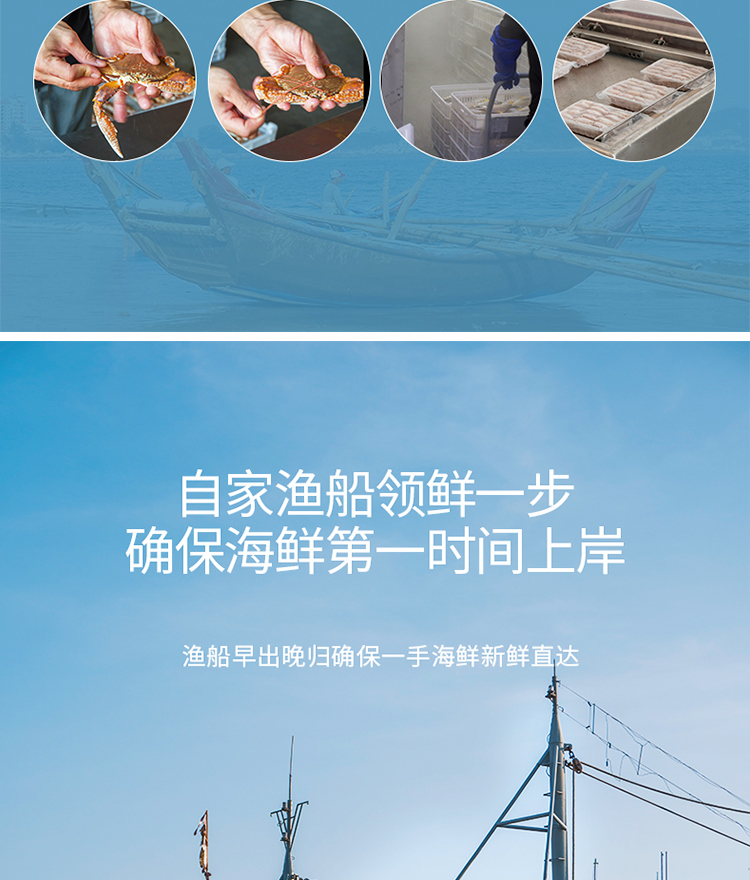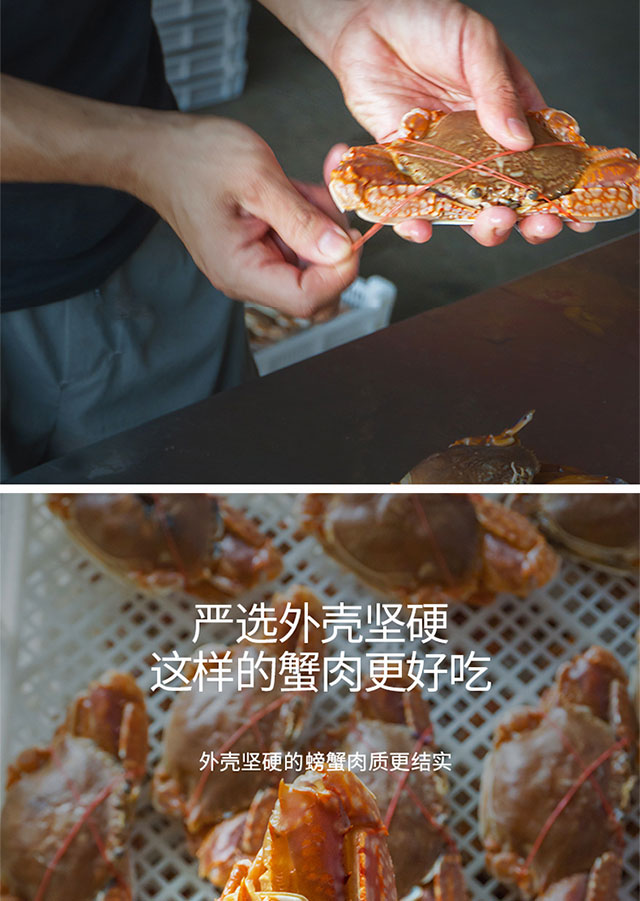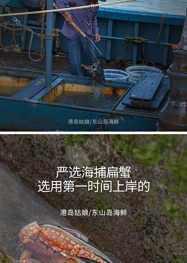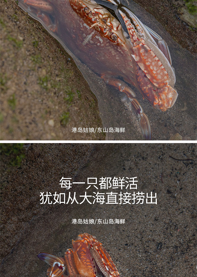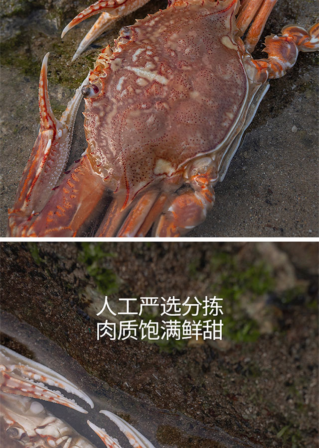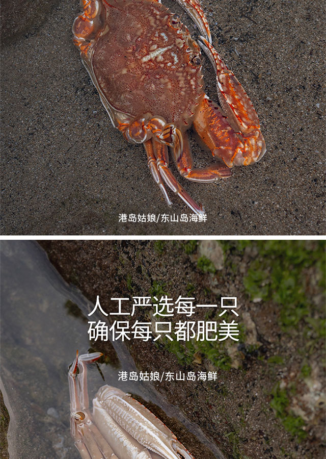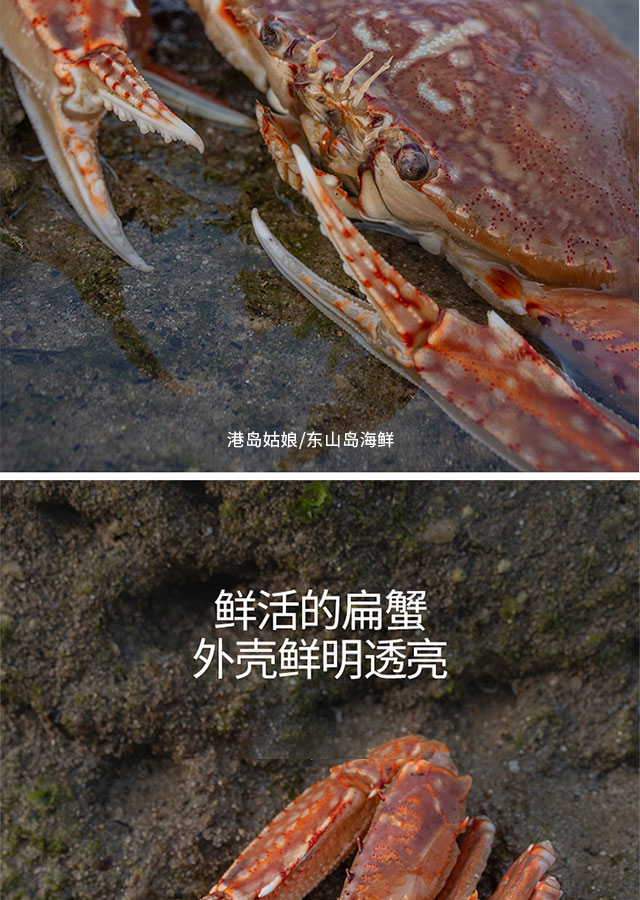港岛姑娘 当天海捕新鲜大扁蟹海蟹肉蟹肉质饱满鲜嫩分量足400克/盒 3只活冻