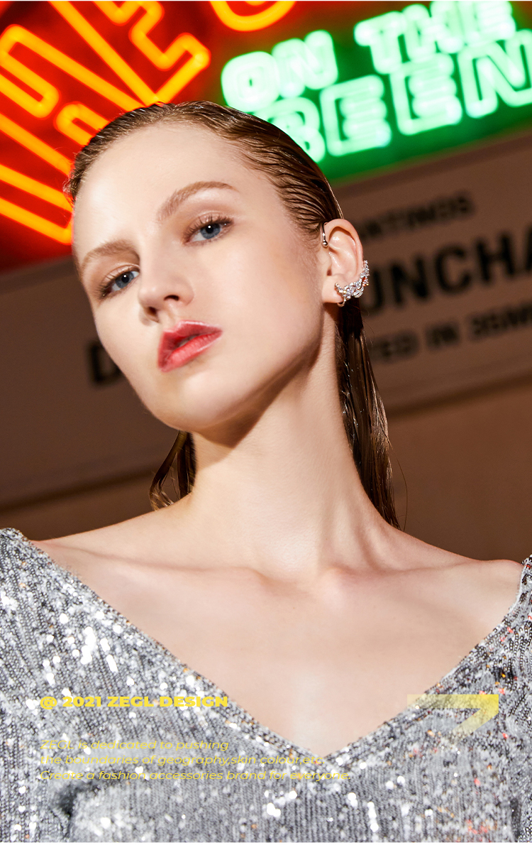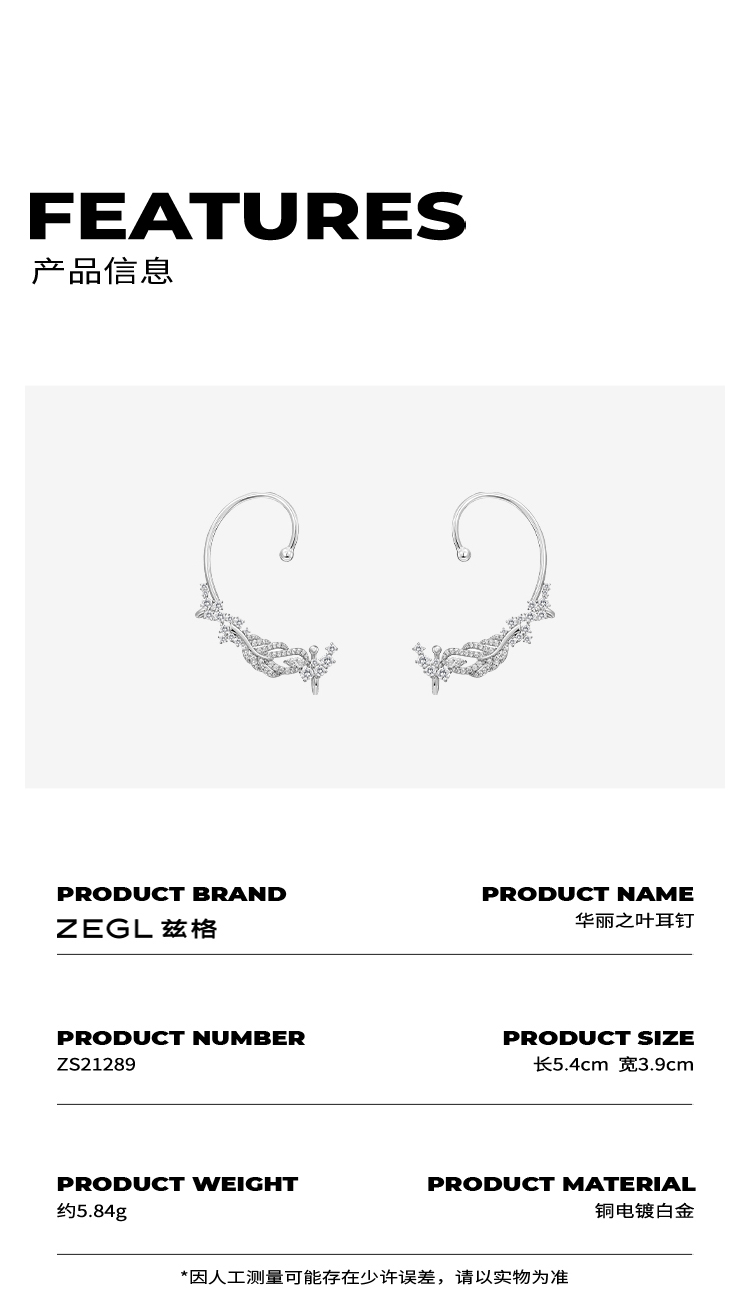 ZEGL设计师夜宴派对系列叶子耳挂耳钉女夏高级感耳骨耳环一体耳饰