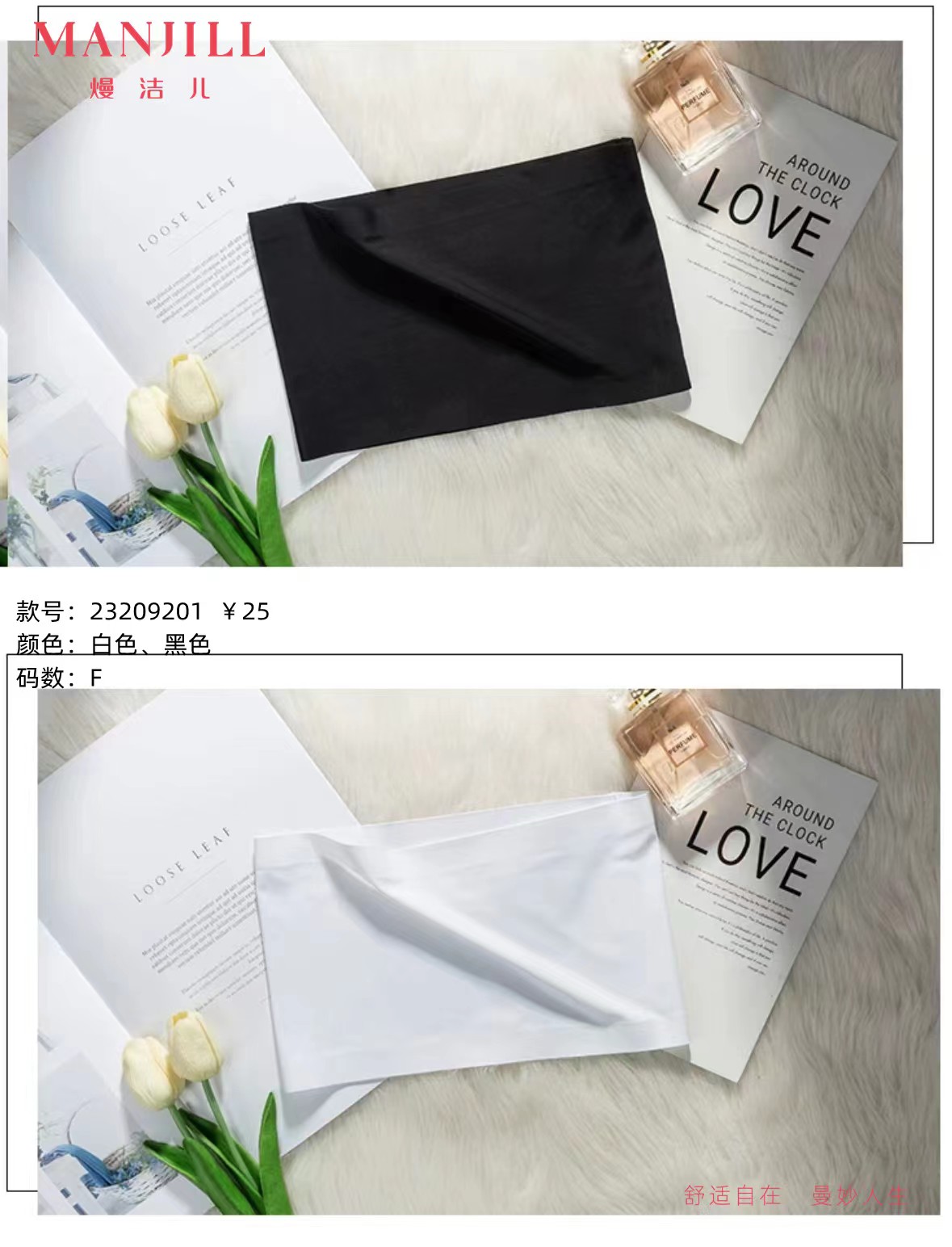 【商场同款】熳洁儿 夏季打底冰丝无痕抹胸防走光经典黑白色23209201