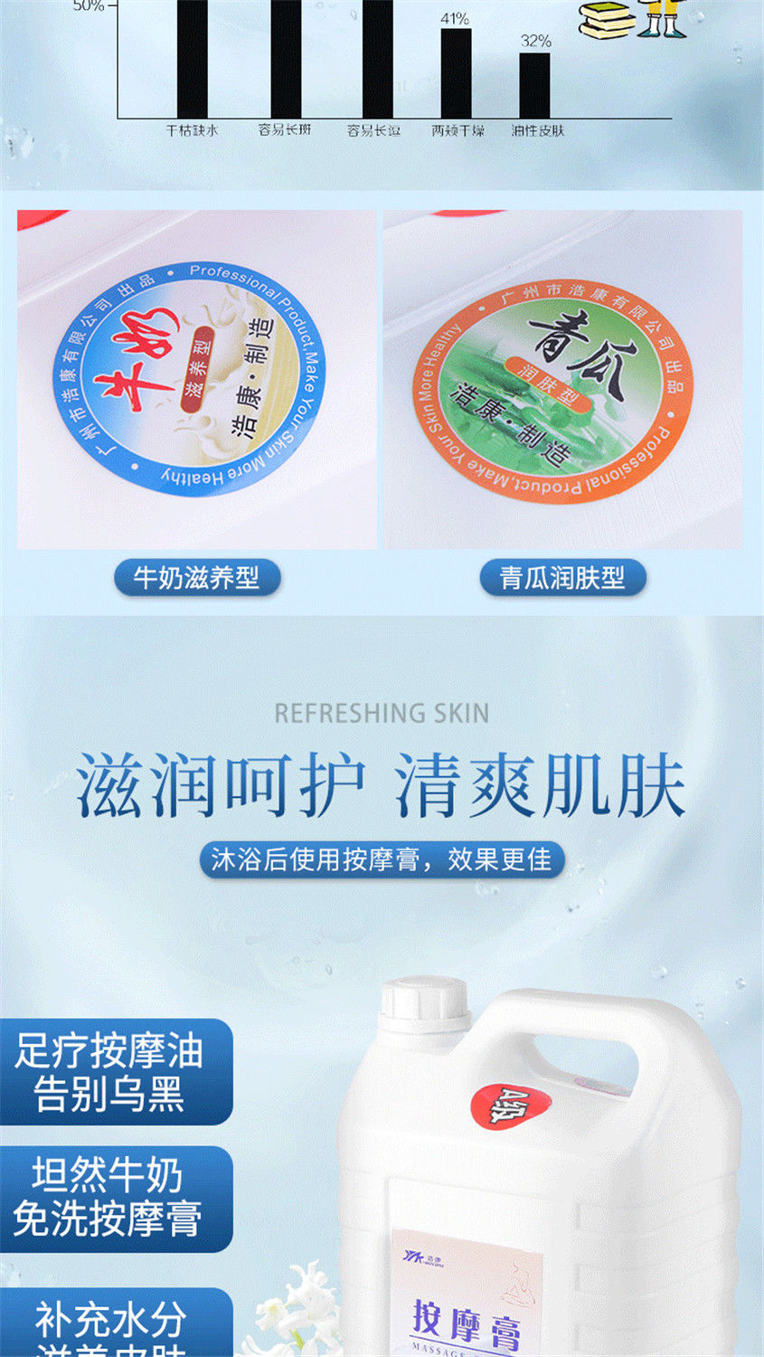 5000ml大桶牛奶按摩膏 青瓜足疗膏 免洗 美容院足浴按摩乳散装 足部免洗足疗用品