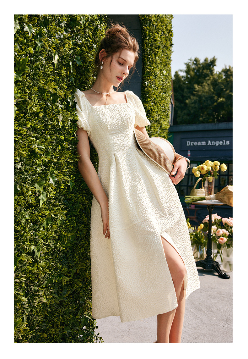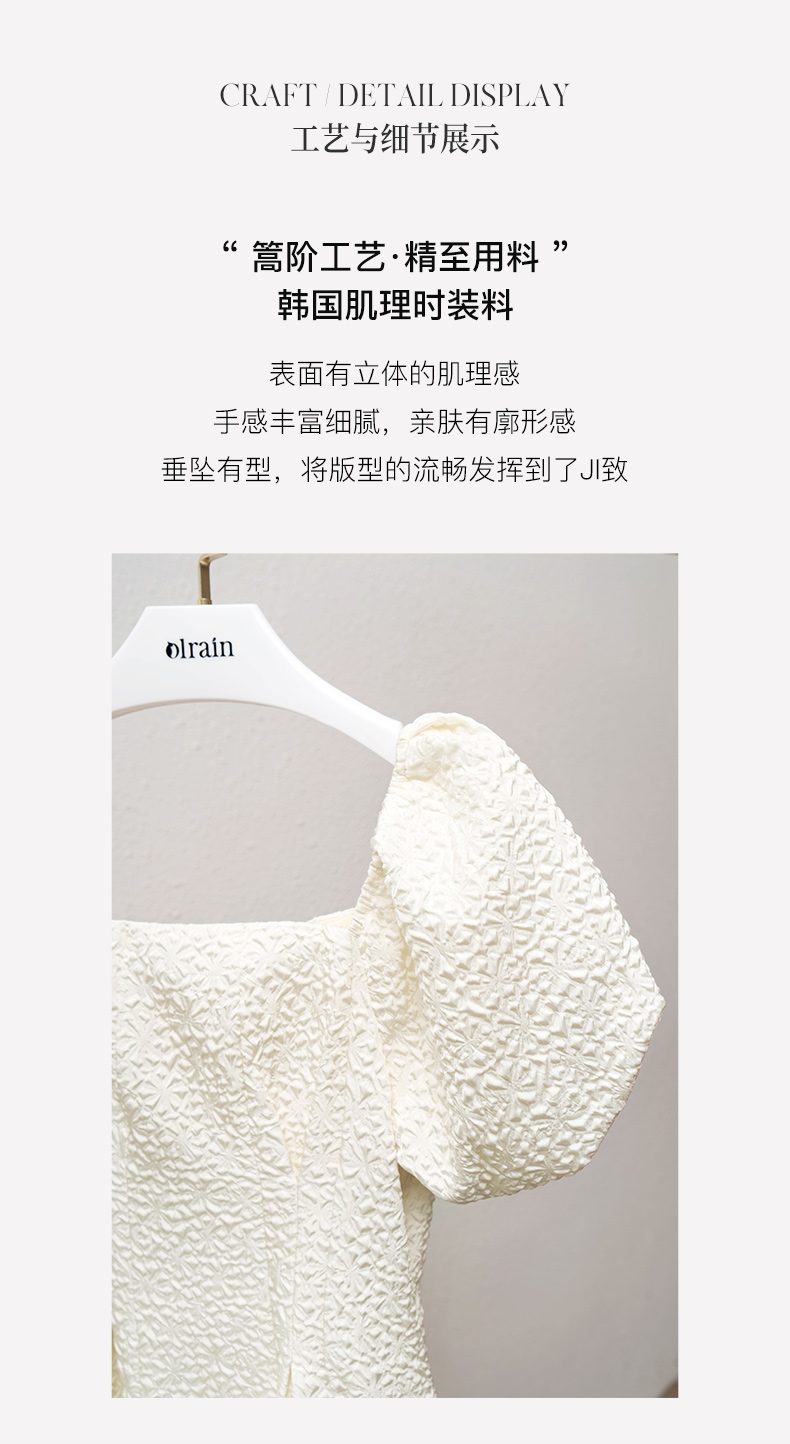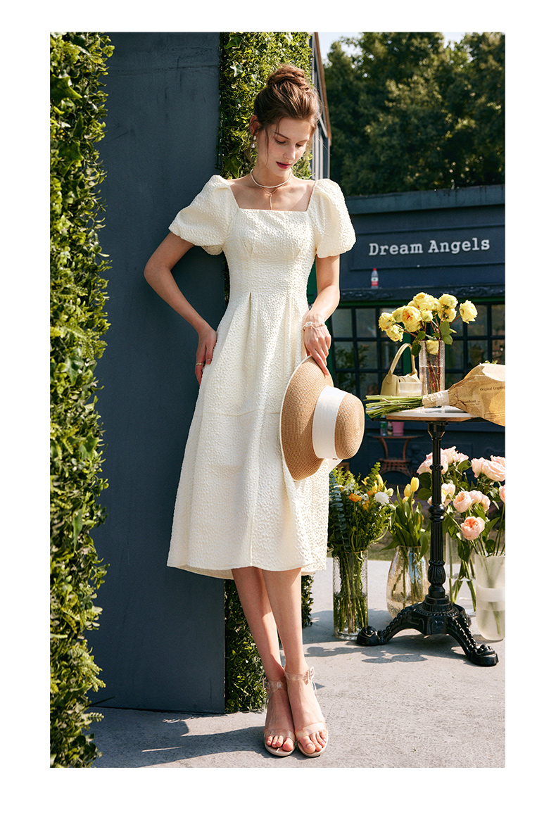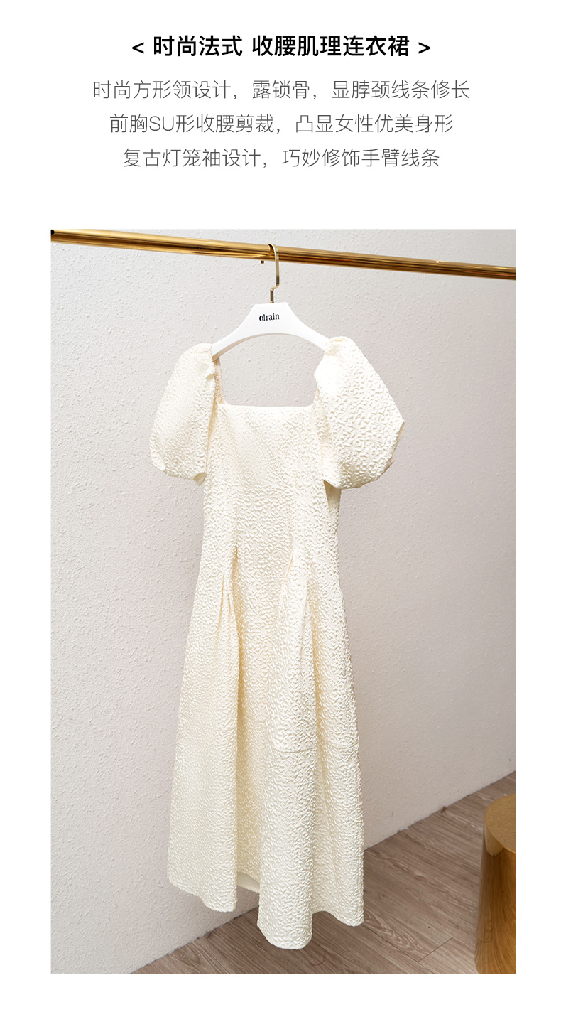 OLrain法式高级穿搭方领连衣裙女夏季2022年新款收腰灯笼袖裙子undefined