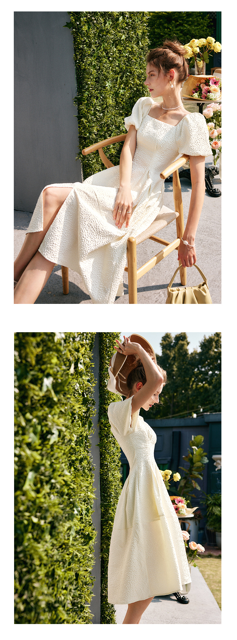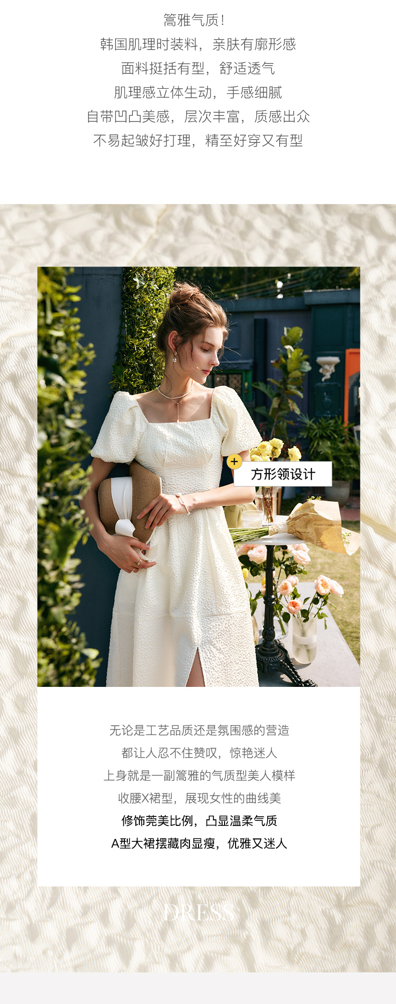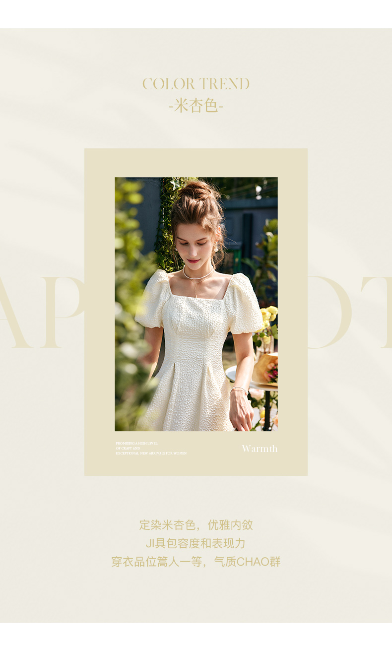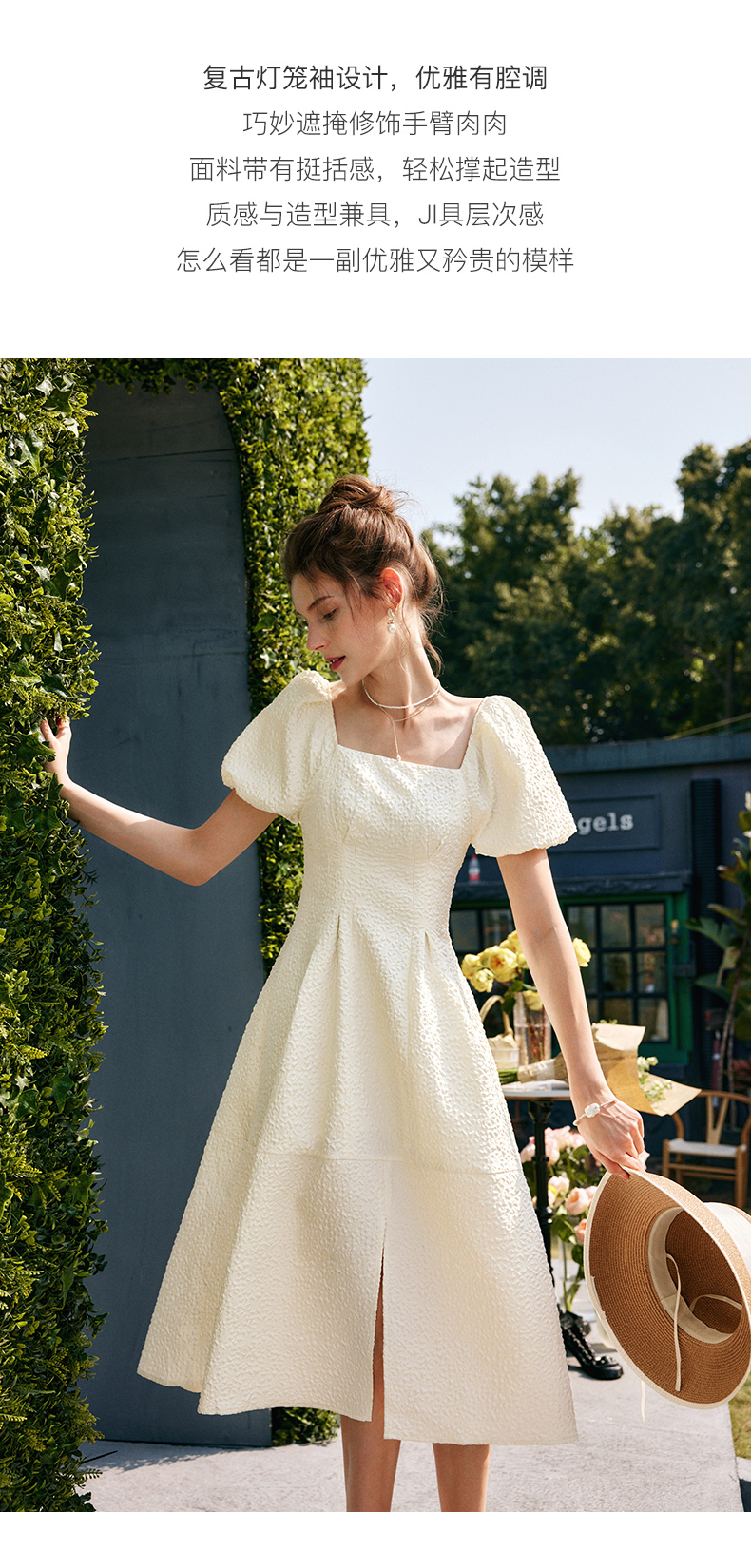 OLrain法式高级穿搭方领连衣裙女夏季2022年新款收腰灯笼袖裙子undefined