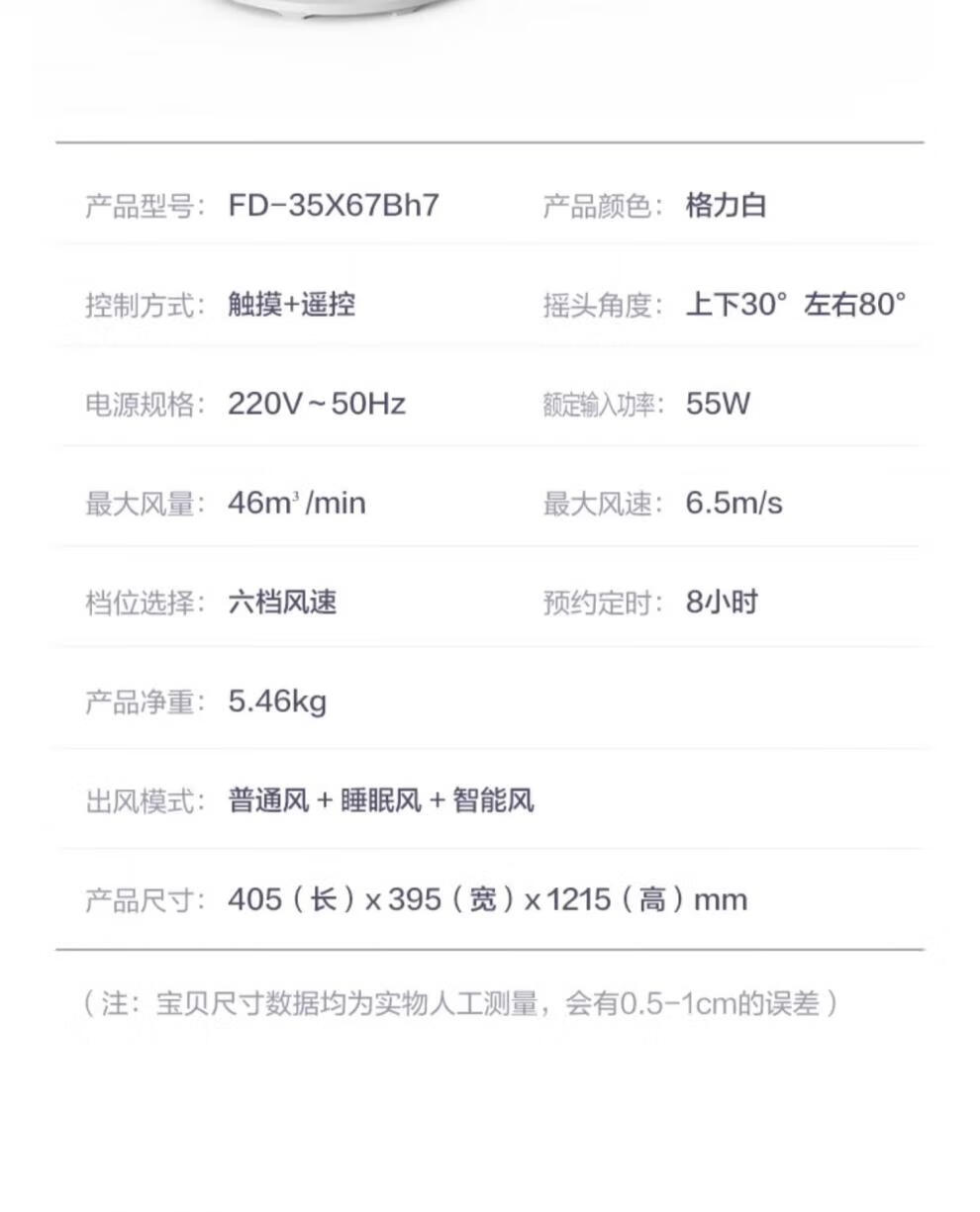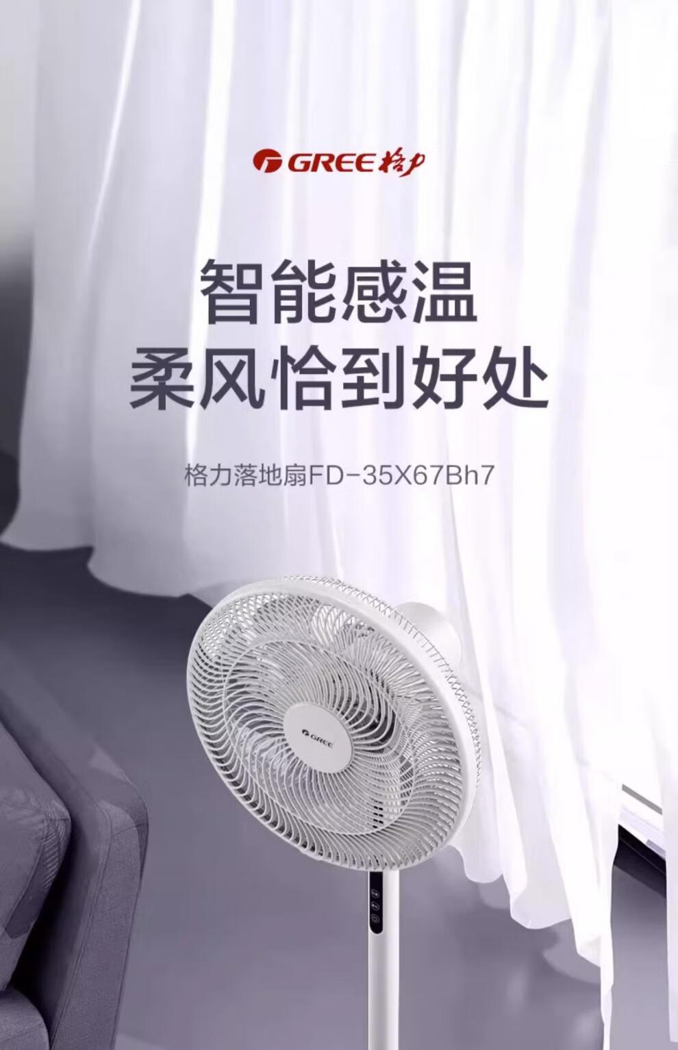 格力落地扇 6档风速 台地两用 智能感温 FD-35X67Bh7 (白)