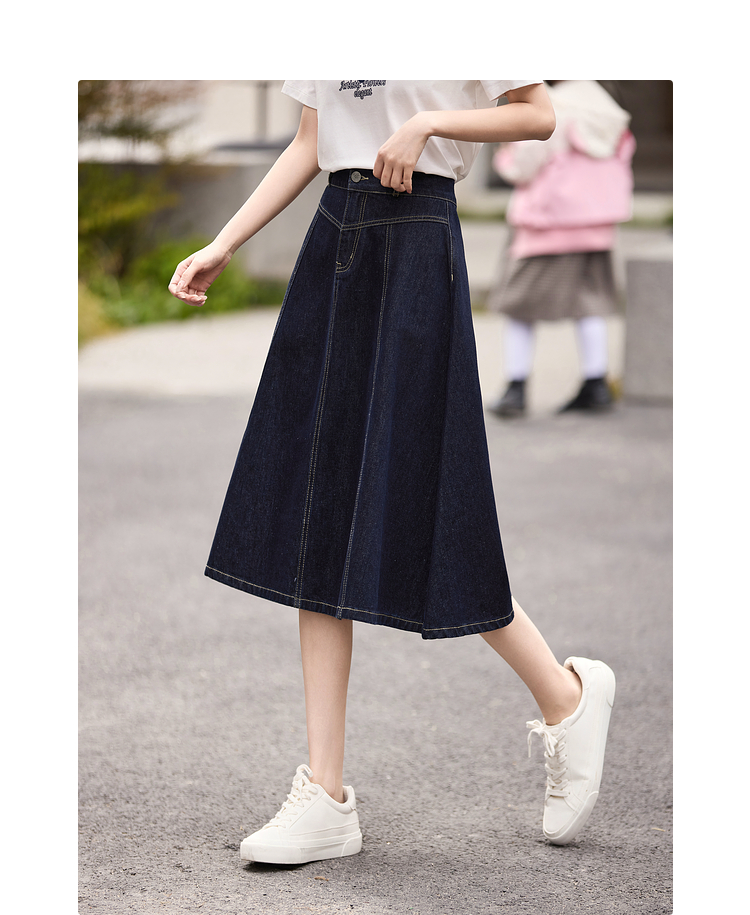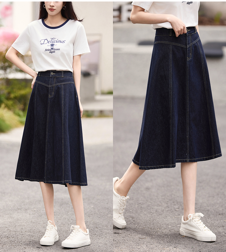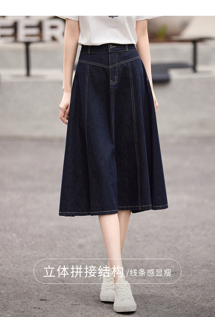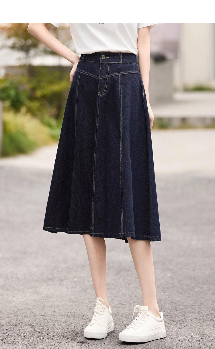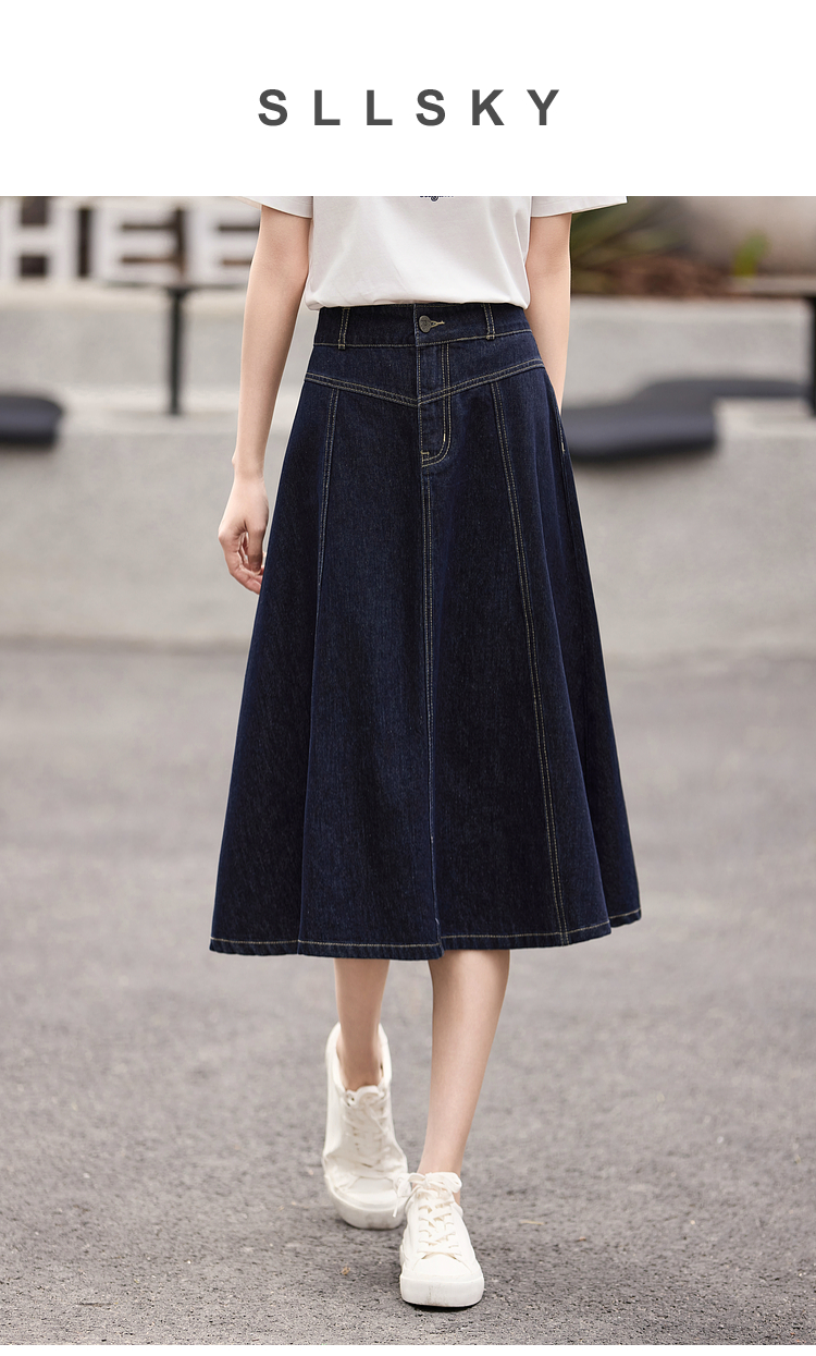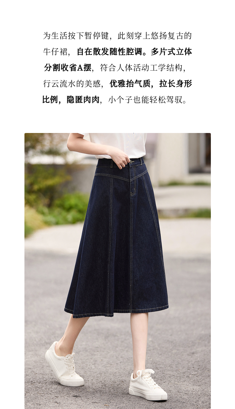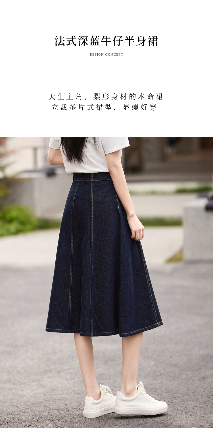 熙世界法式深蓝色半身裙女春夏新款复古梨形身材显瘦中长款A字裙