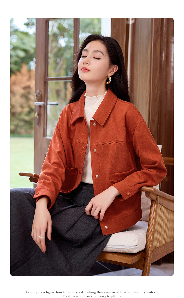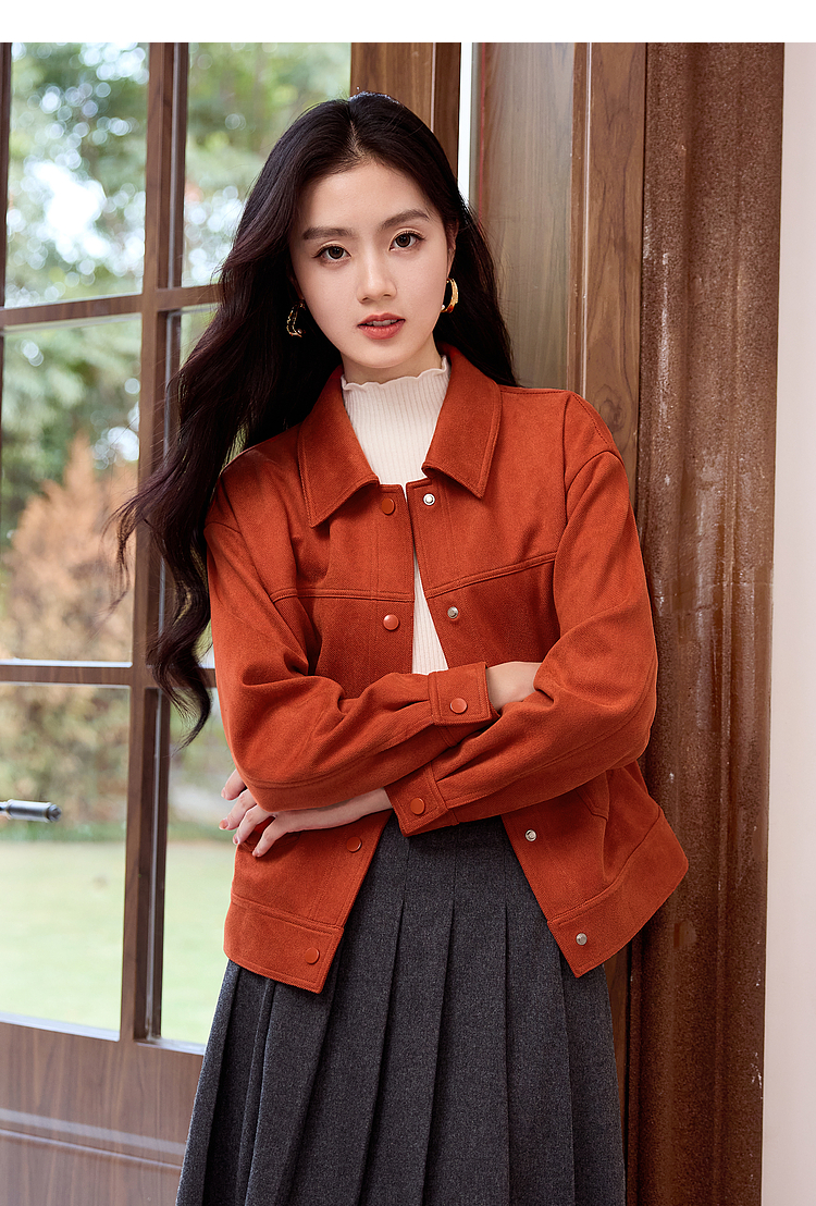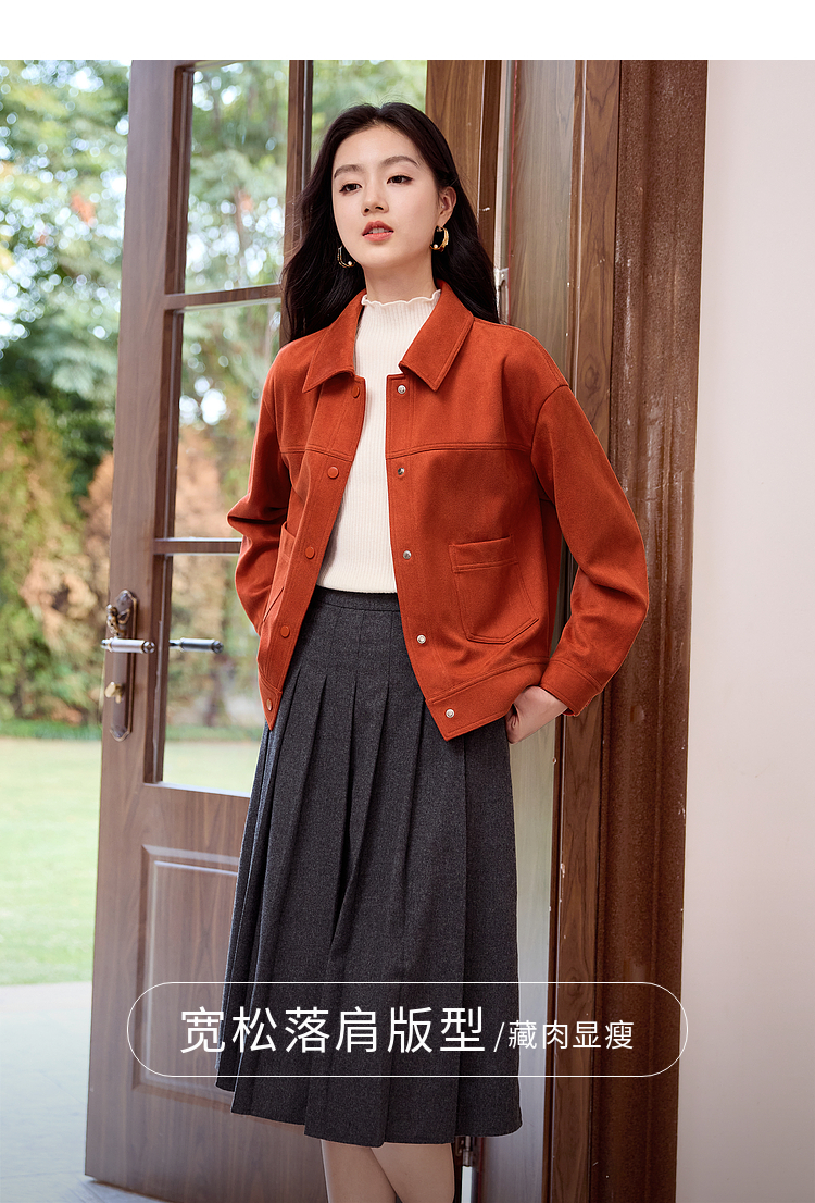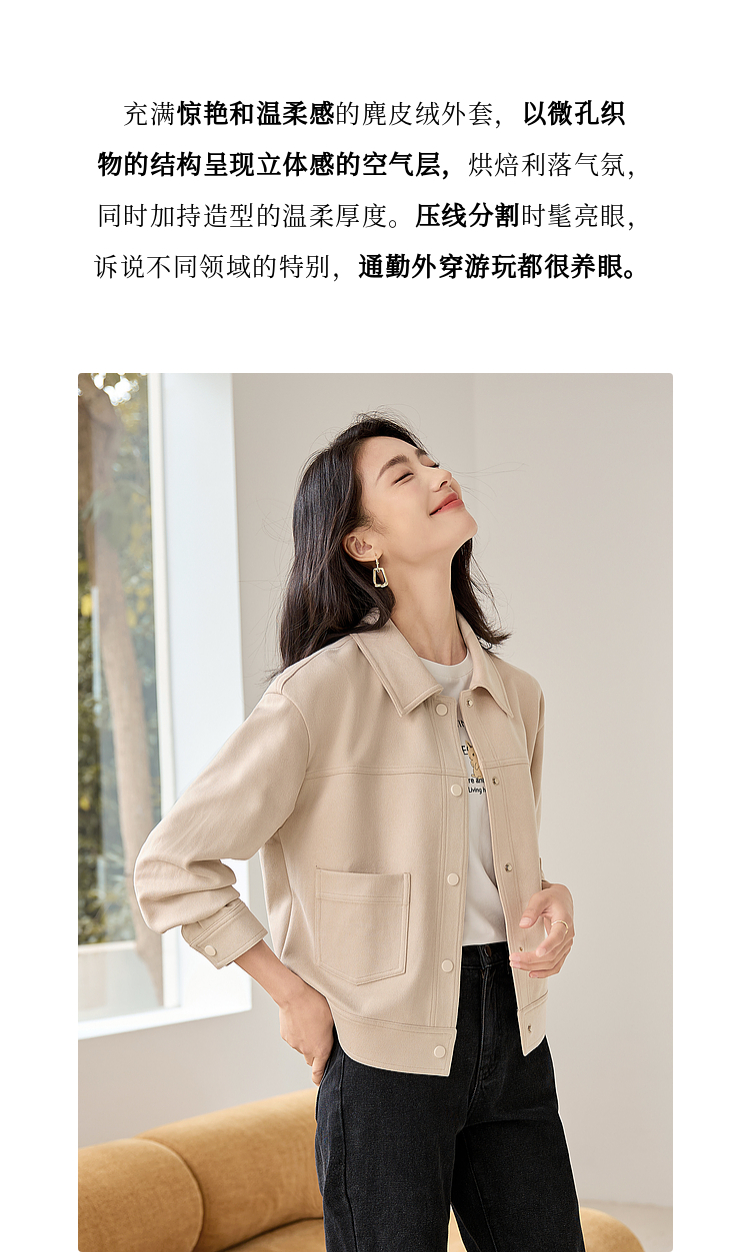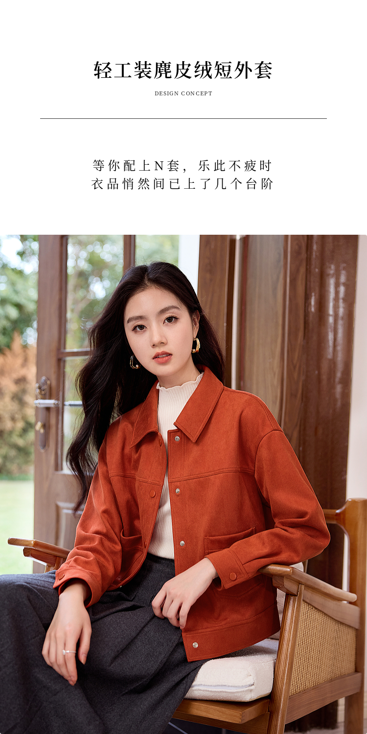 【双𝟭𝟭特卖】熙世界2025秋季新款工装风麂皮绒外套小个子短款夹克上衣潮ins