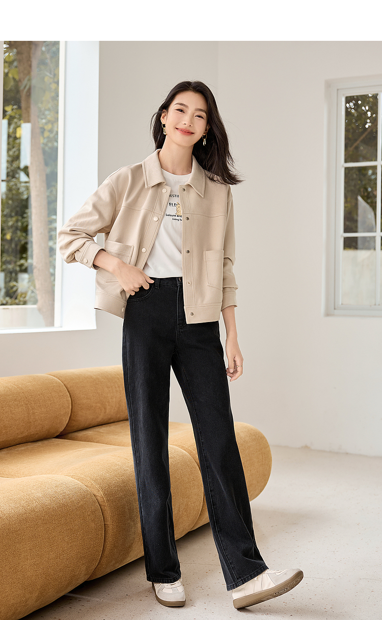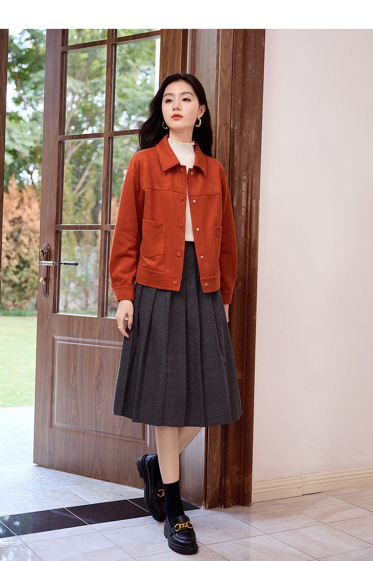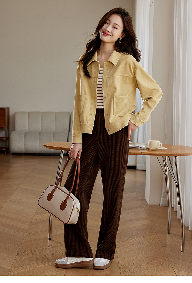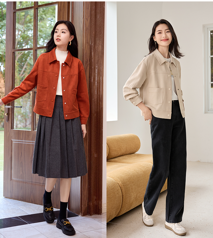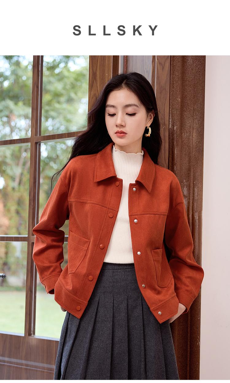 【双𝟭𝟭特卖】熙世界2025秋季新款工装风麂皮绒外套小个子短款夹克上衣潮ins