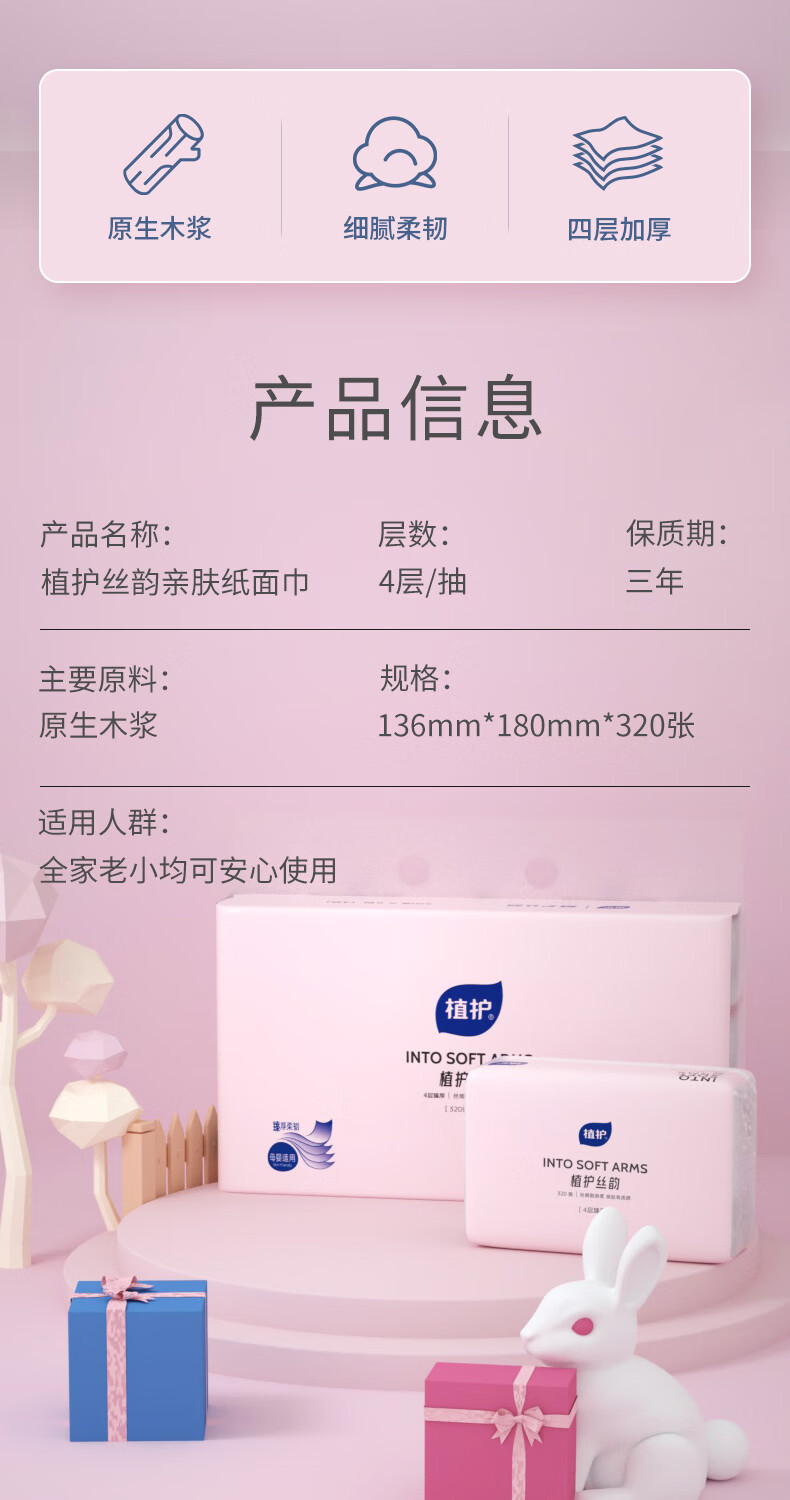 【分仓直发包邮】植护丝韵粉色抽纸80抽*6包/提(136*180mm/4层)