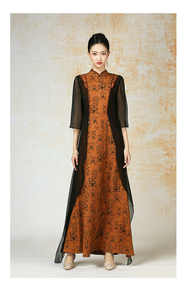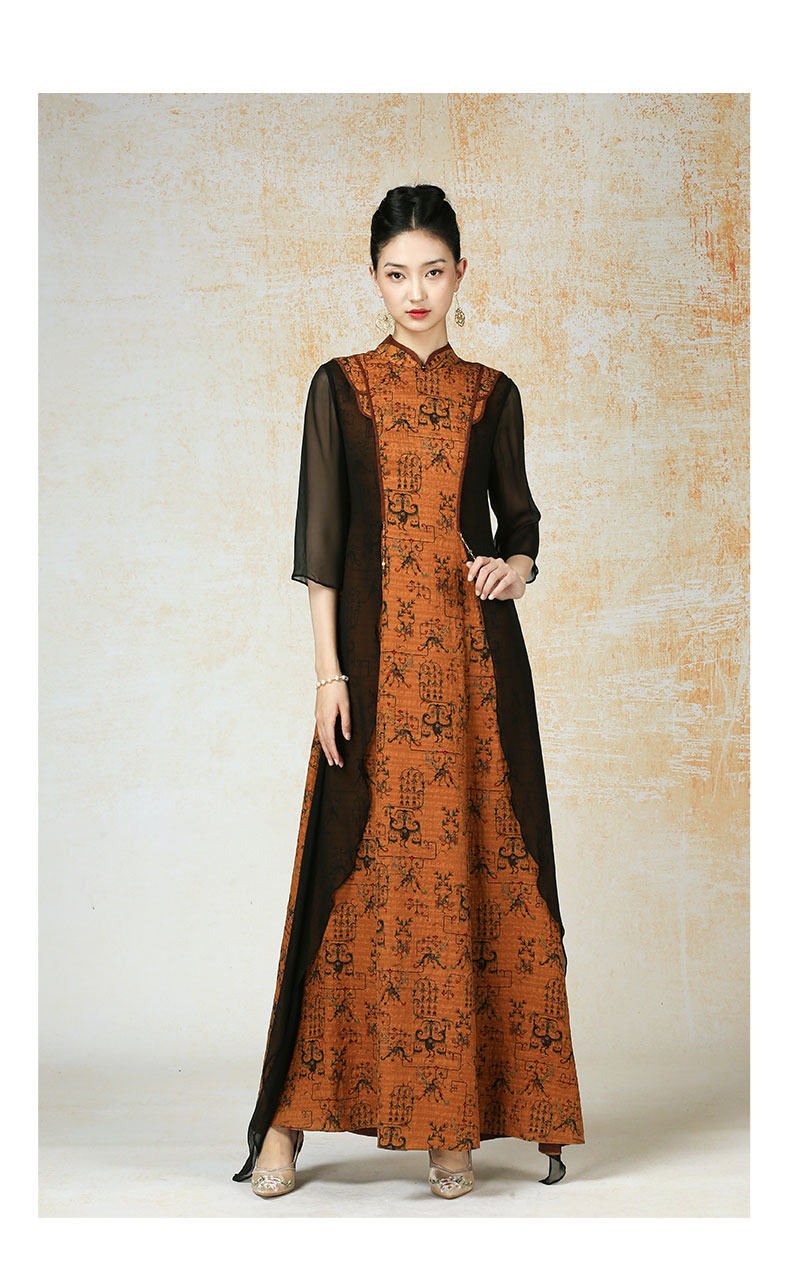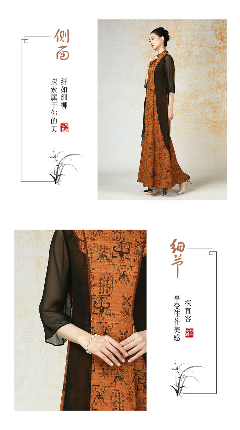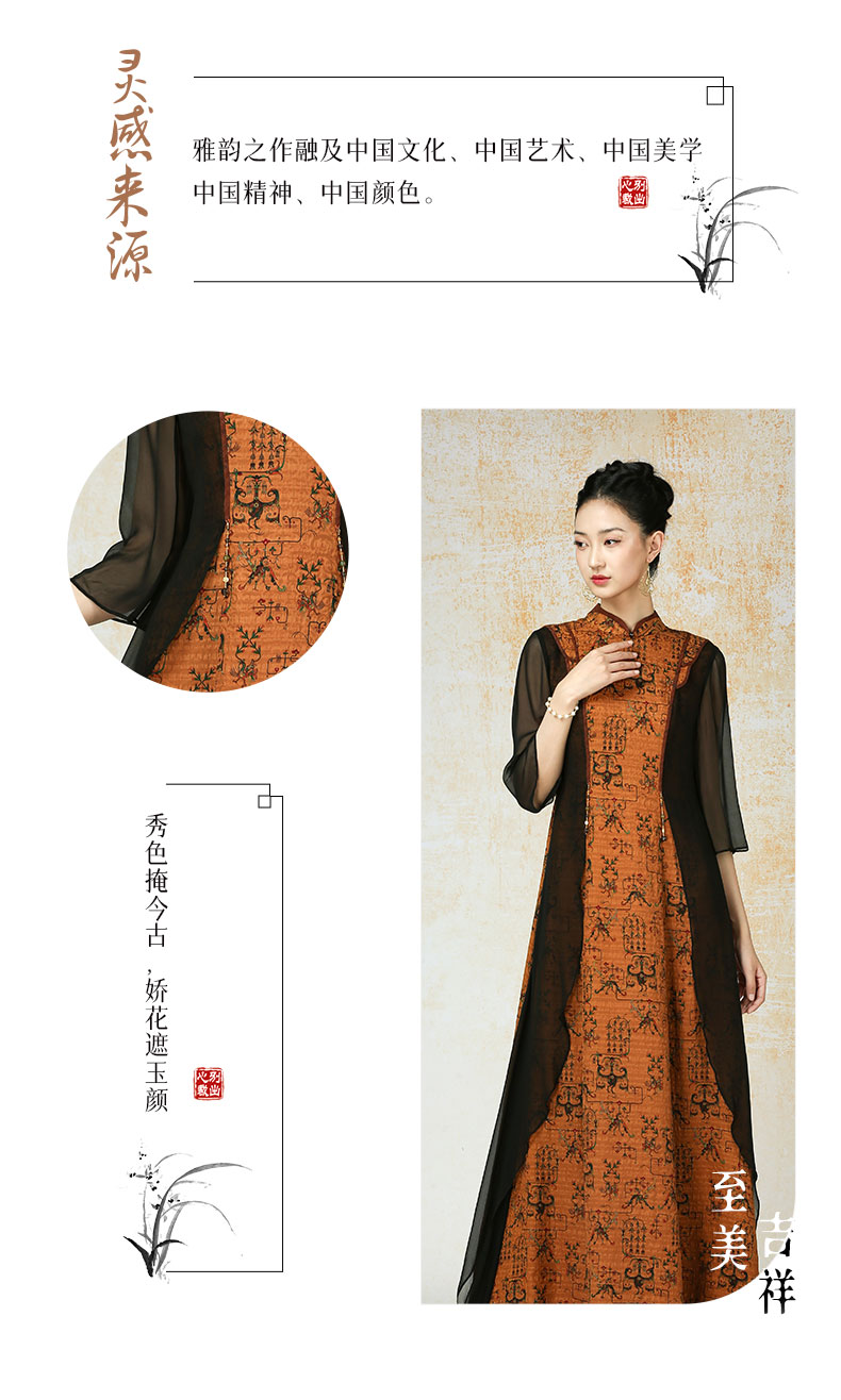 吉祥衣家新中式国风夏新款高端气质显瘦修身女装瞻彼日月连衣裙