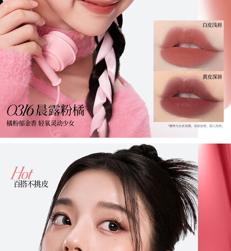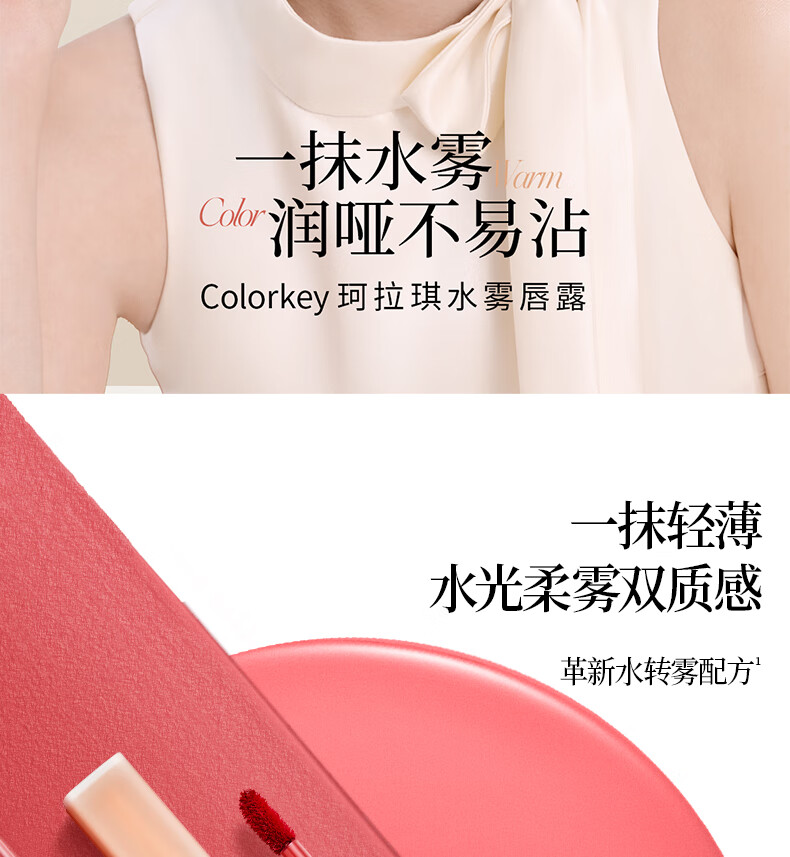 Colorkey珂拉琪柔雾水雾唇露 1.8g O316晨露粉橘