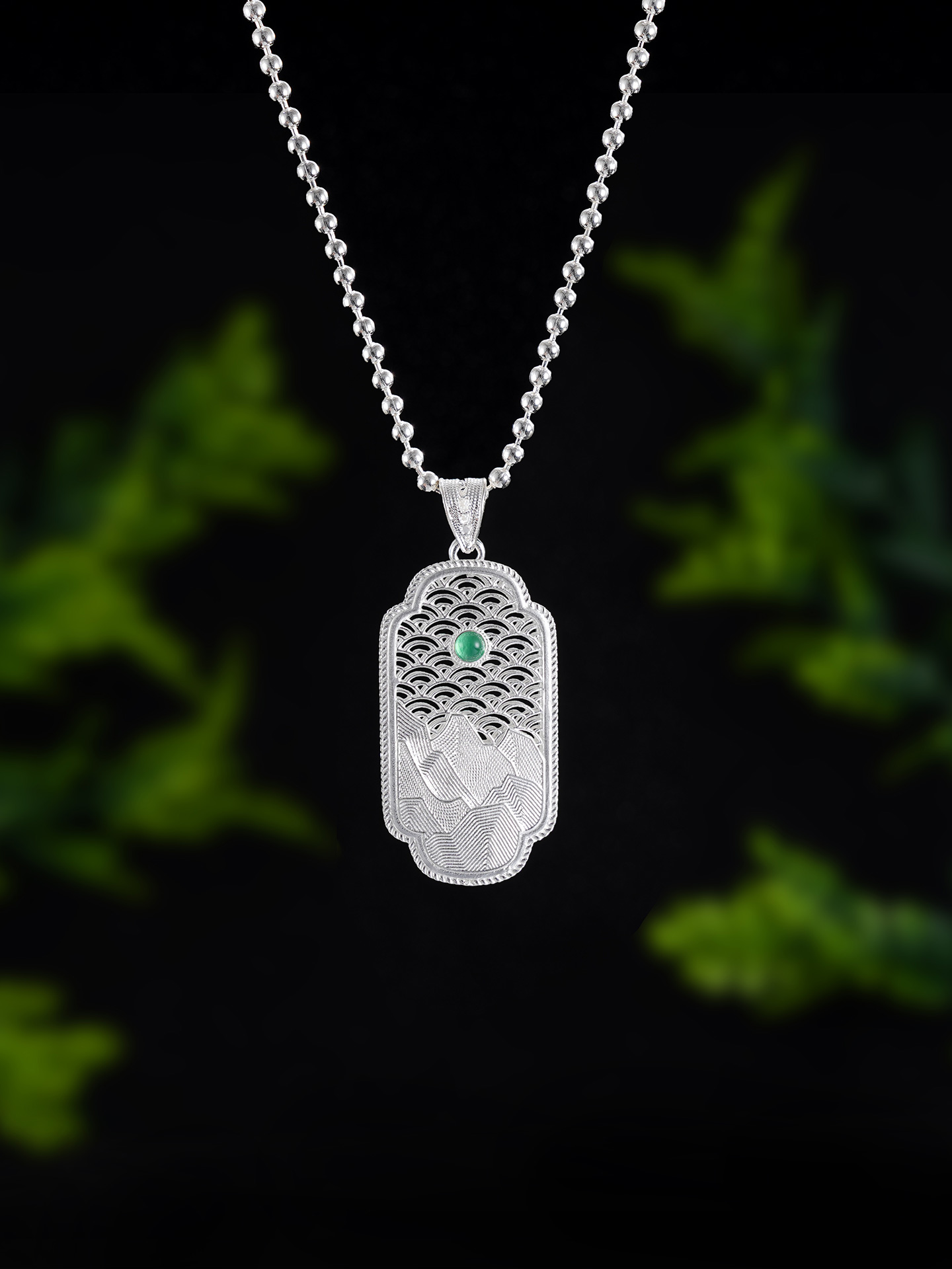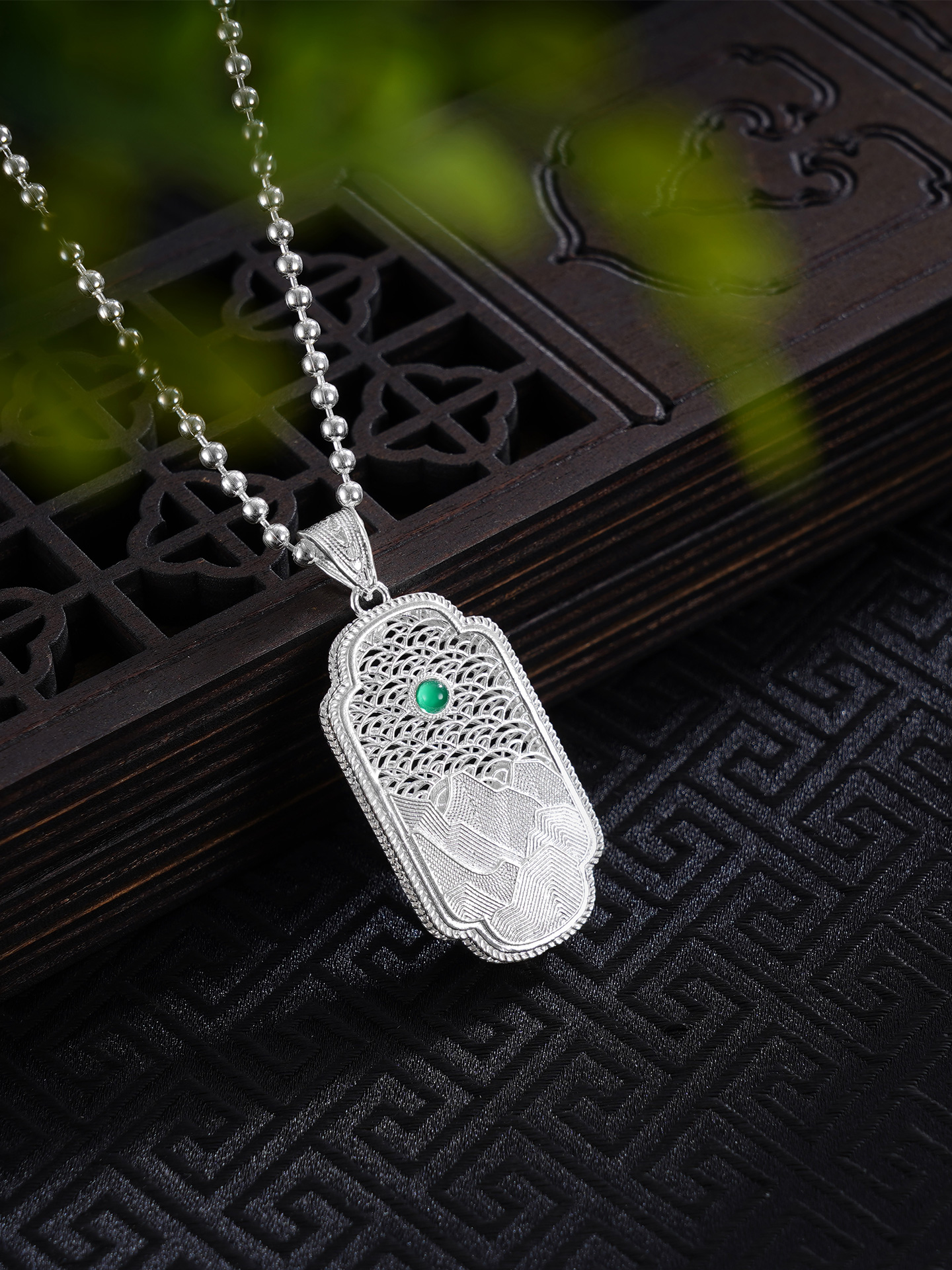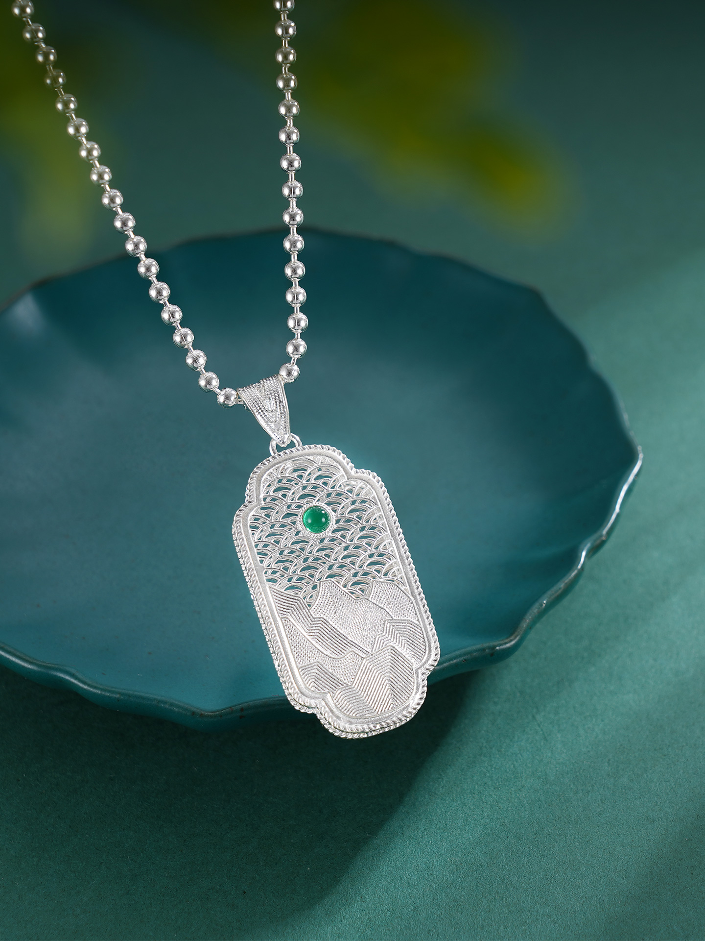 子佩集S990银【山河湘貌】大号套链项链【DSDZ009】纯银花丝绿玉髓大师工坊原创作品山水