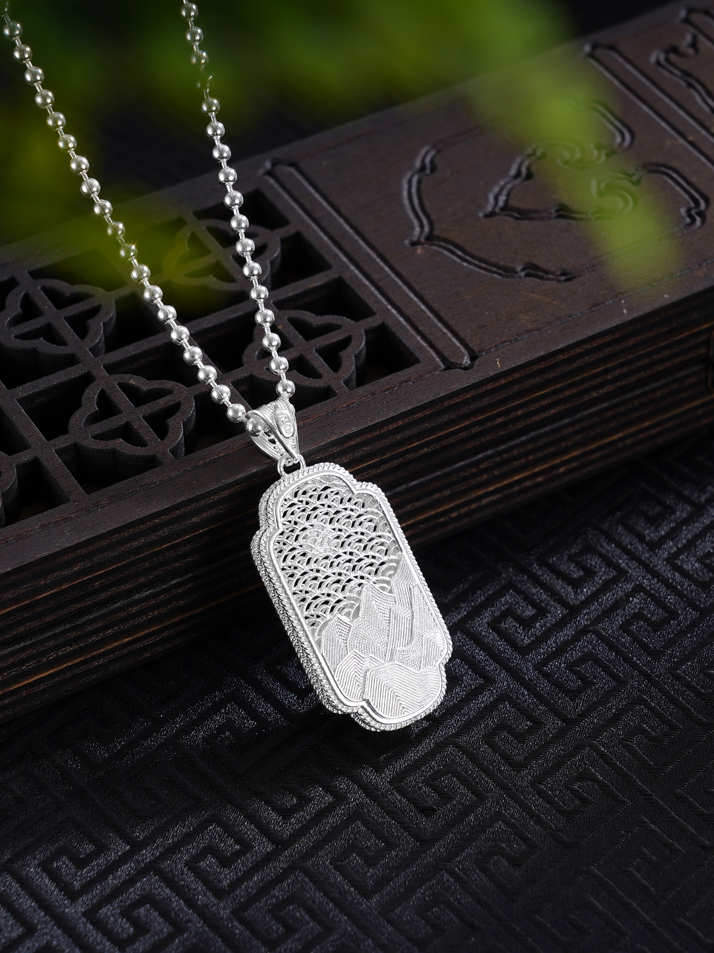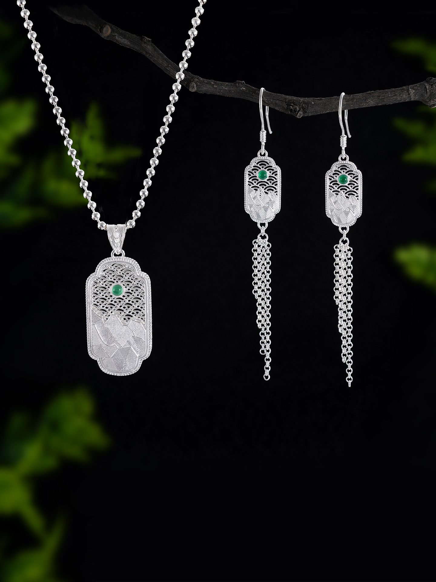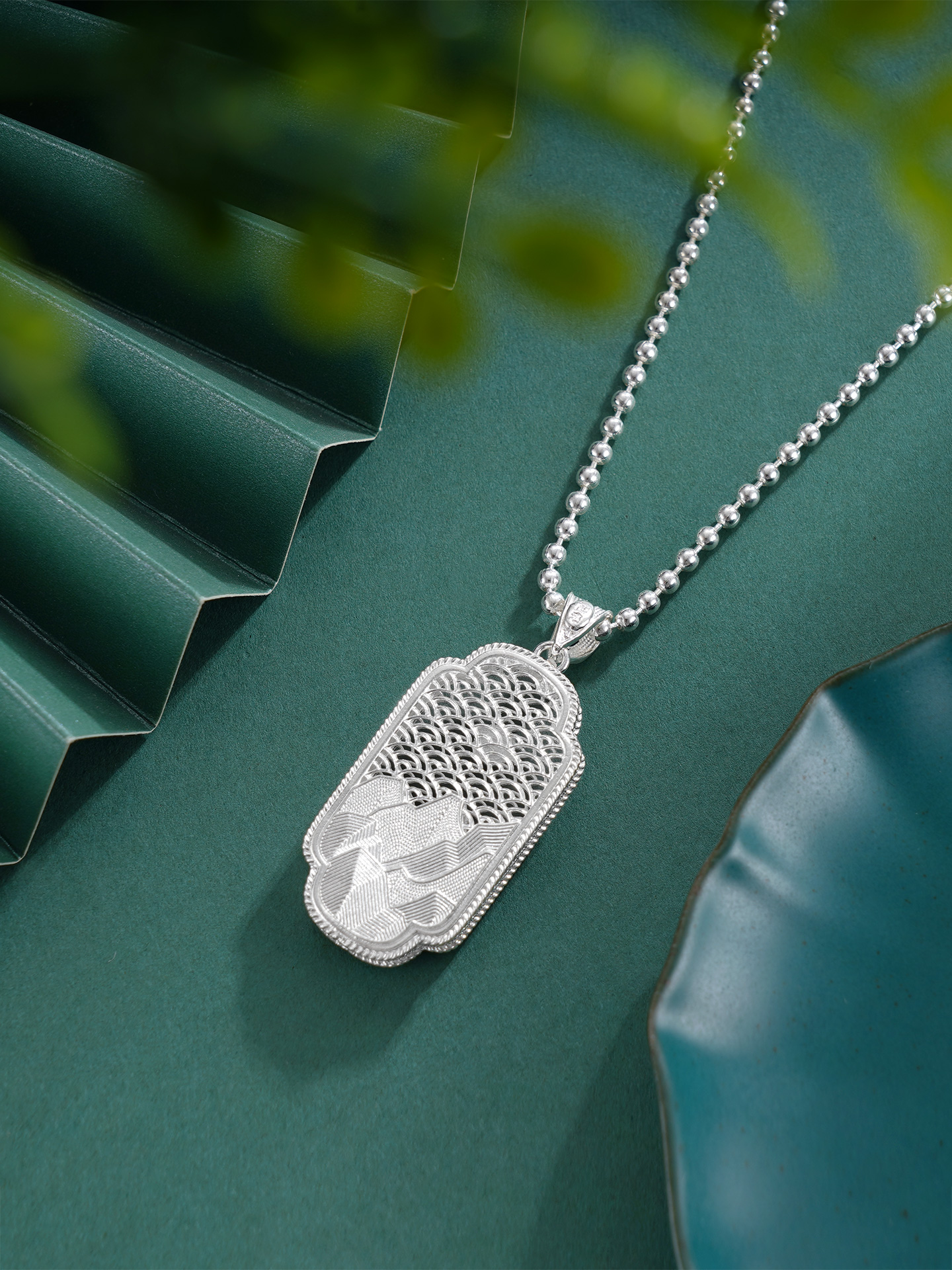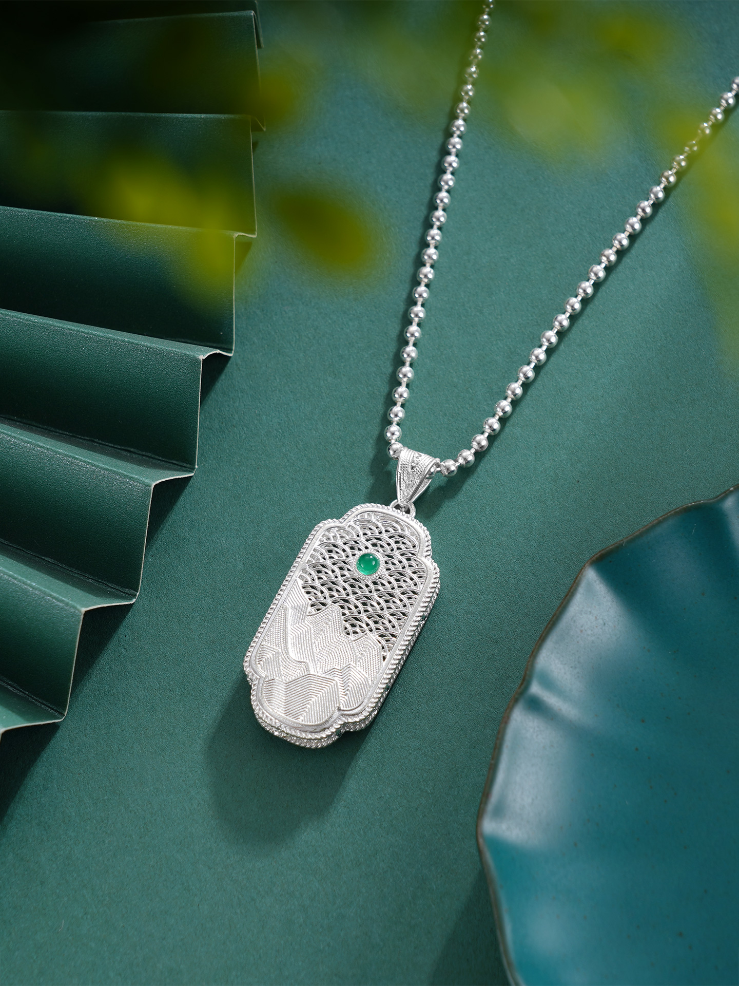 子佩集S990银【山河湘貌】大号套链项链【DSDZ009】纯银花丝绿玉髓大师工坊原创作品山水