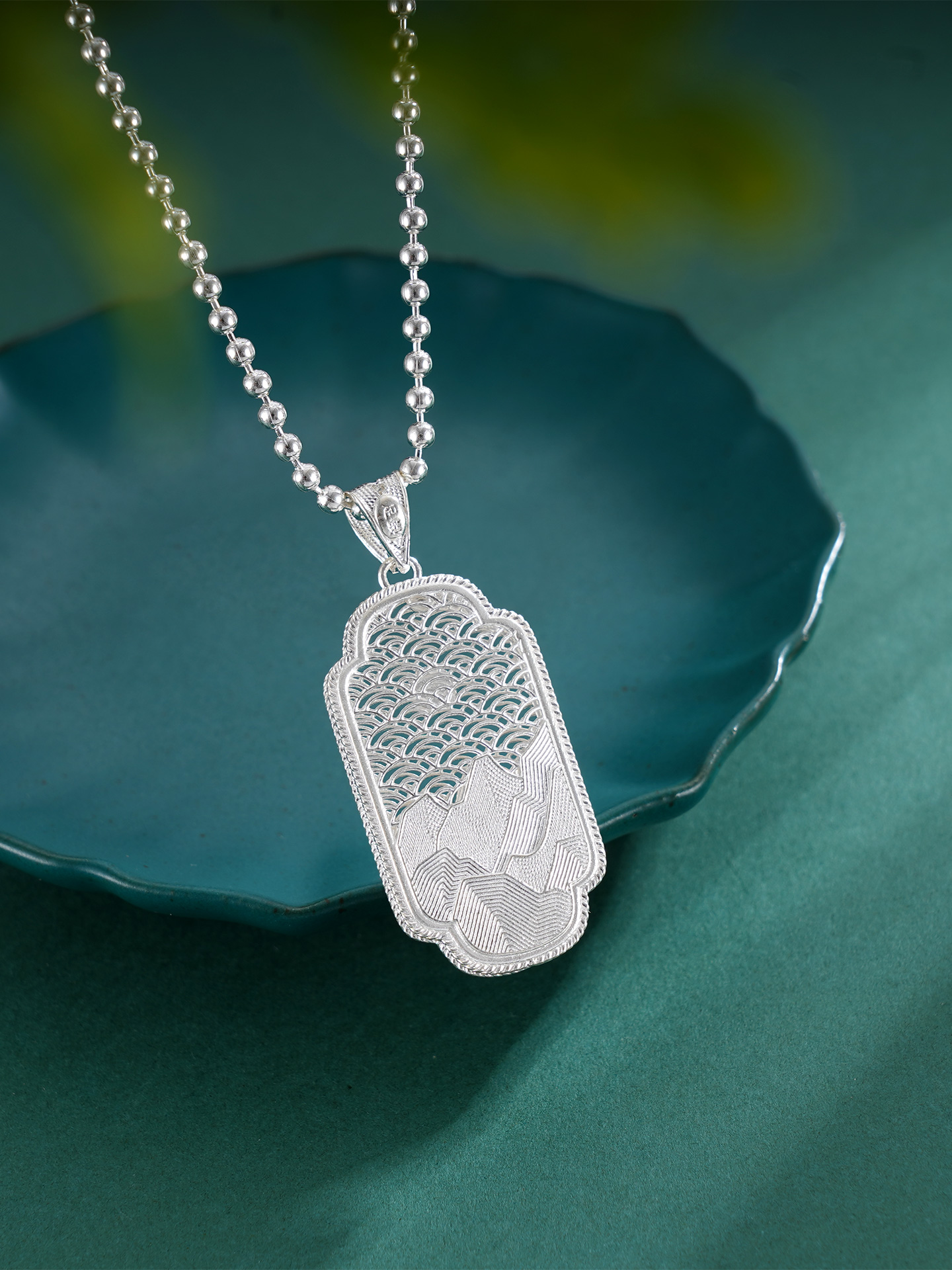 【寓意】:精选990足银,采用非遗银花丝工艺精制而成。湖光山色交相辉映,绘制出一幅幅壮丽的长沙画卷,作品以长沙山水为灵感设计。编织堆垒工艺,营造山峦起伏、水波婉转的动态效果,寓意着湖光山水和谐共生,寄予对祖国大好河山的美好祝愿。