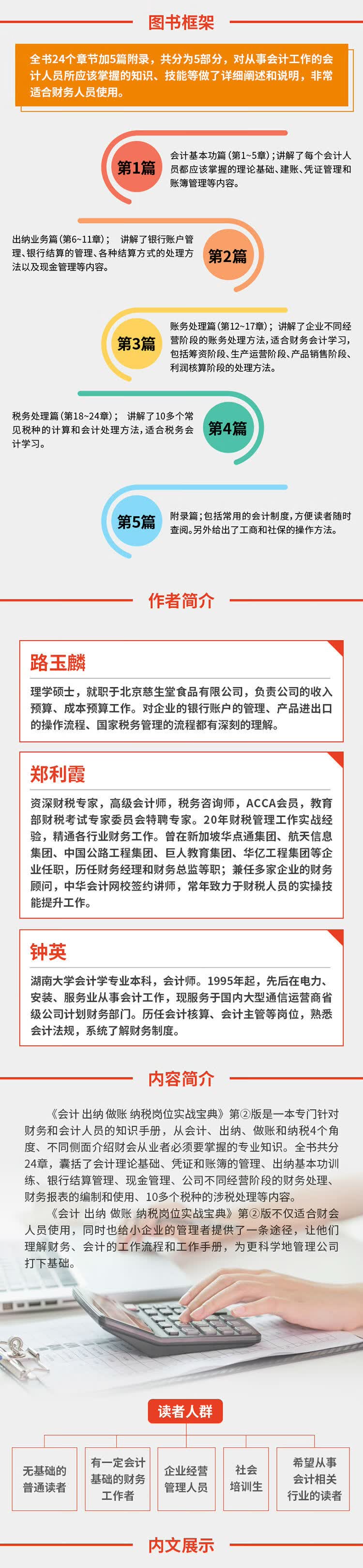第1篇:会计基本功篇;包括第1~5章,讲解了每个会计人员都应该掌握的理论基础、凭证管理和账簿管理等内容。