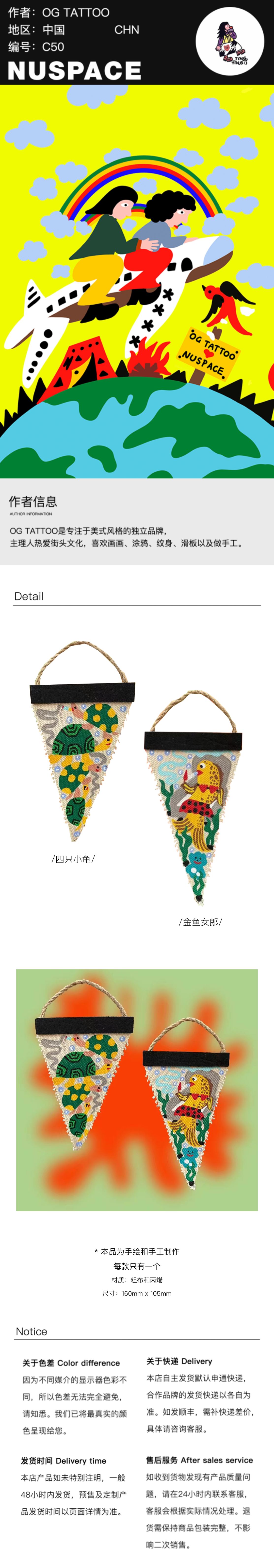 OG TATTOO|『小龟和鱼女郎 』手绘户外小旗