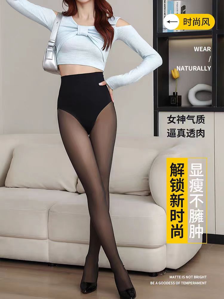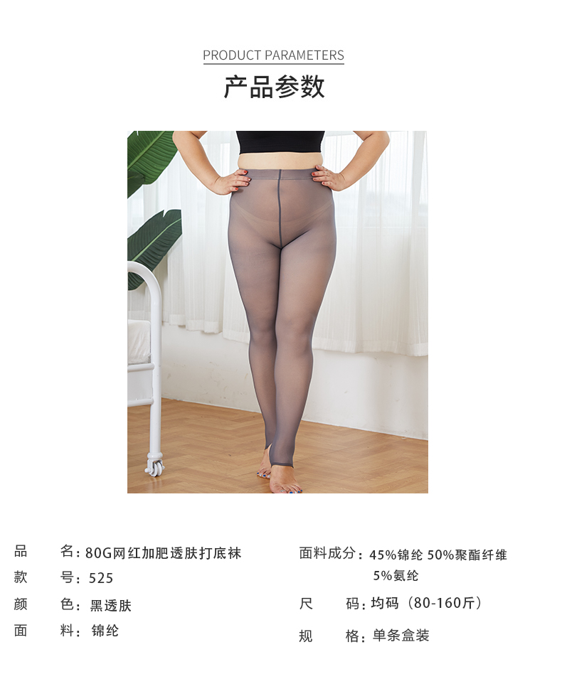 女士80g水光黑丝性感透肤大版加肥加绒打底裤大弹力舒适保暖水光裤袜5170/520/525/1520