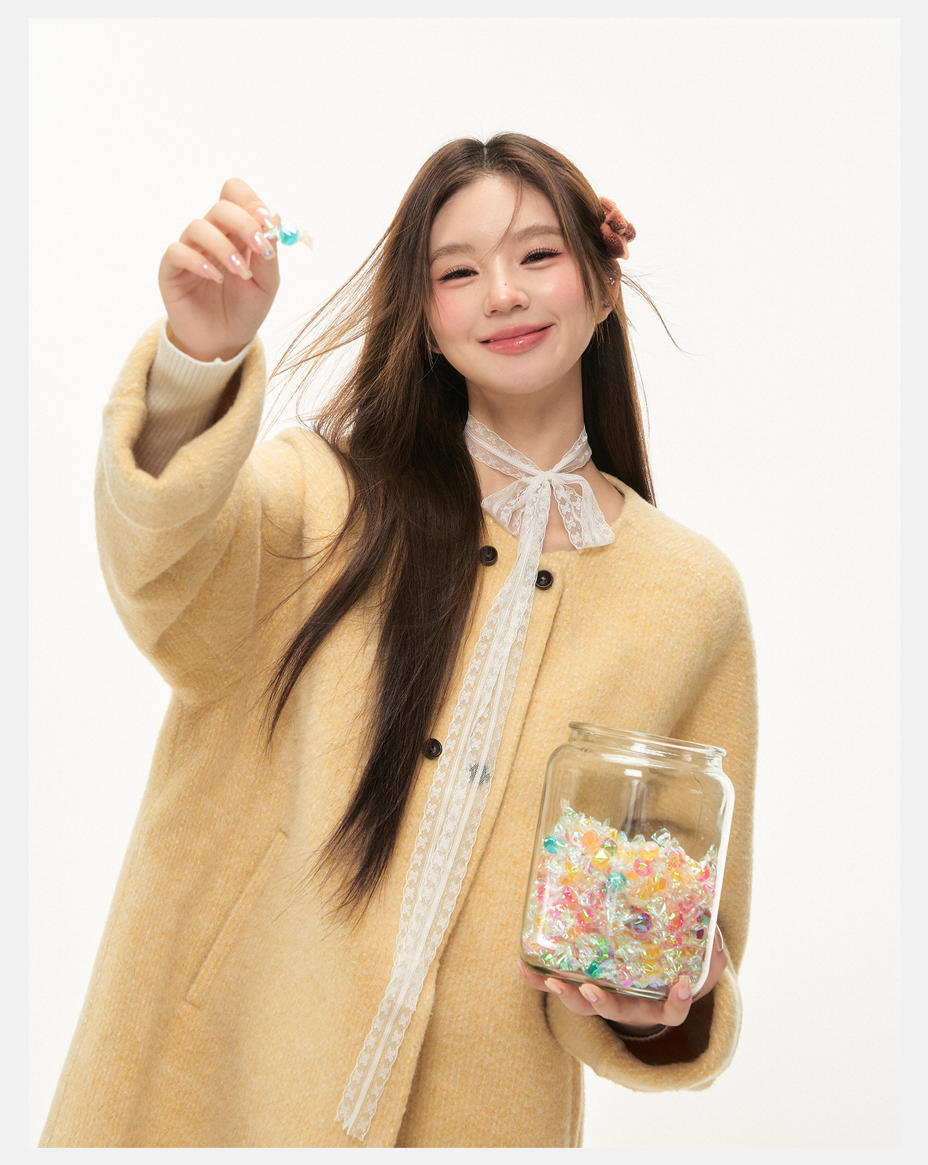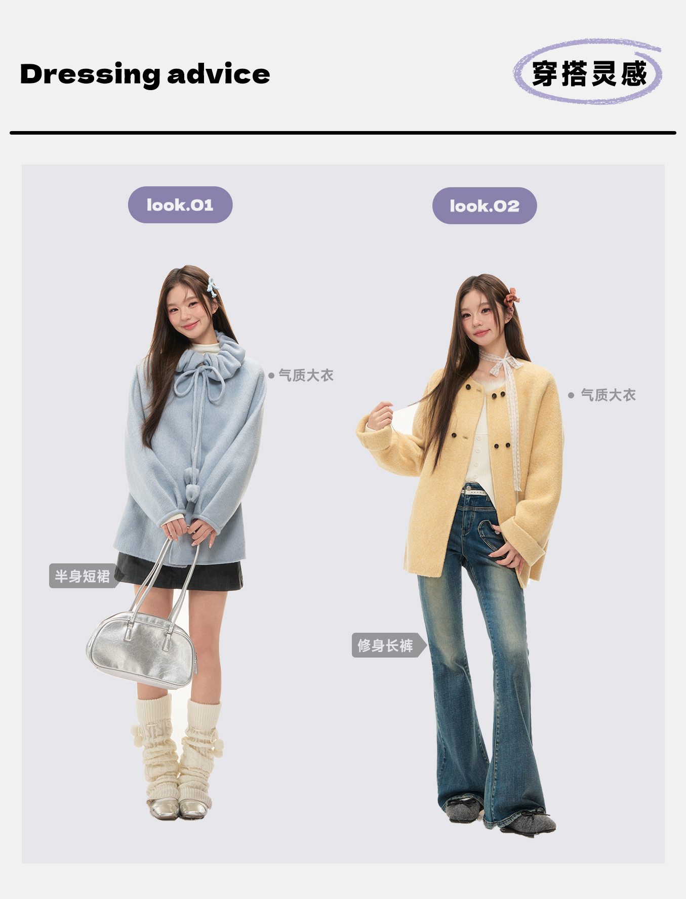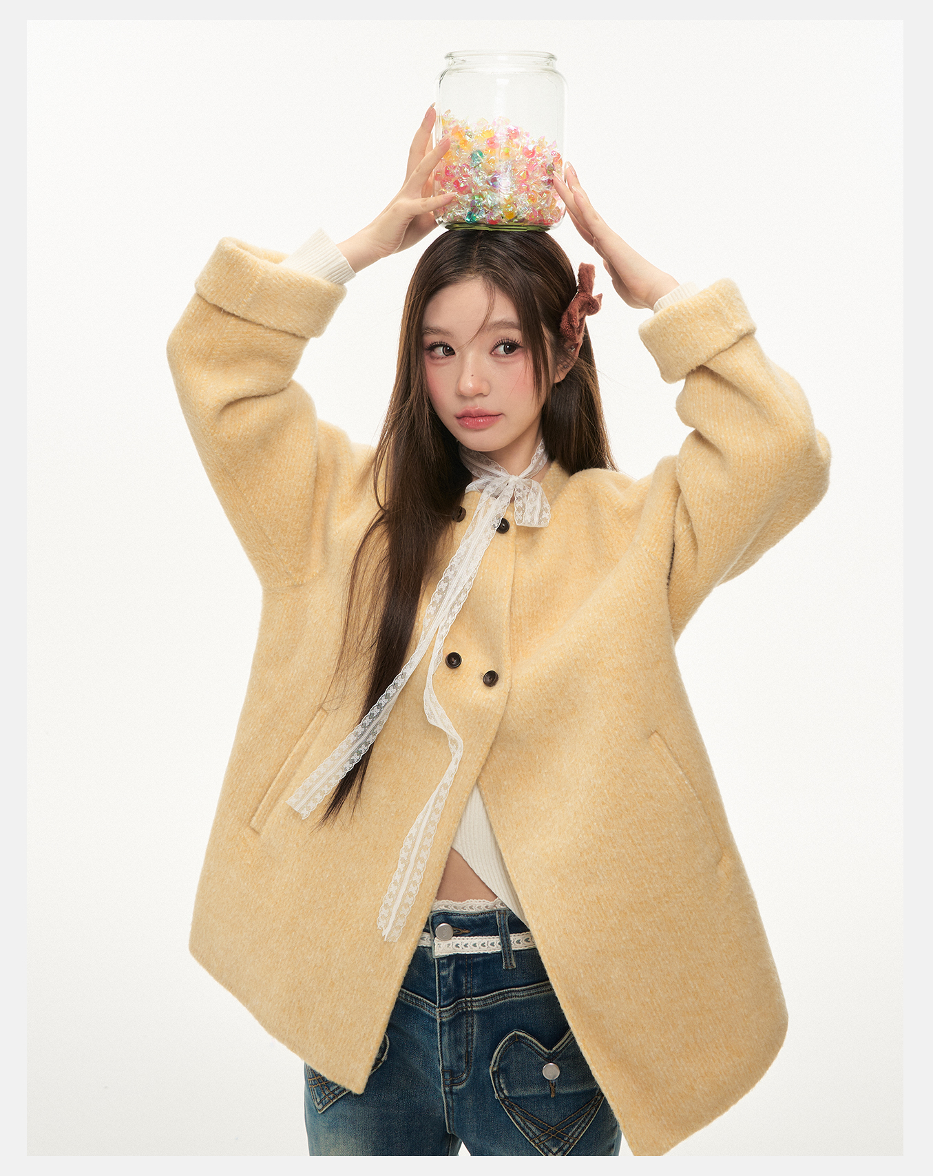 P&X设计师女装2025冬季无领女双面呢中长款大衣 825421115 黄色