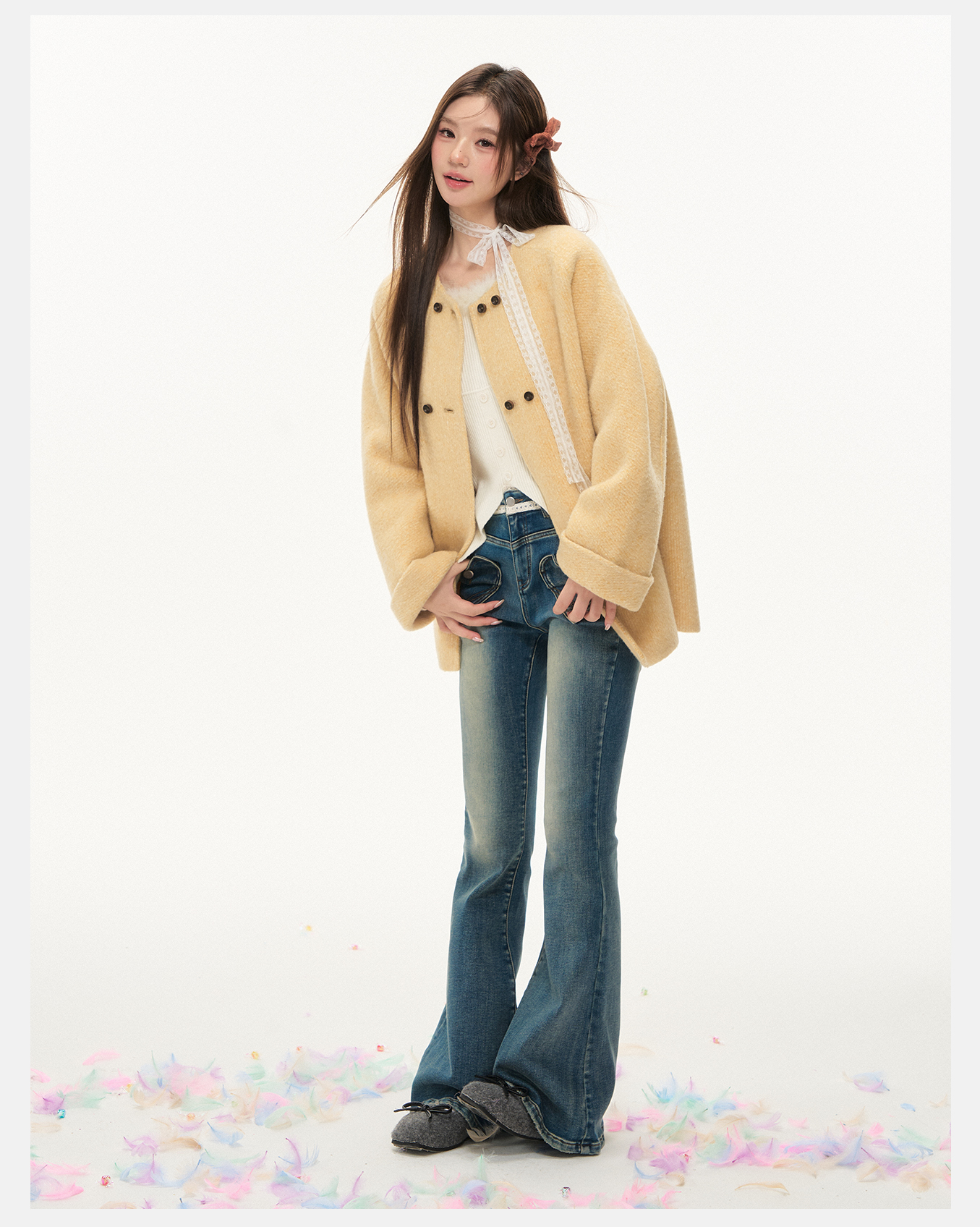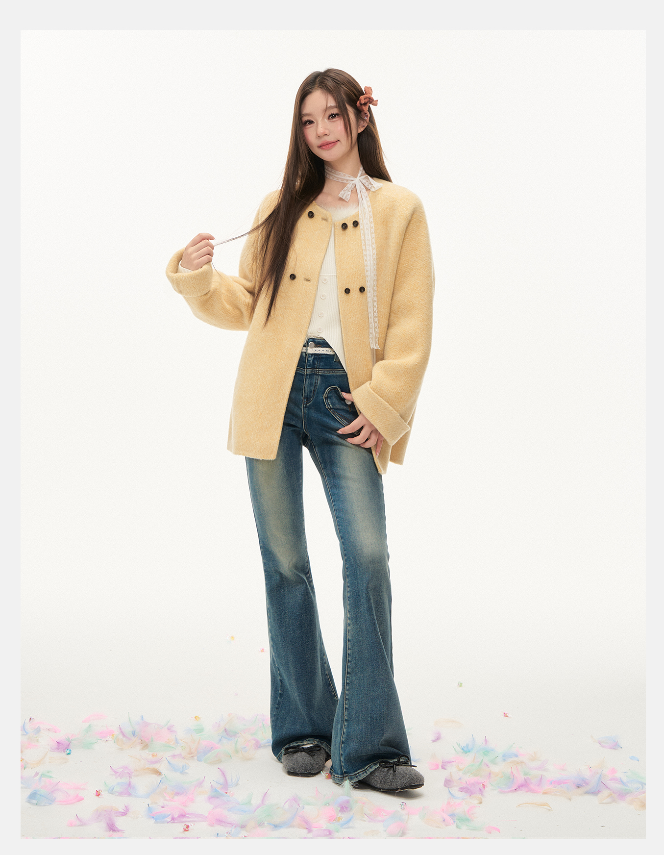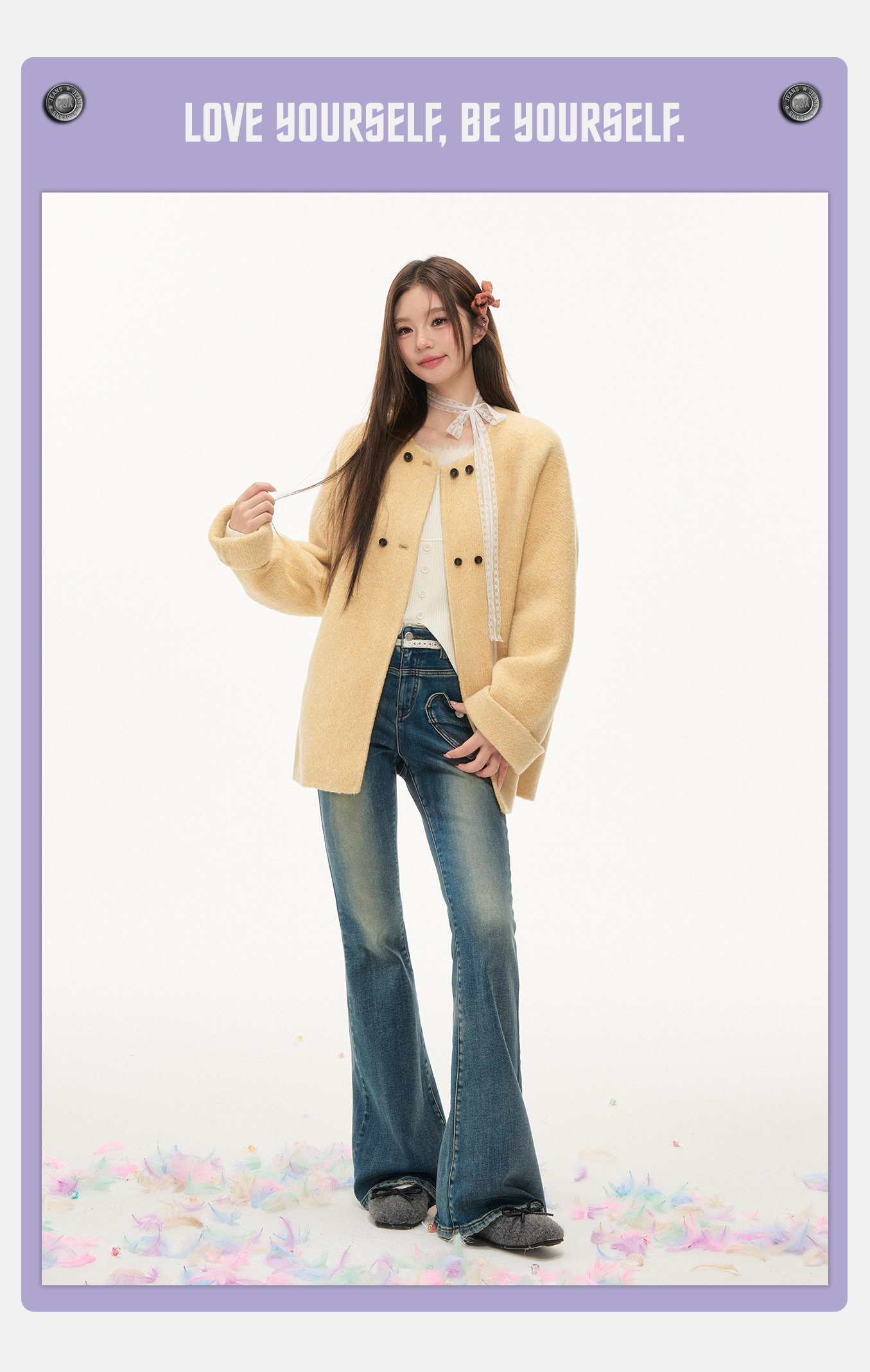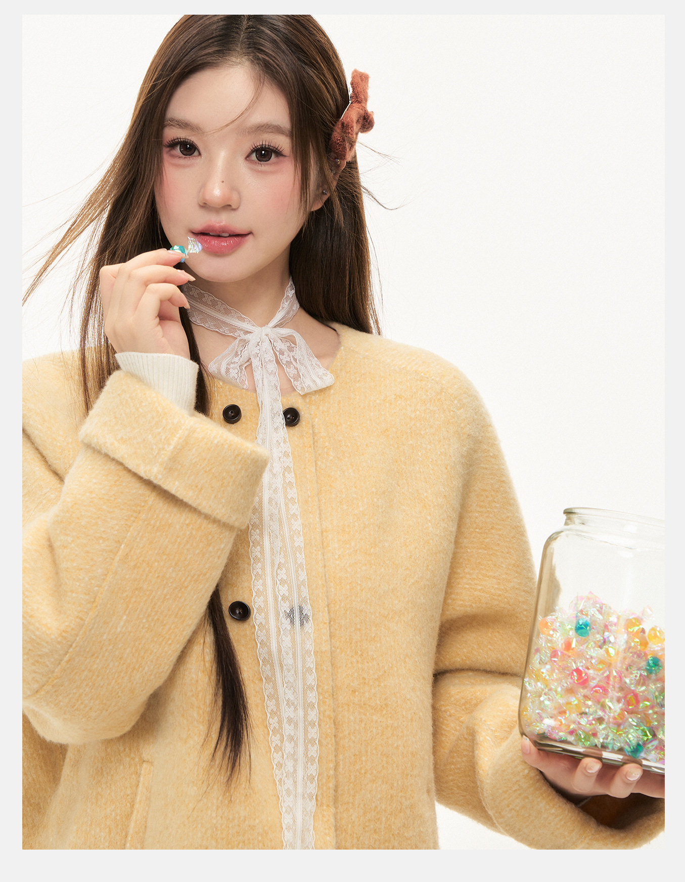 P&X设计师女装2025冬季无领女双面呢中长款大衣 825421115 黄色