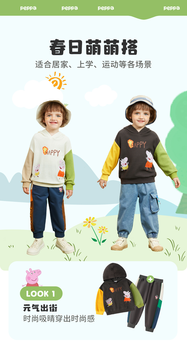 【80-130】【小猪佩奇】男童春秋连帽卫衣