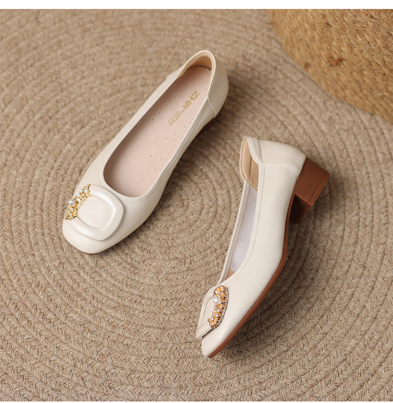 ZHR女鞋休闲小香风浅口单鞋女气质法式晚风软皮一脚蹬懒人鞋外穿