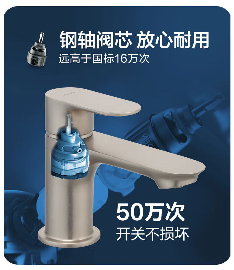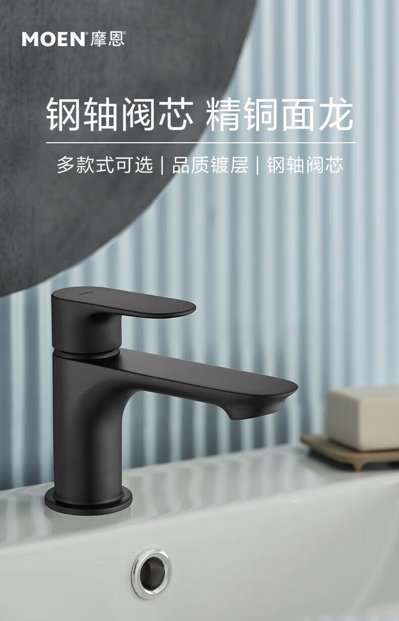 摩恩面盆水龙头冷热卫生间洗脸盆浴室柜龙头黑色GN31121 GN31121SRN含翻板下水器拉