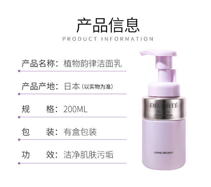 【保税仓直发】COSME DECORTE 黛珂 植物韵律保湿泡沫洗面奶 200毫升(效期26年2-12月)