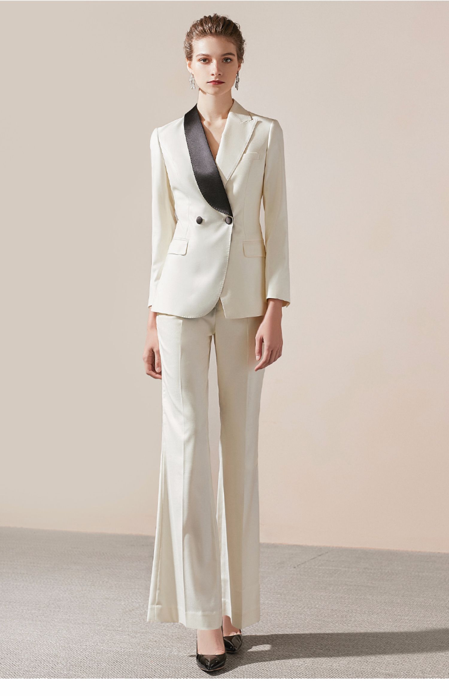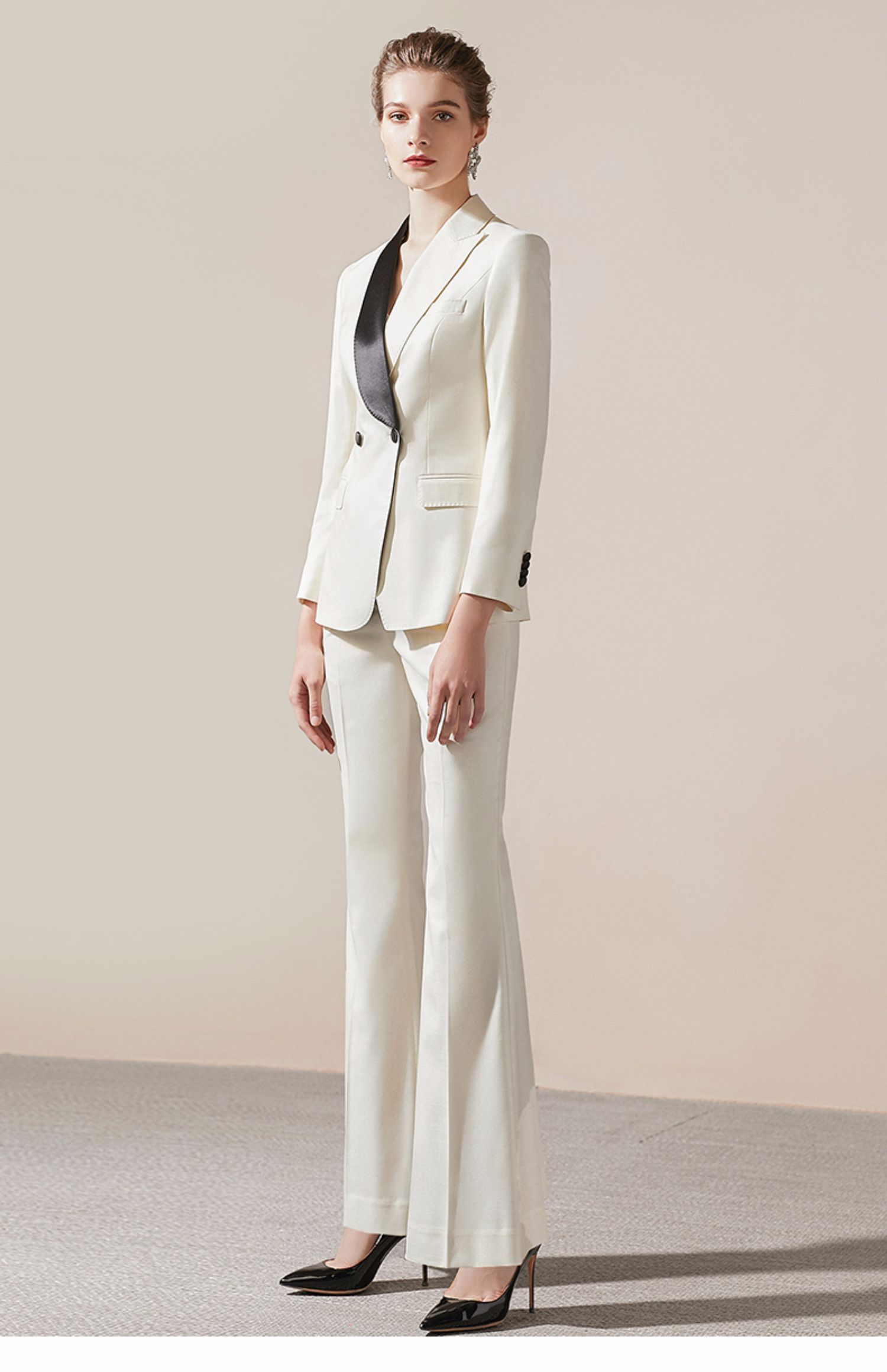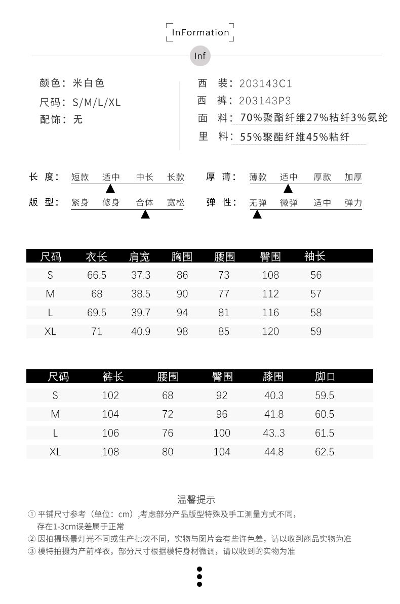 IWY/西装套装时尚气质女神范工作服西服韩版商务职业装白色面试正装OL203143C1+203143P3