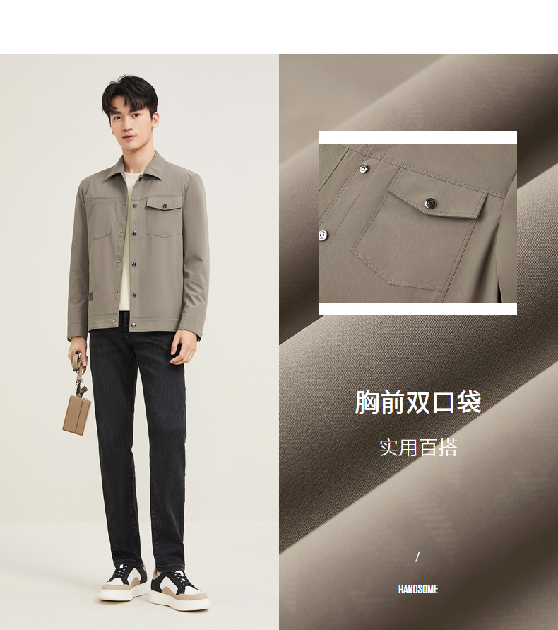 【工装满印茄克】柒牌男士潮流夹克2025秋季新品舒适印花休闲外套129K70030