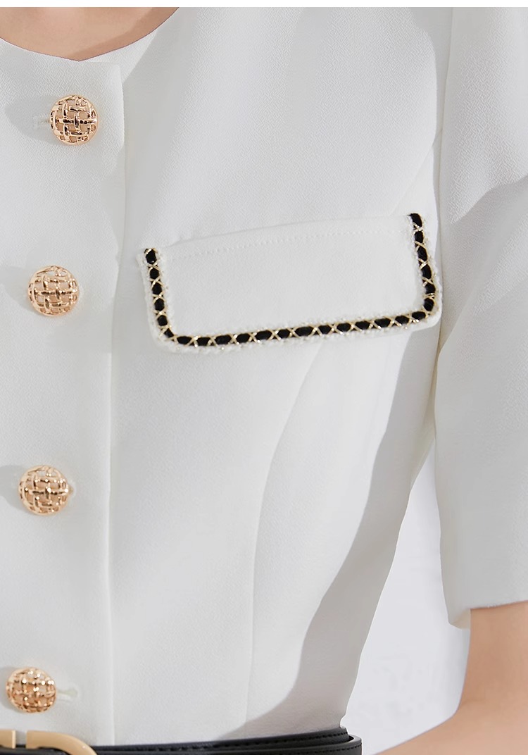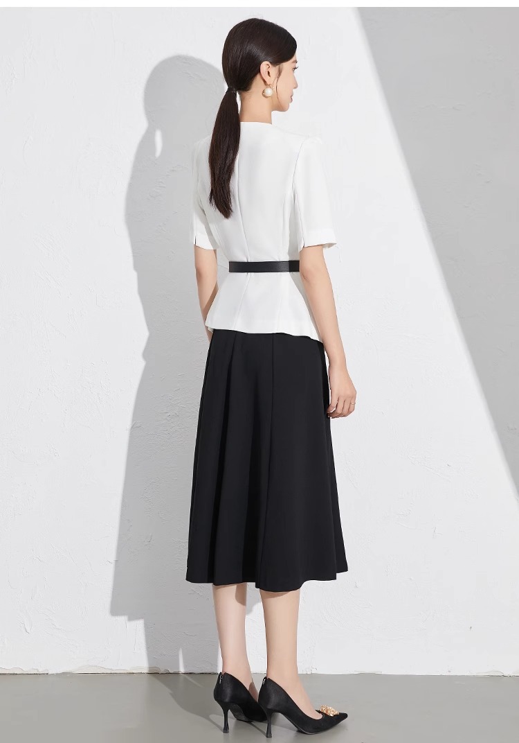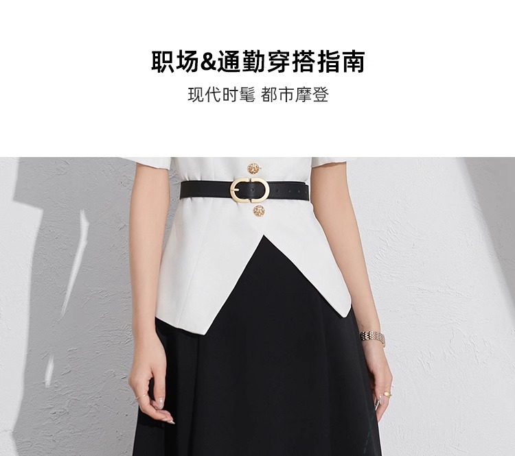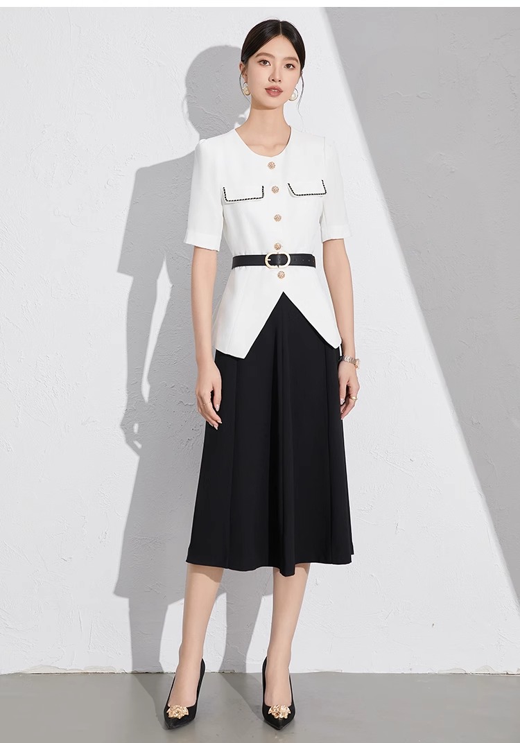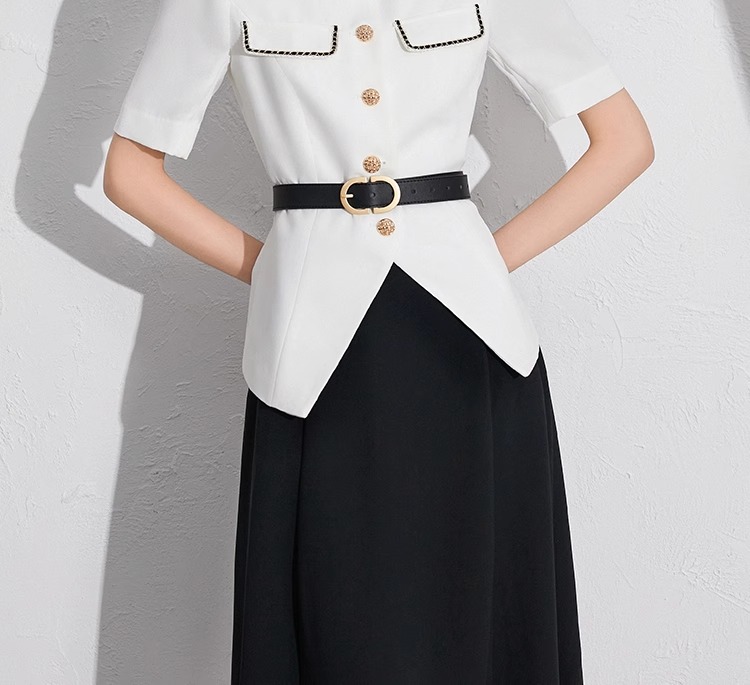 IWY/黑白撞色时尚套装夏季薄款两件套职业商务女装套装裙主持人上镜装24CS001