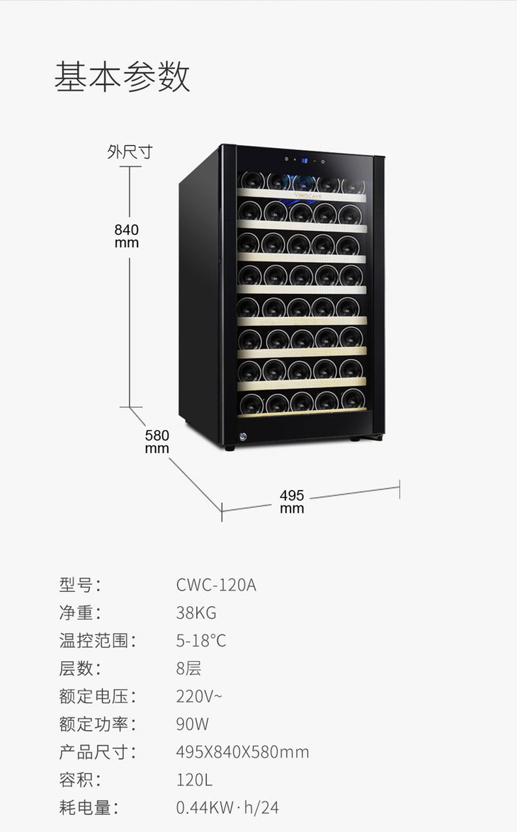 Vinocave/维诺卡夫 CWC-120A 压缩机恒温红酒柜家用冰吧冷藏柜