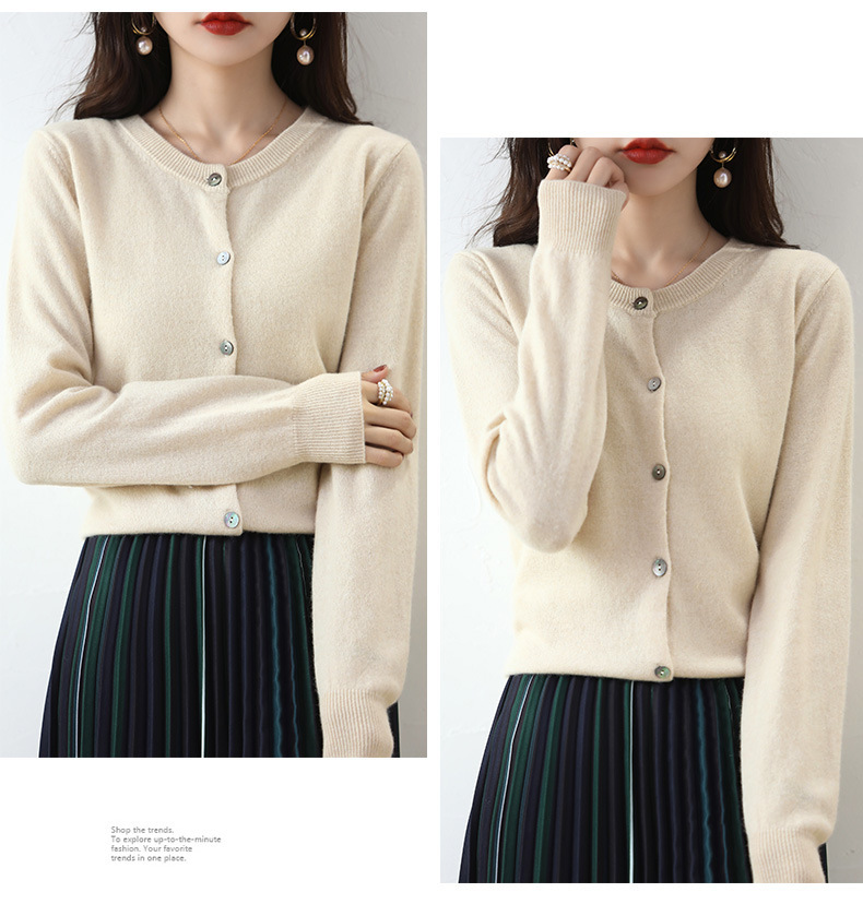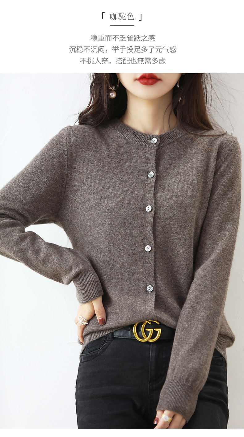圆领纯色针织开衫,宽松百搭毛衣外套QH-HY050