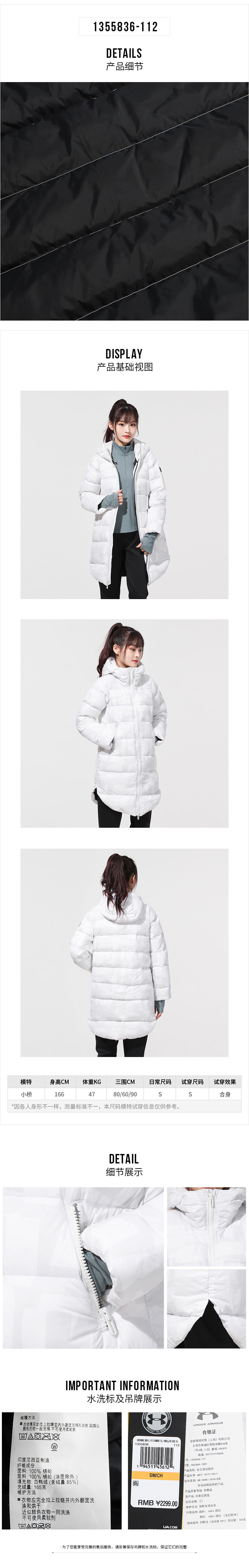 安德玛(UNDERARMOUR)2022秋冬季新款运动服羽绒外套中长款连帽保暖羽绒服 1355836-112