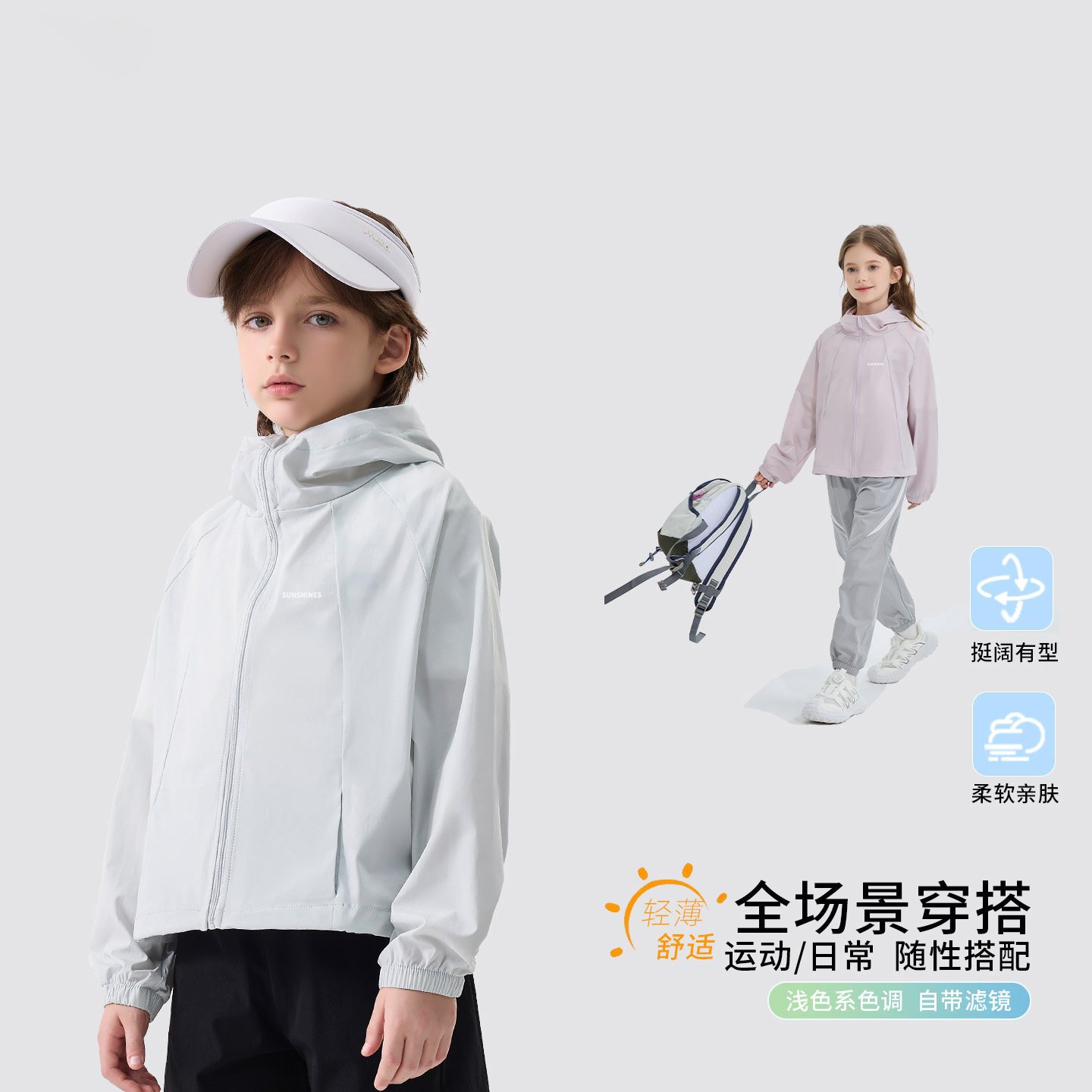 【品名】西蒙日记儿童原纱软壳防晒衣PT43