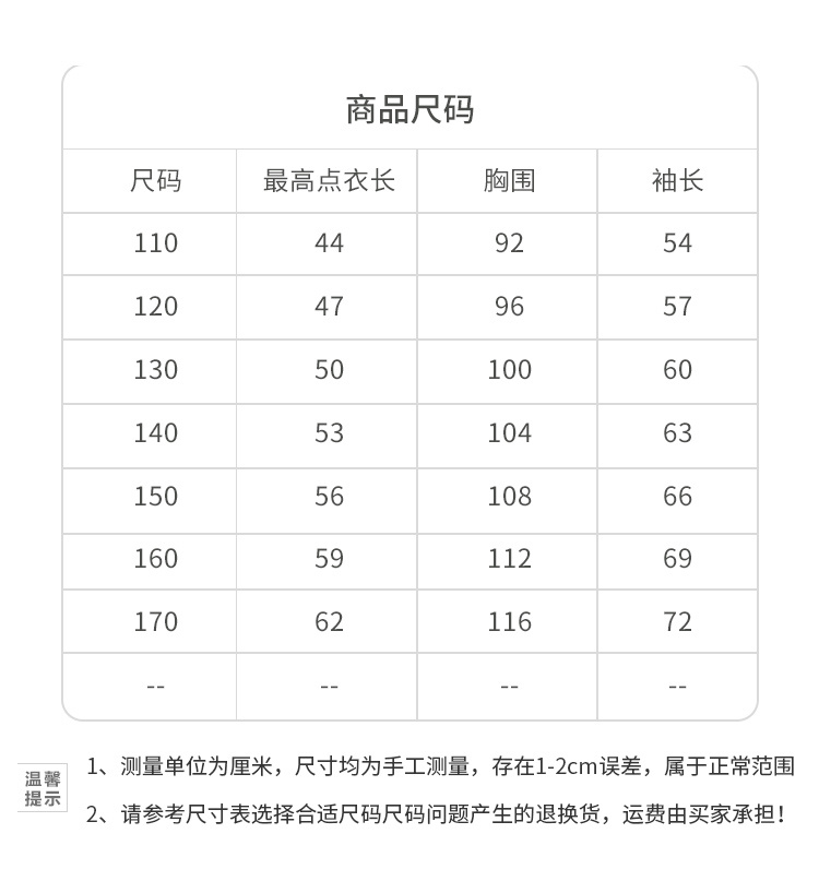 【尺码】110-170码