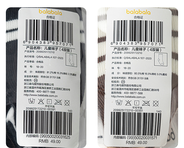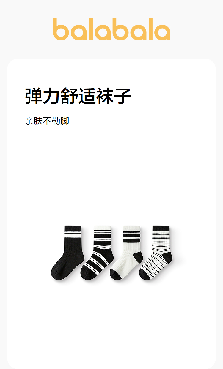 巴拉巴拉儿童袜子男童中筒袜女童学生袜条纹学院风高弹不勒四双装