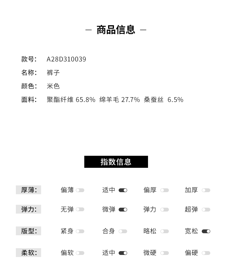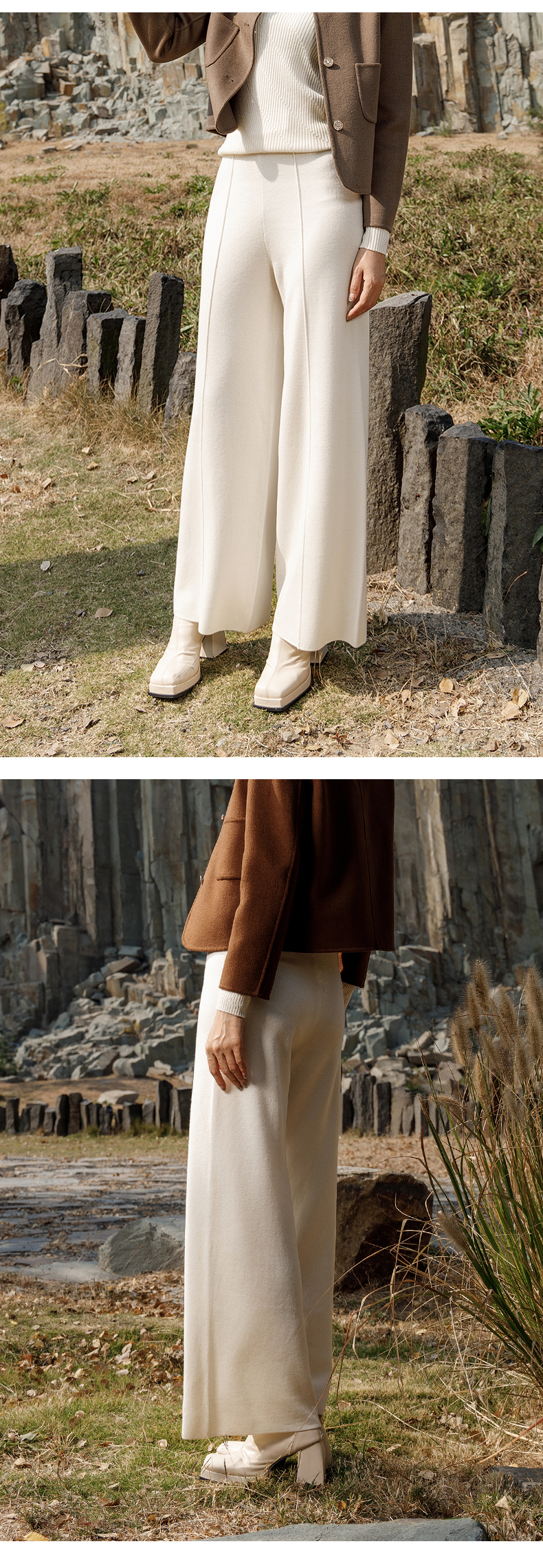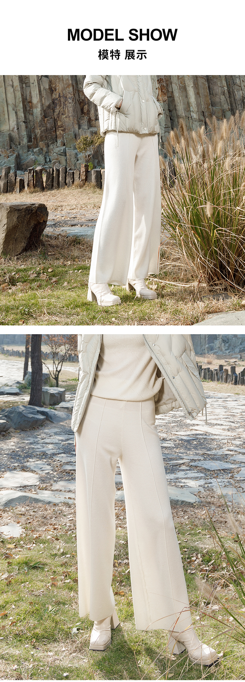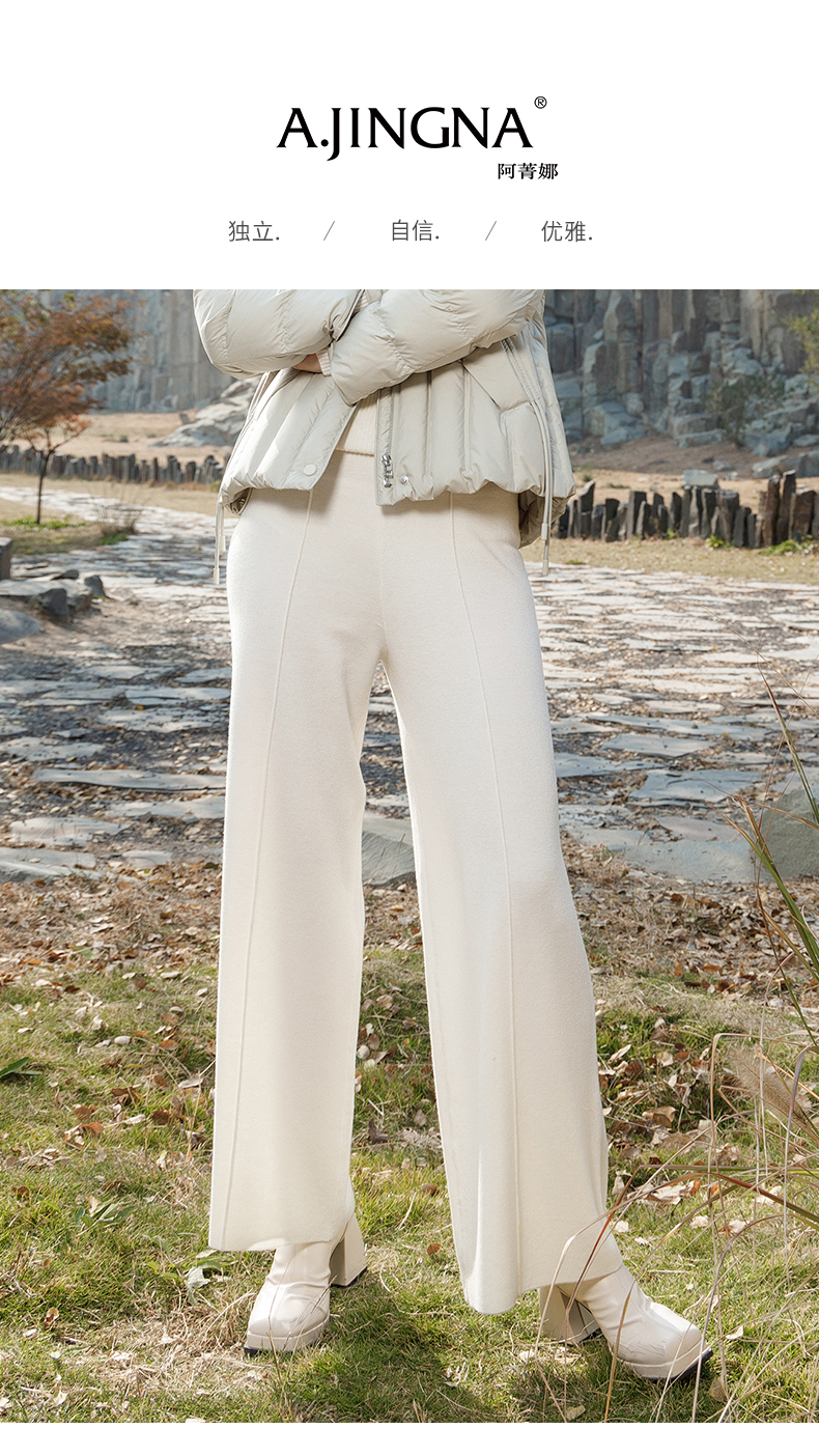 【柔软垂挺】阿菁娜秋冬LU系绵羊毛高腰阔腿裤F30D210003
