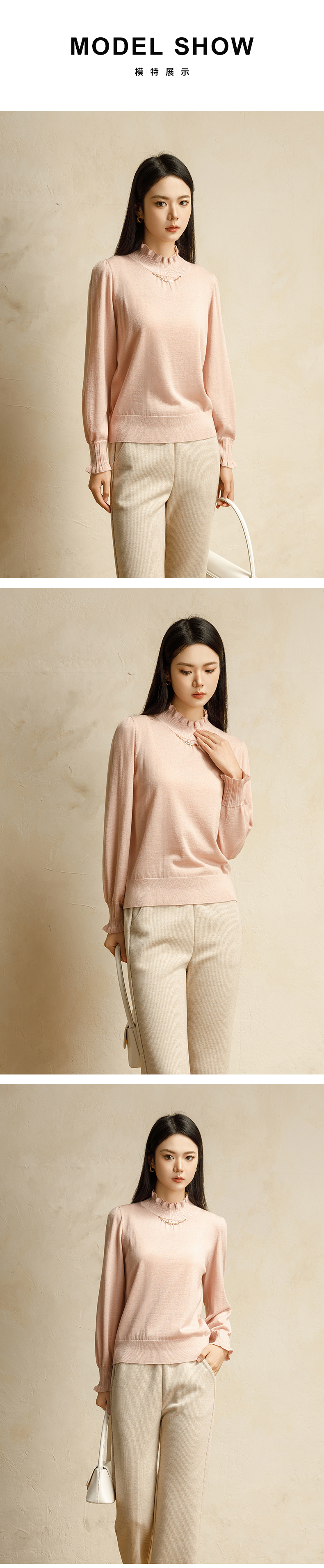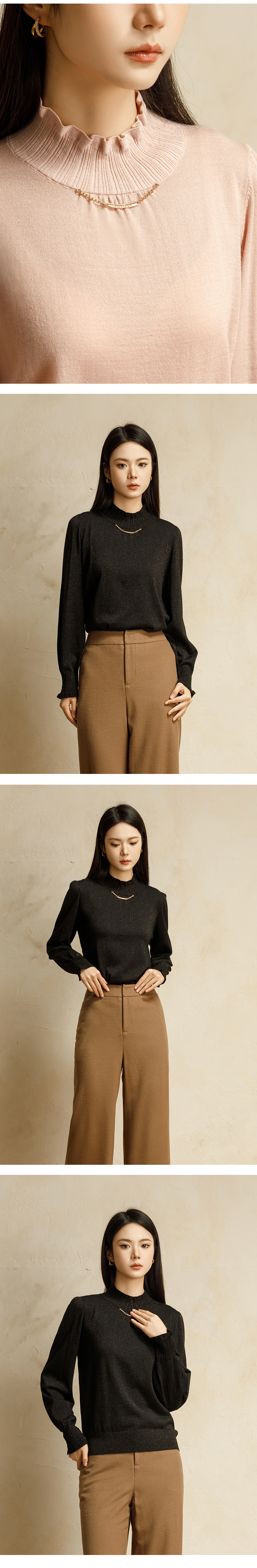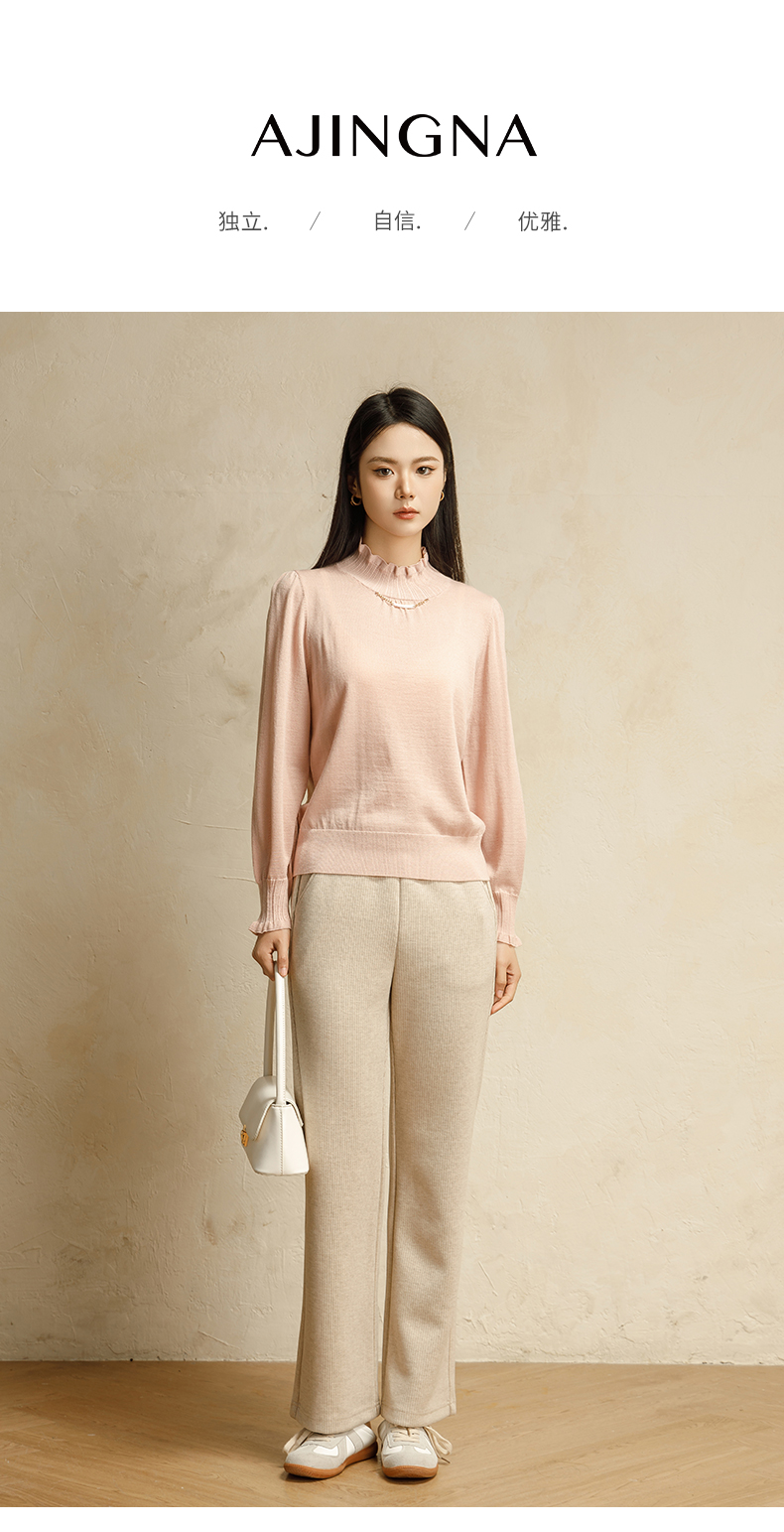 【商场同款】阿菁娜冬季新款半高花边领温暖毛衫A30Q301026