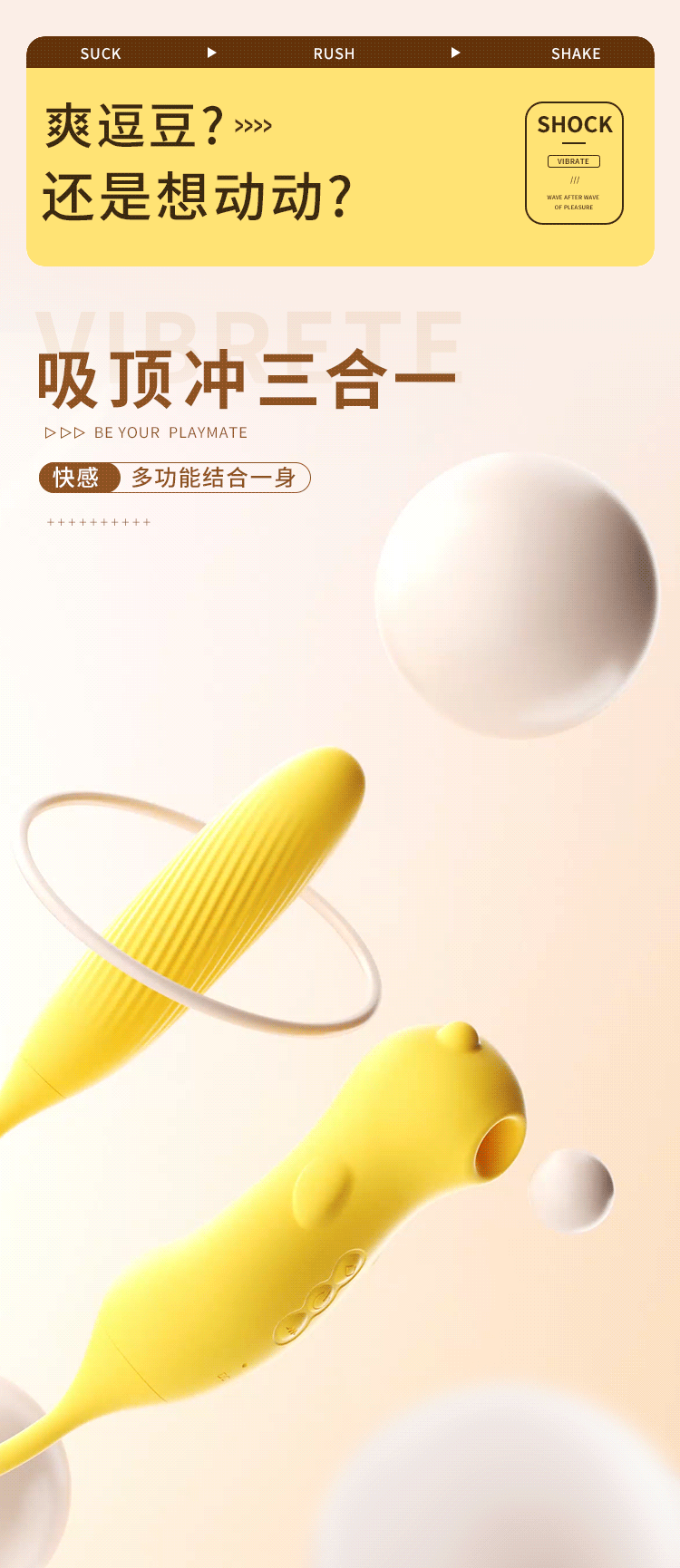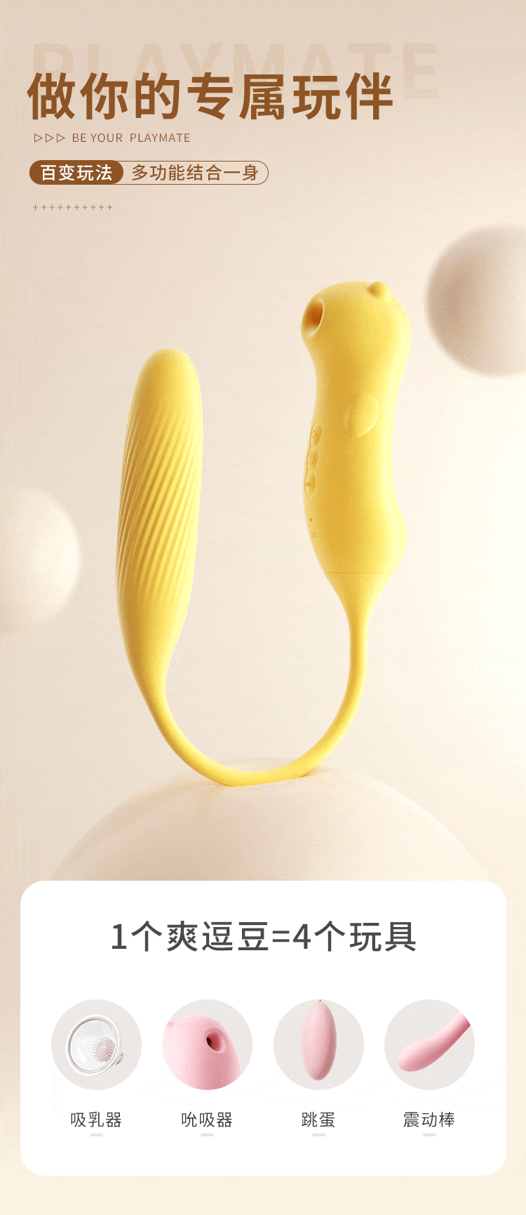 谜姬 爽逗豆脉冲加温APP款 跳蛋情趣用品女性高级自慰器静音外出穿戴式女人专用插入体成人性玩具情侣互动小跳弹海豚女用吮吸震动棒 爽逗豆【脉冲吮吸+自由弯曲+智能加温】(黄色)