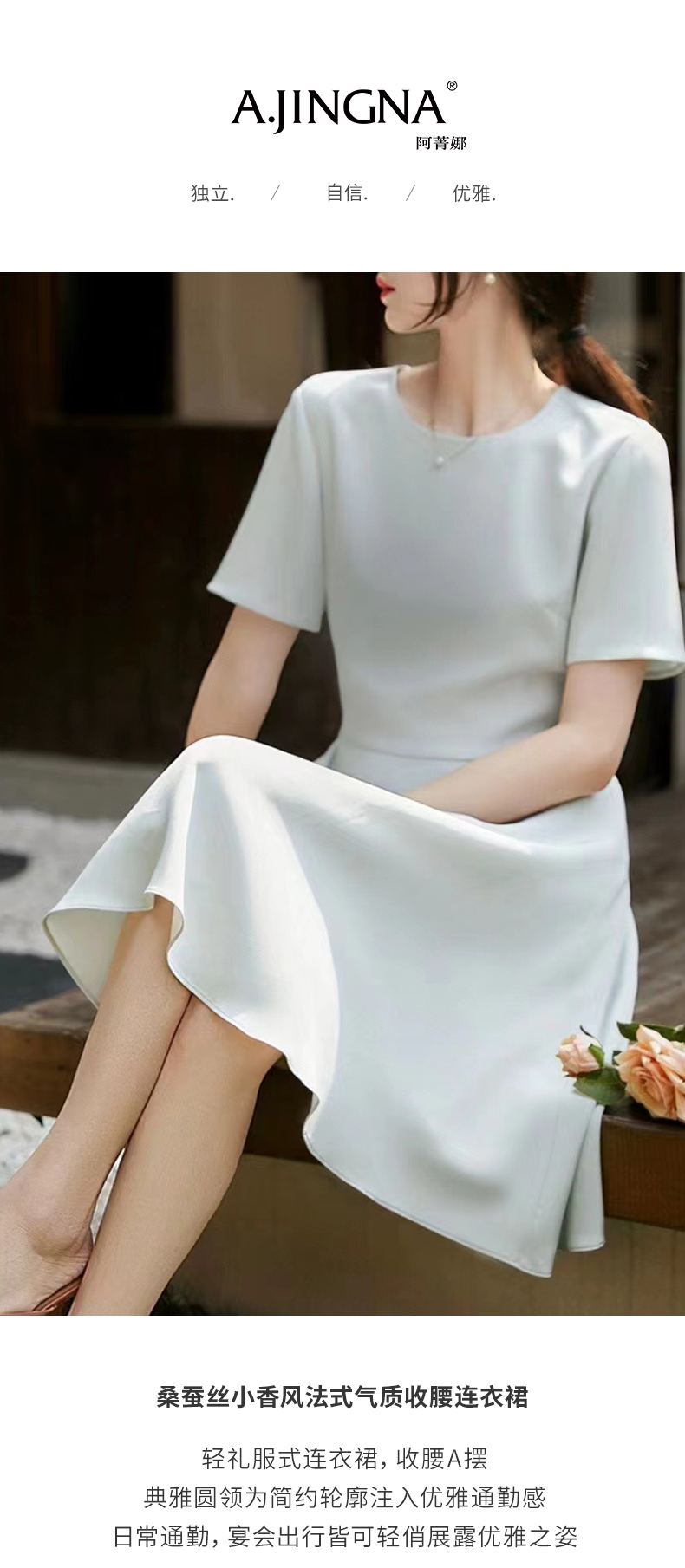 【特价不退换】阿菁娜桑蚕丝优雅通勤小香风法式气质收腰连衣裙F29X212059
