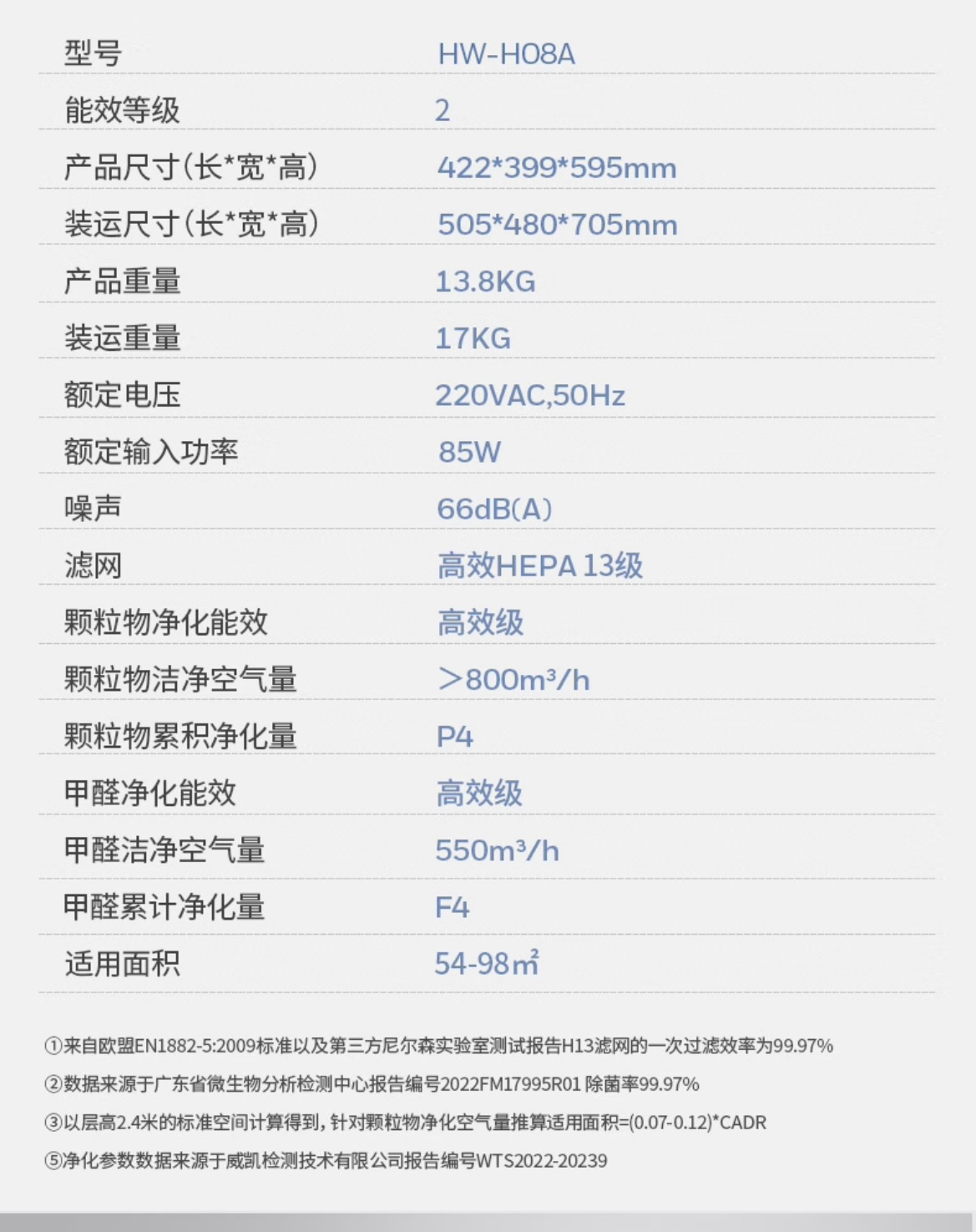 霍尼韦尔(honeywell) 空气净化器办公会议商用除甲醛PM2.5二手烟除菌大空间 HW-H08A