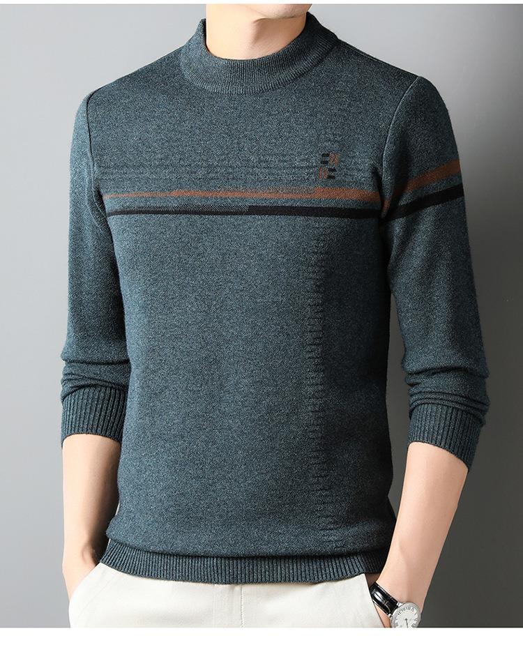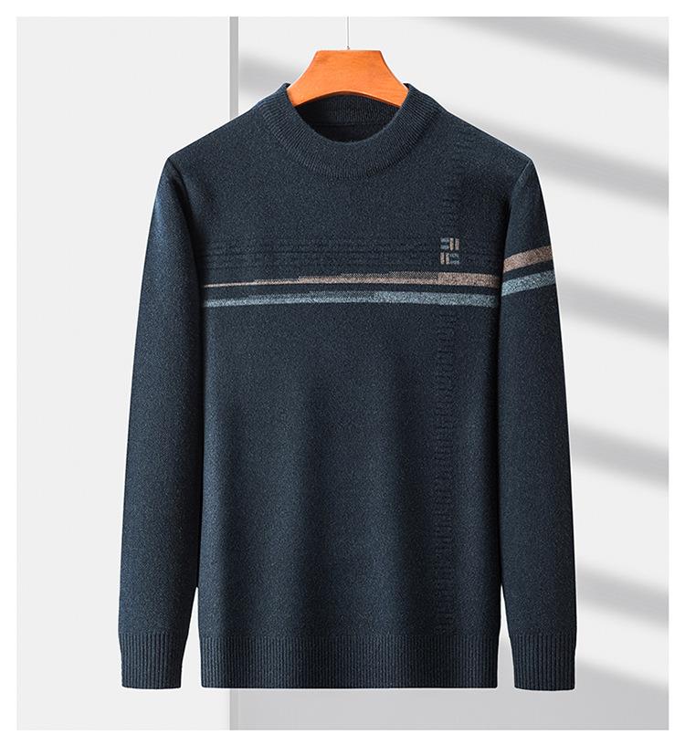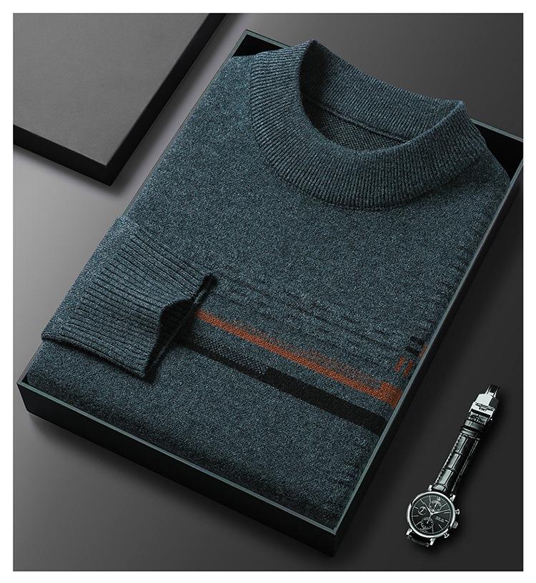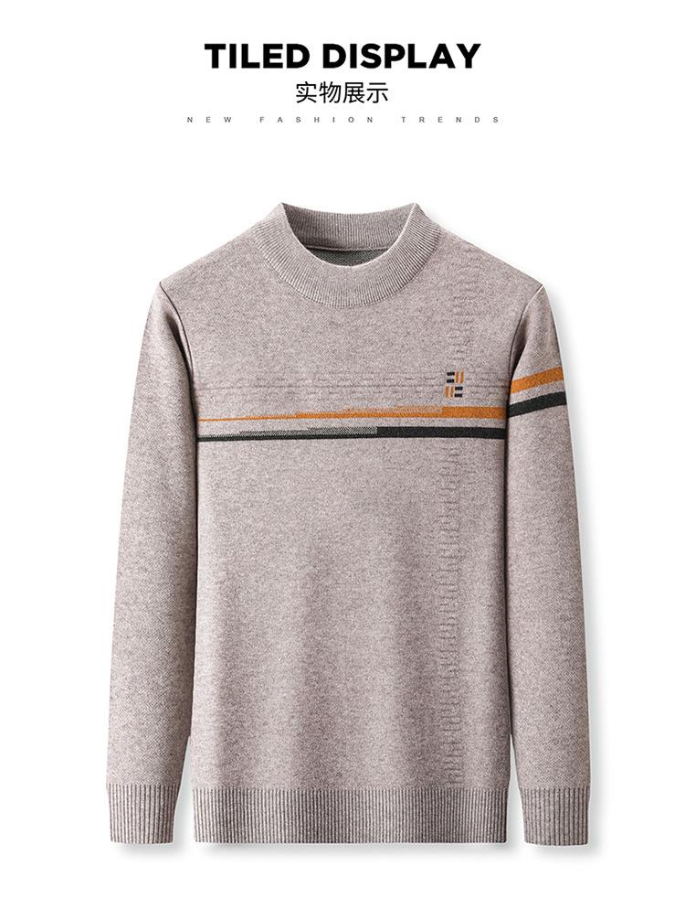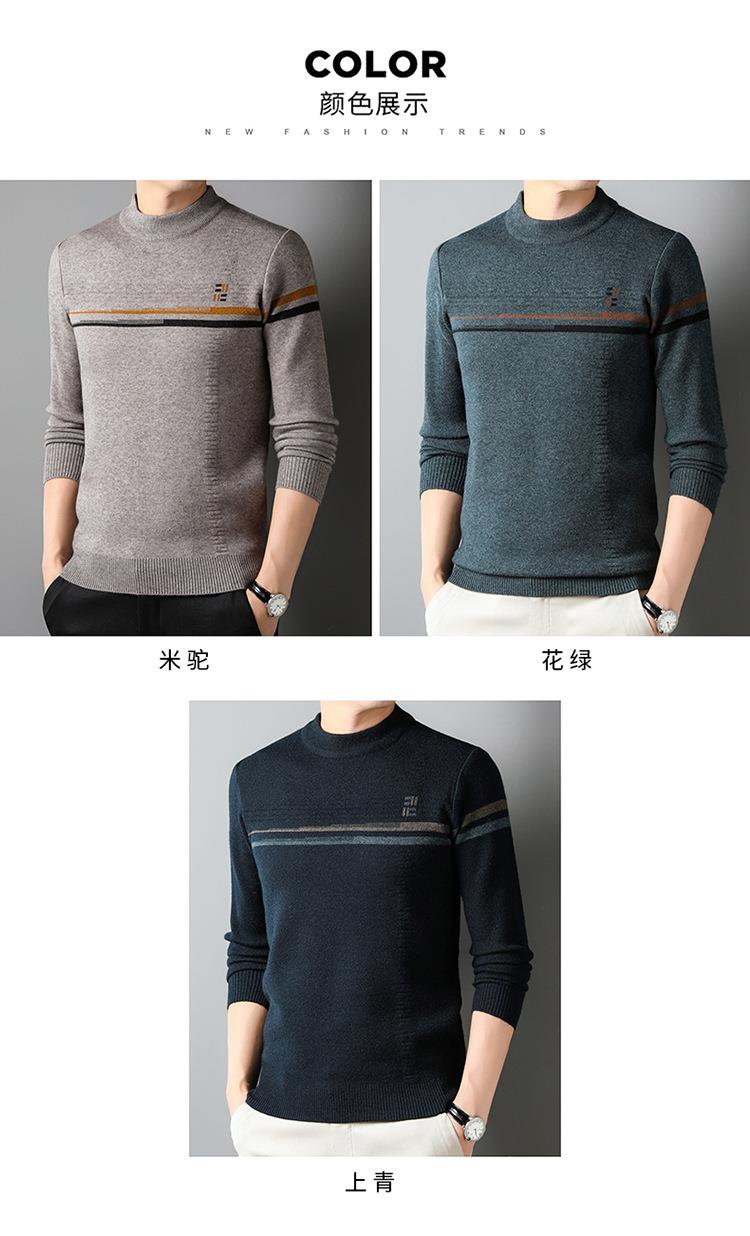 羊毛混纺加厚针织衫毛衣秋冬季新款半高领休闲百搭保暖提花羊毛衫