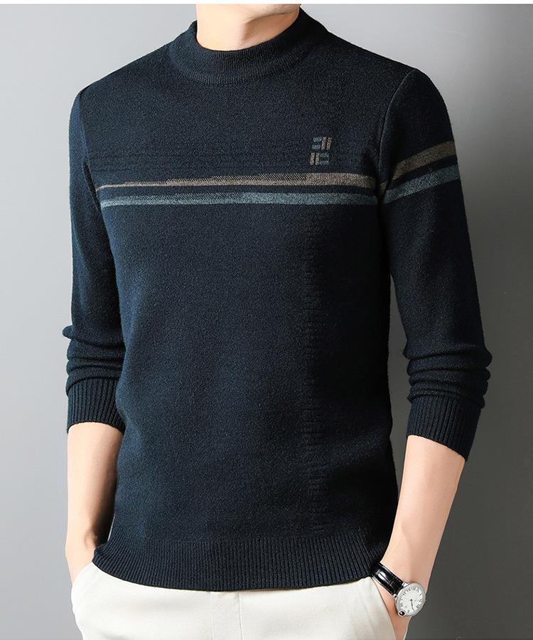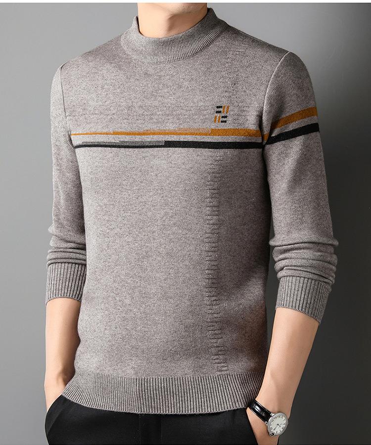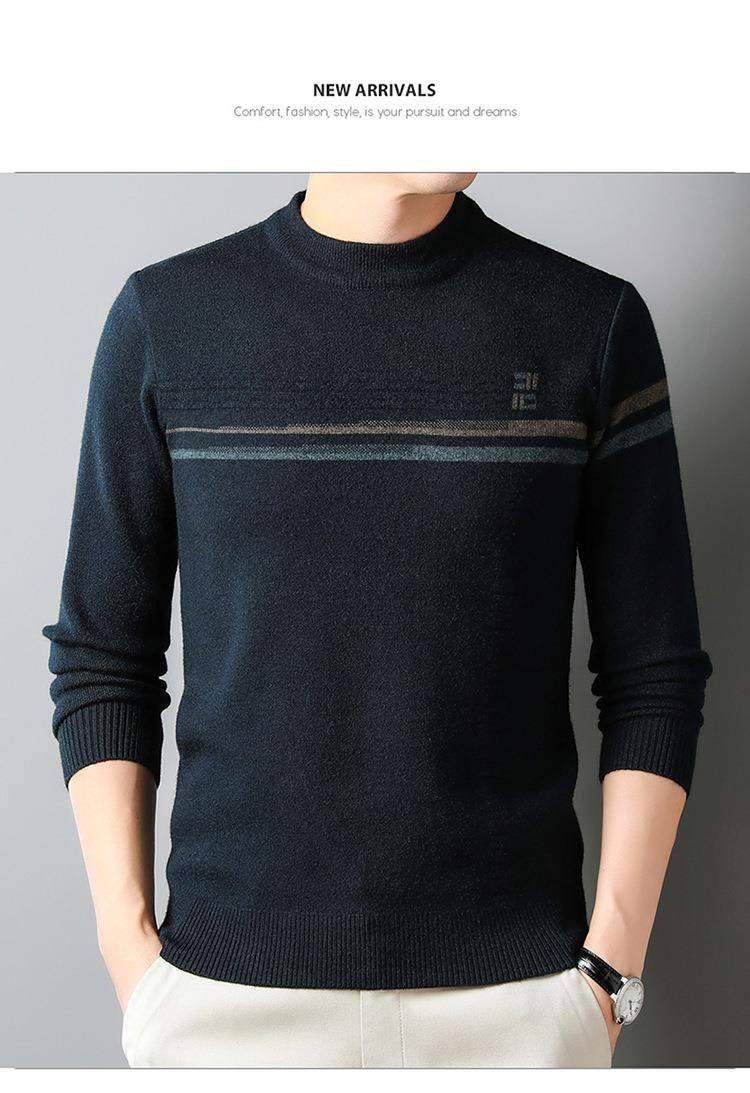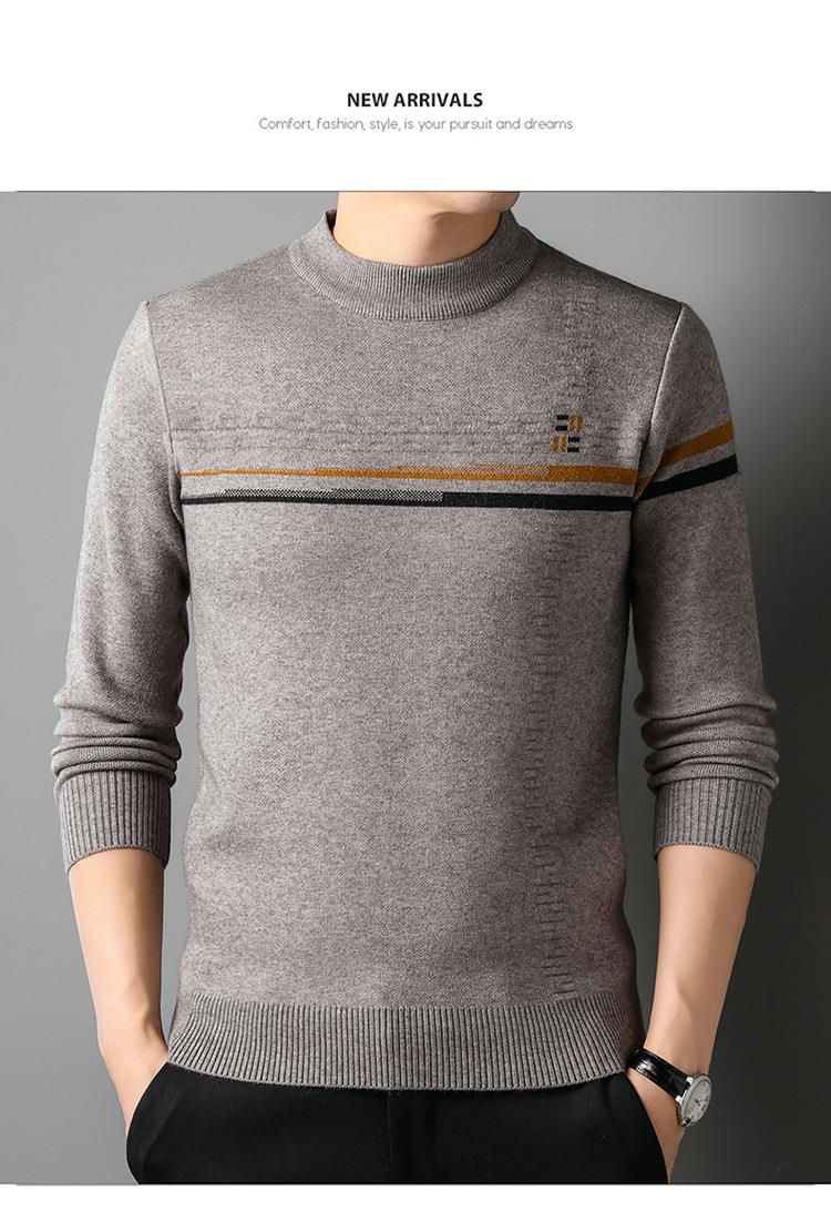 羊毛混纺加厚针织衫毛衣秋冬季新款半高领休闲百搭保暖提花羊毛衫