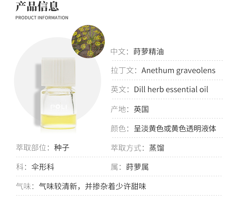 英国进口莳萝精油 单方精油原料批发 POLI颇黎护肤按摩天然精油