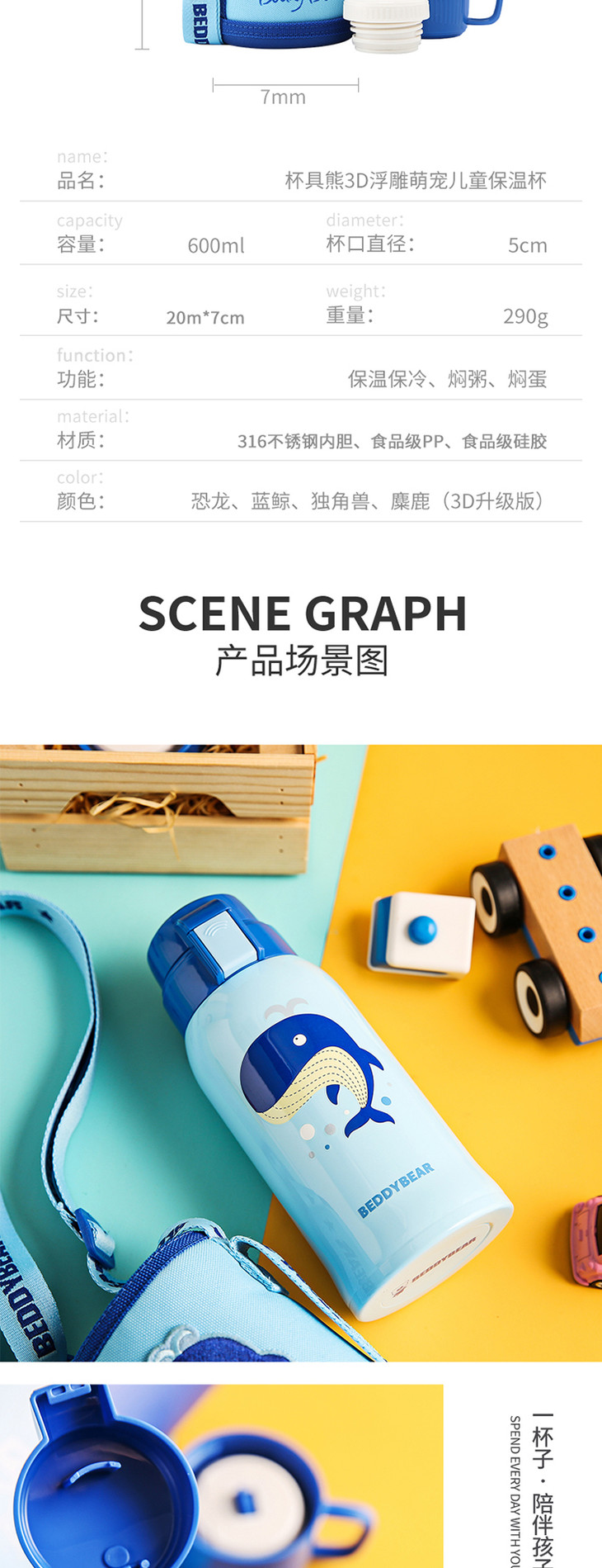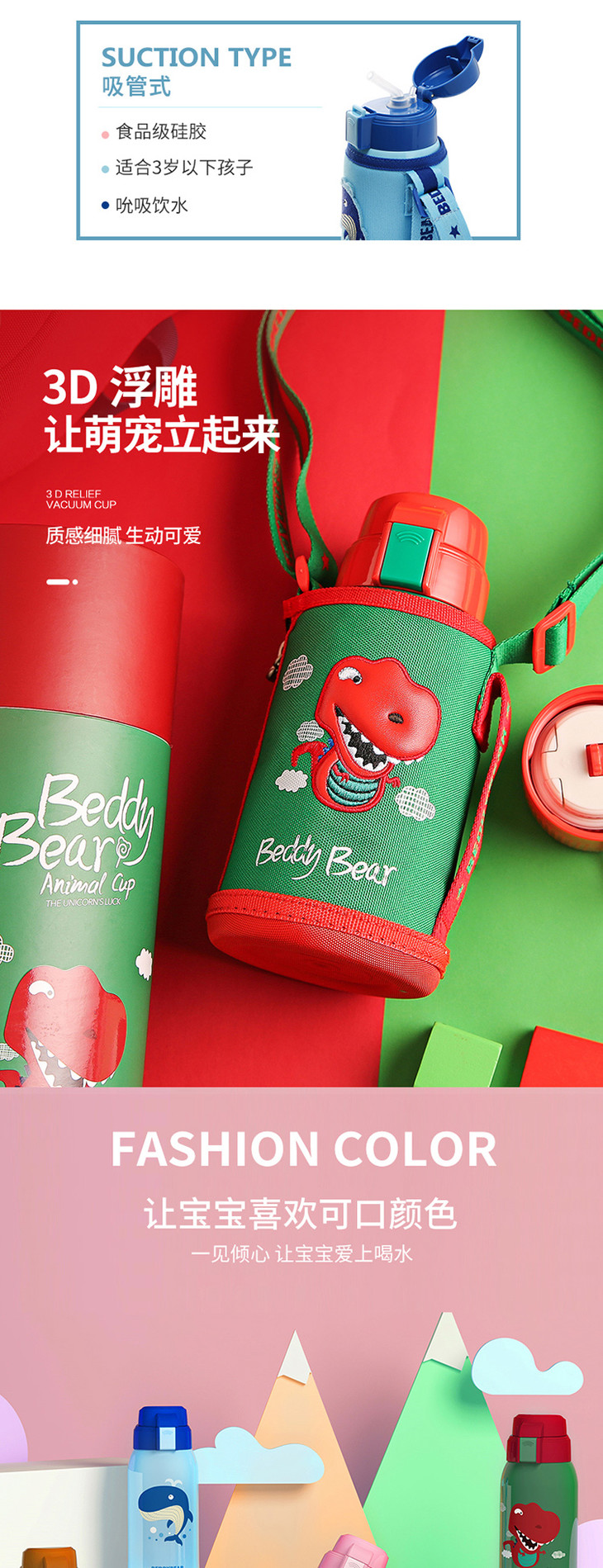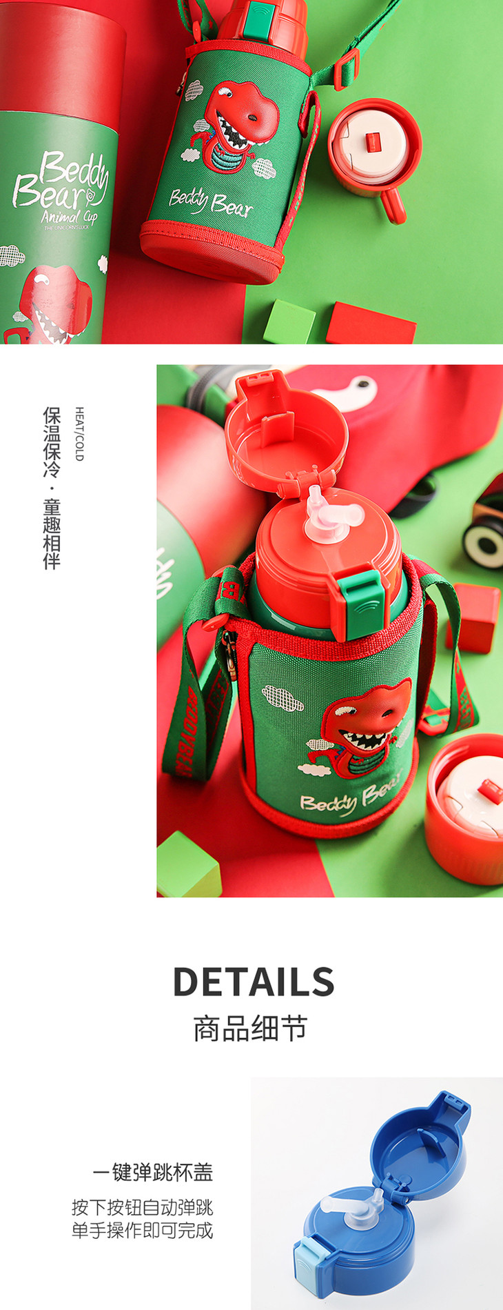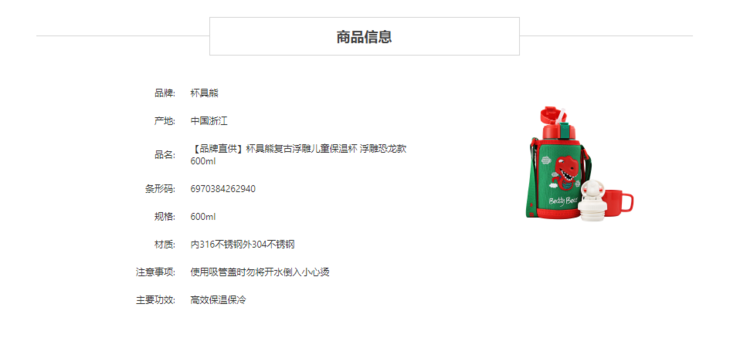 【一般贸易】杯具熊复古浮雕儿童保温杯 浮雕恐龙款 600ml
