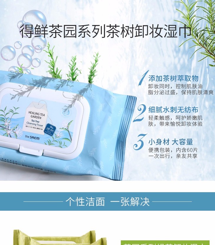 THE SAEM/得鲜 花园茶树卸妆湿巾 开票JPY带授权招加盟代理