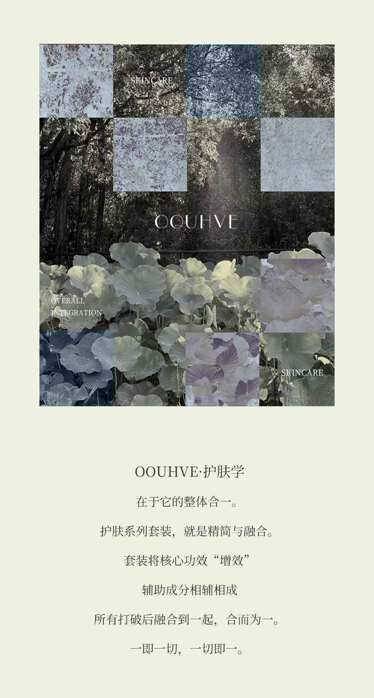- OOUHVE无添加护肤品,以内养外精准护肤 译为“更像自己”通过肌肤是有生命,学会倾听肌肤声音的探讨 赋予产品精神意义与力量,通过优选原料品质温和精纯有效的护肤品,让每一位女性在使用后更加独立坚强。